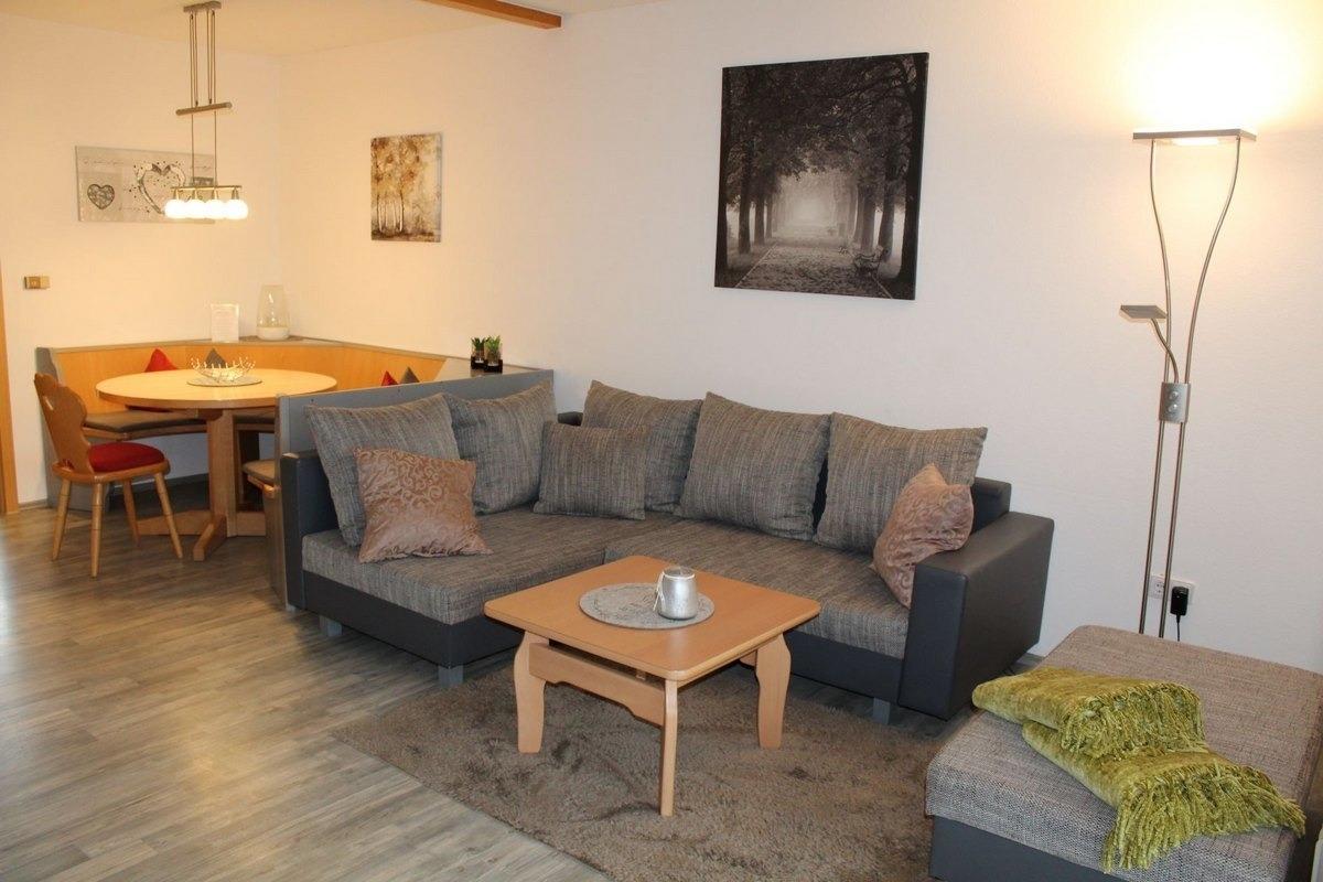 Das freundliche, helle Wohnzimmer lädt ein, sich wohl zu fühlen. Die große gemütliche Sitzgruppe bietet Platz für alle Gäste.Ein Flachbild-Fernseher und Radio (Musikanlage) gehören ebenfalls zur Ausstattung dieses Hauses.