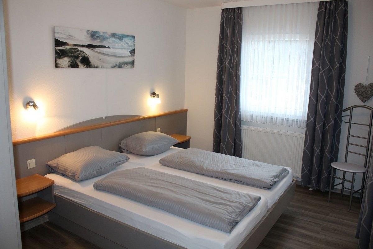 Zwei Schlafzimmer, eines mit Doppelbett sowie 3-türigem Kleiderschrank, das andere mit zwei getrennt stehenden Betten, Schreibtisch und 2-türigem Kleiderschrank