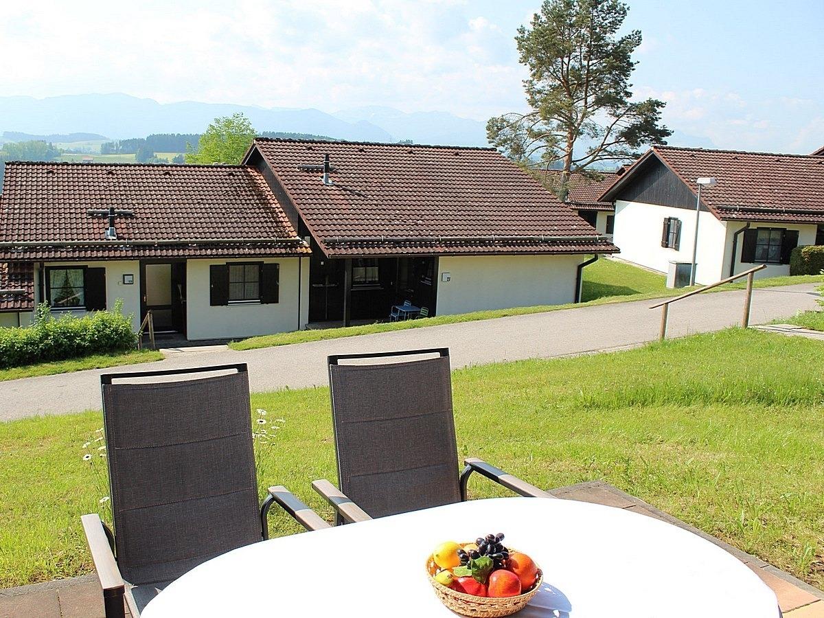 Dieses hell und freundlich eingerichtete Reiheneckhaus befindet sich in ruhiger und dennoch zentraler Lage des Feriendorfes. Von Ihrer Süd-Terrasse und Sonnen-Markise haben Sie einen Blick auf eine Wiese und die Ammergauer Alpen.