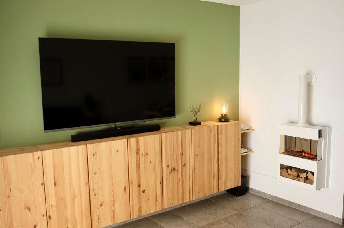 Das modern und gemütlich eingerichtete Wohnzimmer lädt zu gemütlichen Abenden mit einem gutem Film ein. Es bietet eine bequeme Couch mit Bettfunktion, einen LED Fernseher mit Soundbar, Stereoanlage, Bücher (auch Kinderbücher und Spiele). Vom Wohnzimmer aus gelangt man direkt auf die Terrasse.