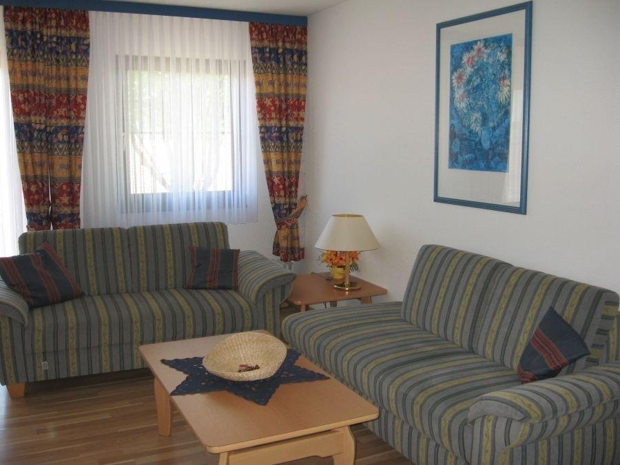 1 gemütliches Wohn-Esszimmer mit Sitzgruppe, Polstersitzgruppe, TV, Telefon und Radio.