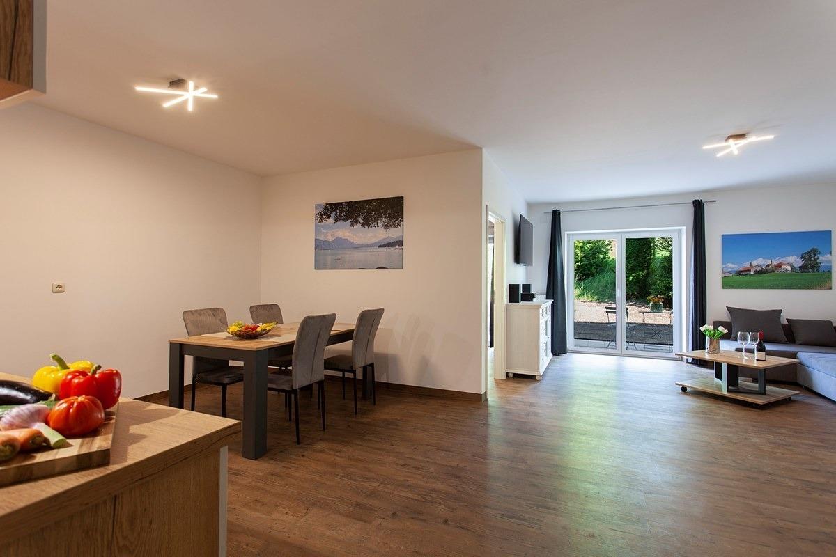 Auf großzügigen 60 m² bietet sie im Erdgeschoß Platz für bis zu 4 Personen. Die Wohnung heißt Sie herzlich willkommen mit einem Schlafzimmer, das mit einem komfortablen Boxspringbett ausgestattet ist. Das Wohn- und Esszimmer lädt zum Verweilen ein und verfügt über eine voll ausgestattete Küche mit Herd, Kühlschrank, Spülmaschine, Filterkaffeemaschine, Wasserkocher, Toaster usw. sowie ein bequemes Schlafsofa. Das moderne Bad mit Dusche rundet das Angebot ab. Genießen Sie entspannte Tage in dieser komfortablen Unterkunft und erkunden Sie die Schönheit der Umgebung am See.