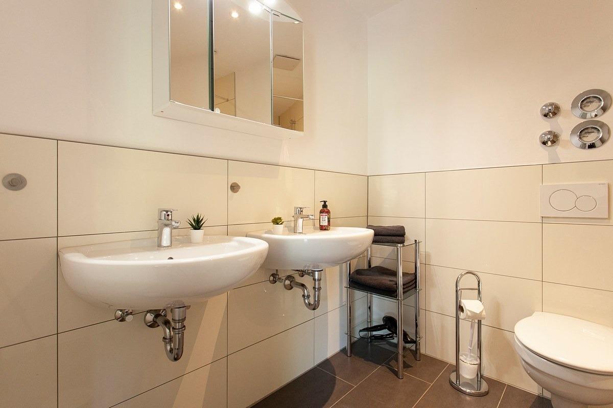 Die Wohnung verfügt über ein komfortables Schlafzimmer, ausgestattet mit einem gemütlichen Boxspringbett. Das Wohn- und Esszimmer verfügt zusätzlich über ein bequemes Schlafsofa. Die Küche ist voll ausgestattet mit Herd, Kühlschrank, Spülmaschine, Filterkaffeemaschine, Wasserkocher, Toaster usw. Das Bad mit einer begehbaren Dusche rundet das Wohlfühlambiente ab.