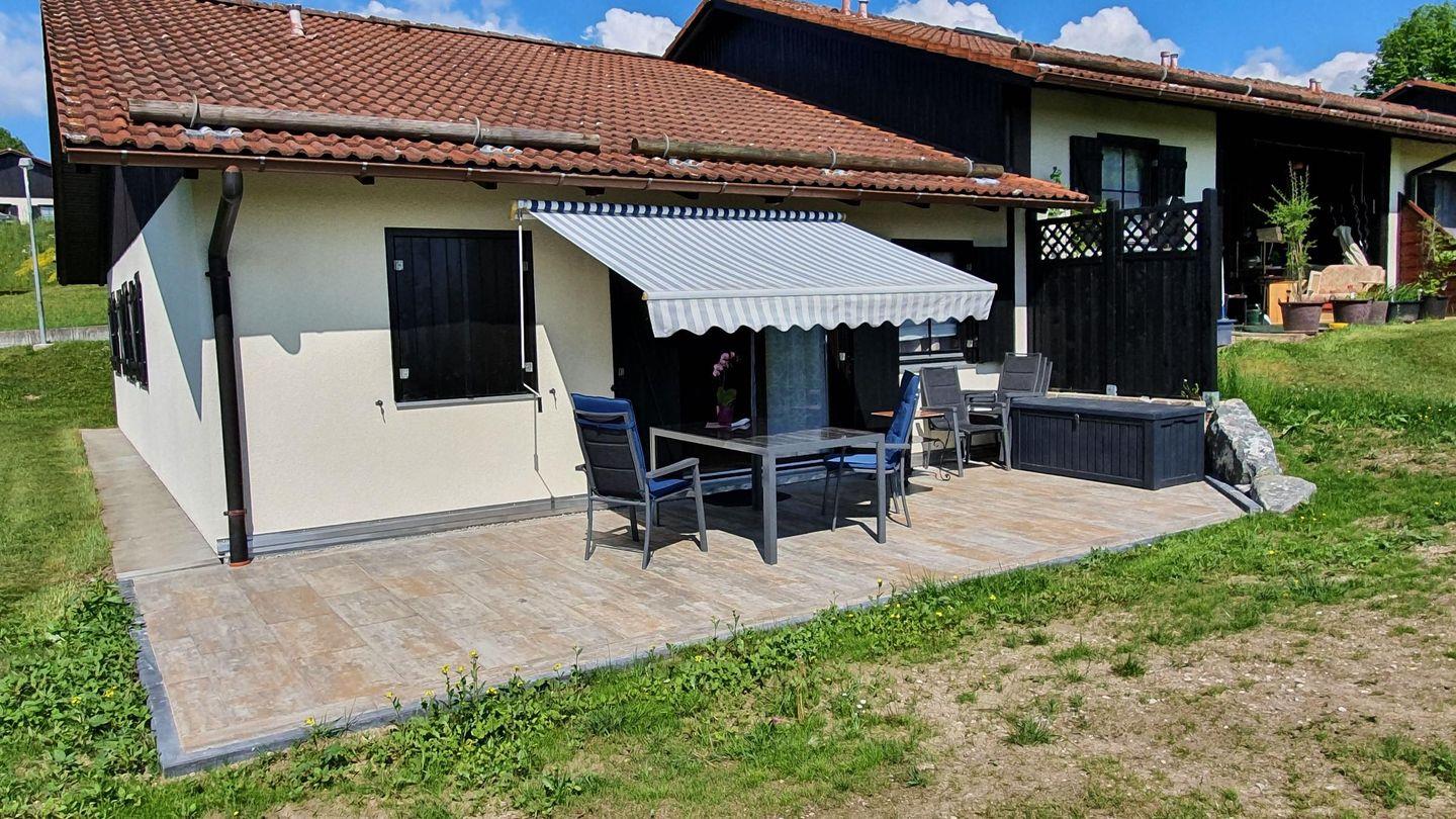 Eine der größten Stärken dieser Ferienwohnung ist die herrliche Terrasse, die Ihnen einen wunderbaren Blick auf die umliegende Landschaft bietet. Hier können Sie die frische Bergluft genießen, Ihre Mahlzeiten im Freien einnehmen oder einfach nur die Seele baumeln lassen. Der Gartenbereich mit Sonnenliegen sorgt dafür, dass sowohl Erwachsene als auch Kinder voll auf ihre Kosten kommen.