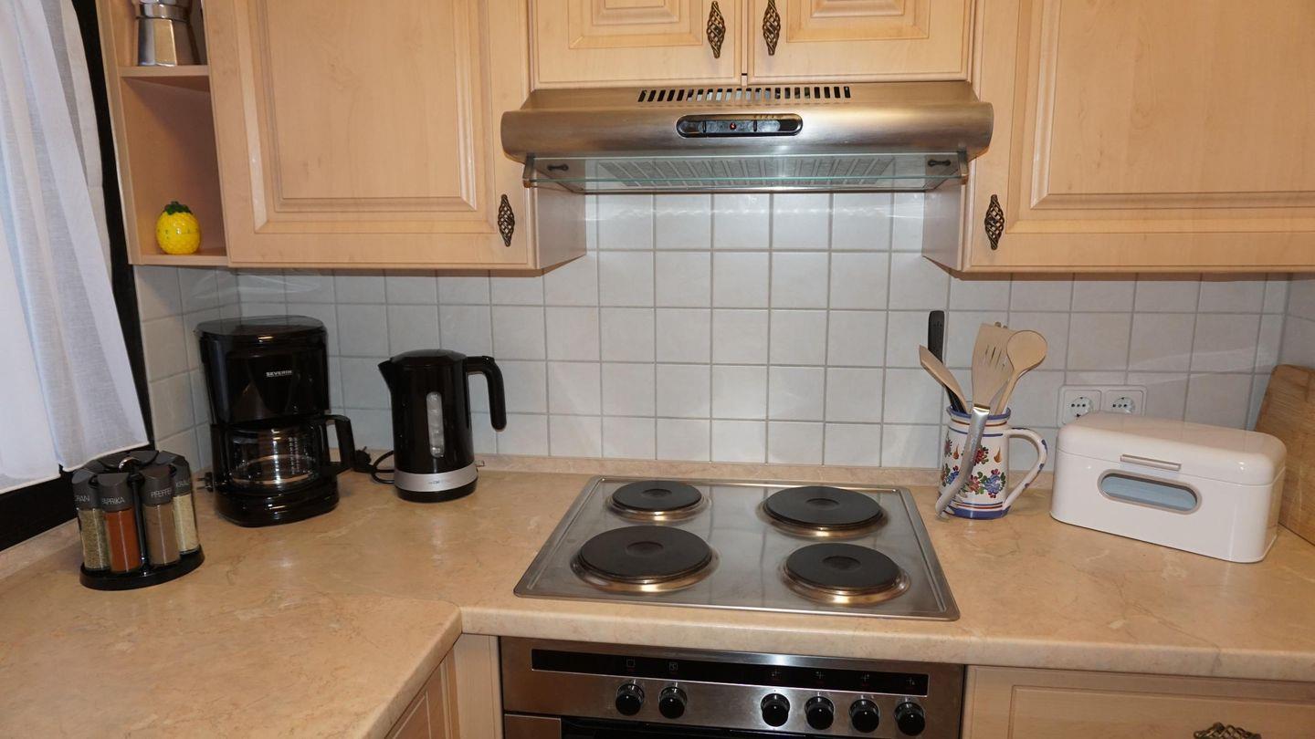 Die Wohnung verfügt über drei gemütliche Schlafzimmer, eines mit Doppelbett, zwei weitere mit je zwei Einzelbetten, die mit Laminatboden ausgelegt sind, sowie ein einladendes Wohnzimmer mit Sofaecke, Essbereich und einer voll ausgestatteten Küchenzeile. Die separate Küche ist ideal ausgestattet, um leckere Mahlzeiten zubereiten zu können, und bietet alles, was man benötigt – von modernen Küchengeräten wie einem Elektroherd, Backofen, Kühlschrank bis hin zu Geschirrspüler und Mikrowelle. Für gesellige Abende laden das Sofa und die Sitzmöbel im Wohnzimmer dazu ein, gemeinsam zu entspannen und den Tag Revue passieren zu lassen.