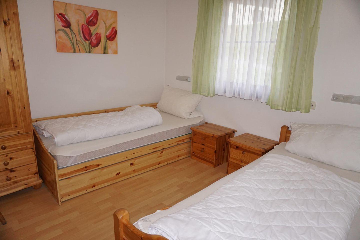 Die Wohnung ist ideal für bis zu fünf Personen und perfekt für Familien, die eine entspannte Atmosphäre inmitten einer bezaubernden Natur suchen. Sie verfügen über zwei gemütliche Schlafzimmer, eines mit Doppelbett, eines mit zwei Einzelbetten und ausziehbarer Matratze für ein Kleinkind, die mit Laminatboden ausgestattet sind, um Ihnen einen erholsamen Schlaf zu garantieren.