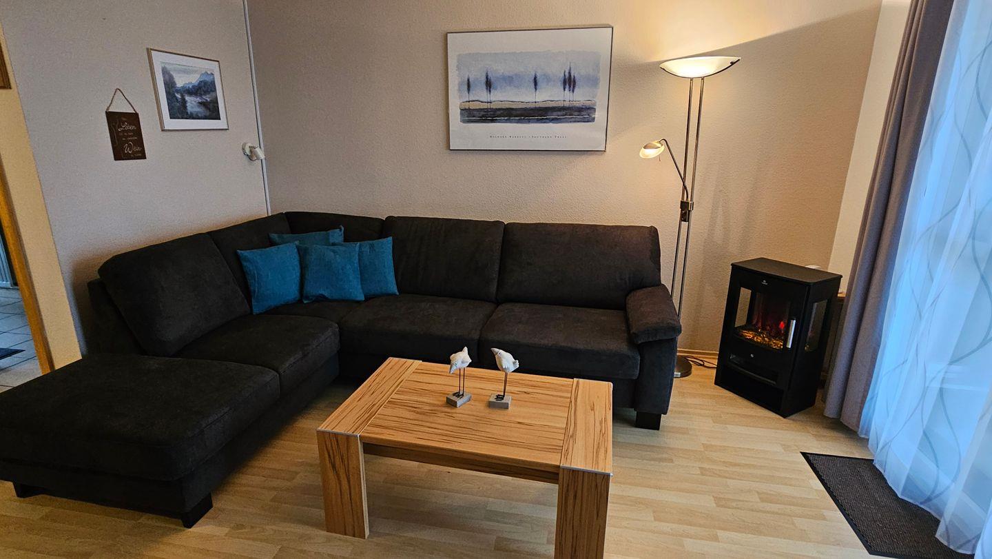 Im Inneren der Ferienwohnung erwartet Sie eine gemütliche und liebevoll gestaltete Ausstattung. Es stehen Ihnen zwei komfortable Schlafzimmer zur Verfügung, eines mit Doppelbett, eines mit zwei Einzelbetten und Ausziehmatratze für ein Kleinkind, ideal für eine erholsame Nachtruhe. Das Wohnzimmer mit Sofa und Essbereich ist der perfekte Ort, um gemeinsame Abende zu verbringen oder einfach die Ruhe zu genießen. Für Unterhaltung ist ebenfalls gesorgt – die Wohnung verfügt über zwei Fernseher sowie WLAN, sodass Sie auch während Ihres Urlaubs verbunden bleiben können.
