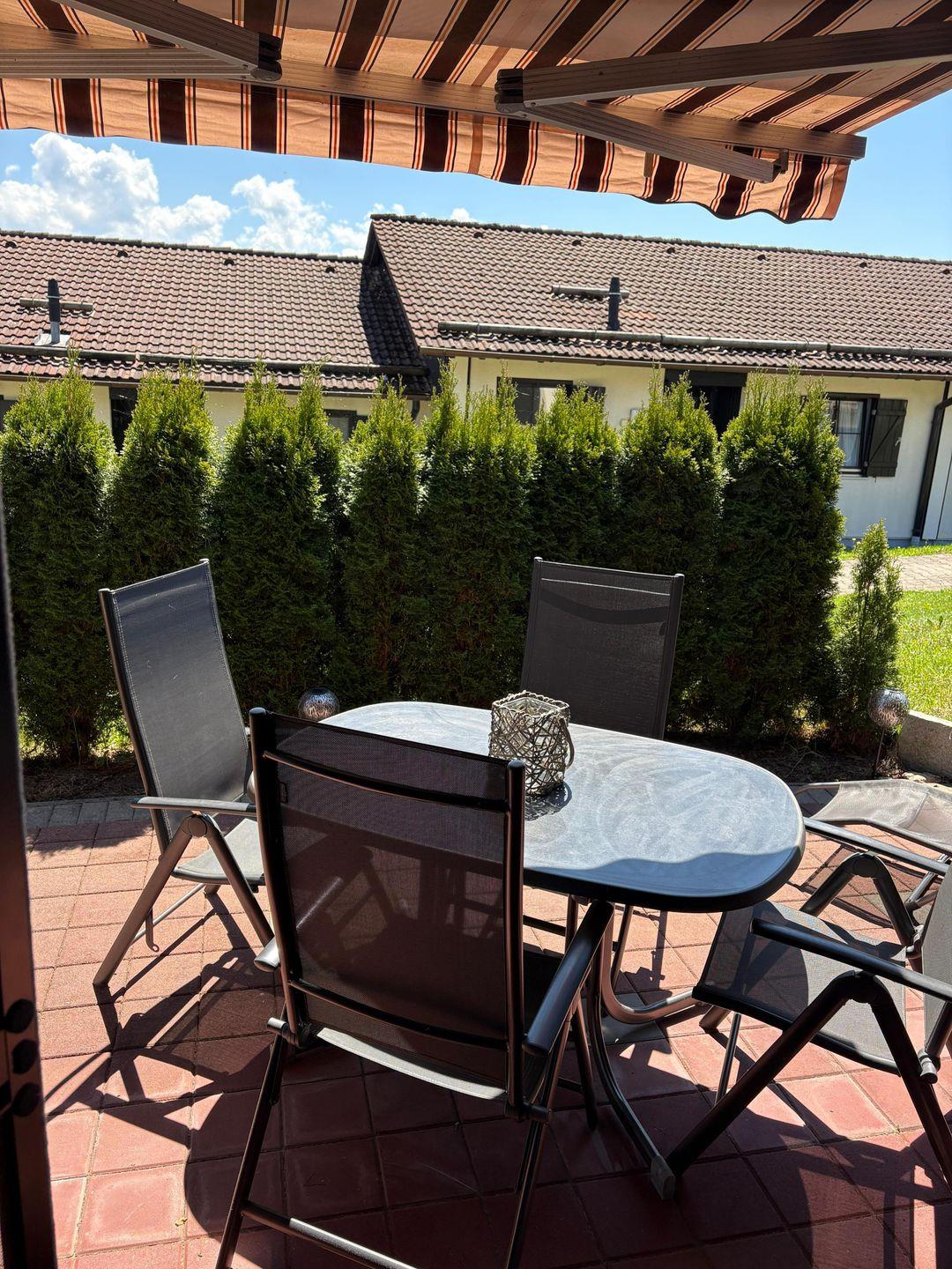 Das Haus ist mit einer Zentralheizung ausgestattet und eignet sich somit zu jeder Jahreszeit für einen angenehmen Aufenthalt. Ein besonderes Plus ist die teilüberdachte Terrasse mit umlaufender Hecke, die zusätzlich Sichtschutz bietet und so sowohl Privatsphäre als auch Schutz bei unterschiedlichstem Wetter garantiert. Die Terrasse schafft einen nahtlosen Übergang zum Außenbereich und eignet sich hervorragend für entspannte Stunden im Freien.