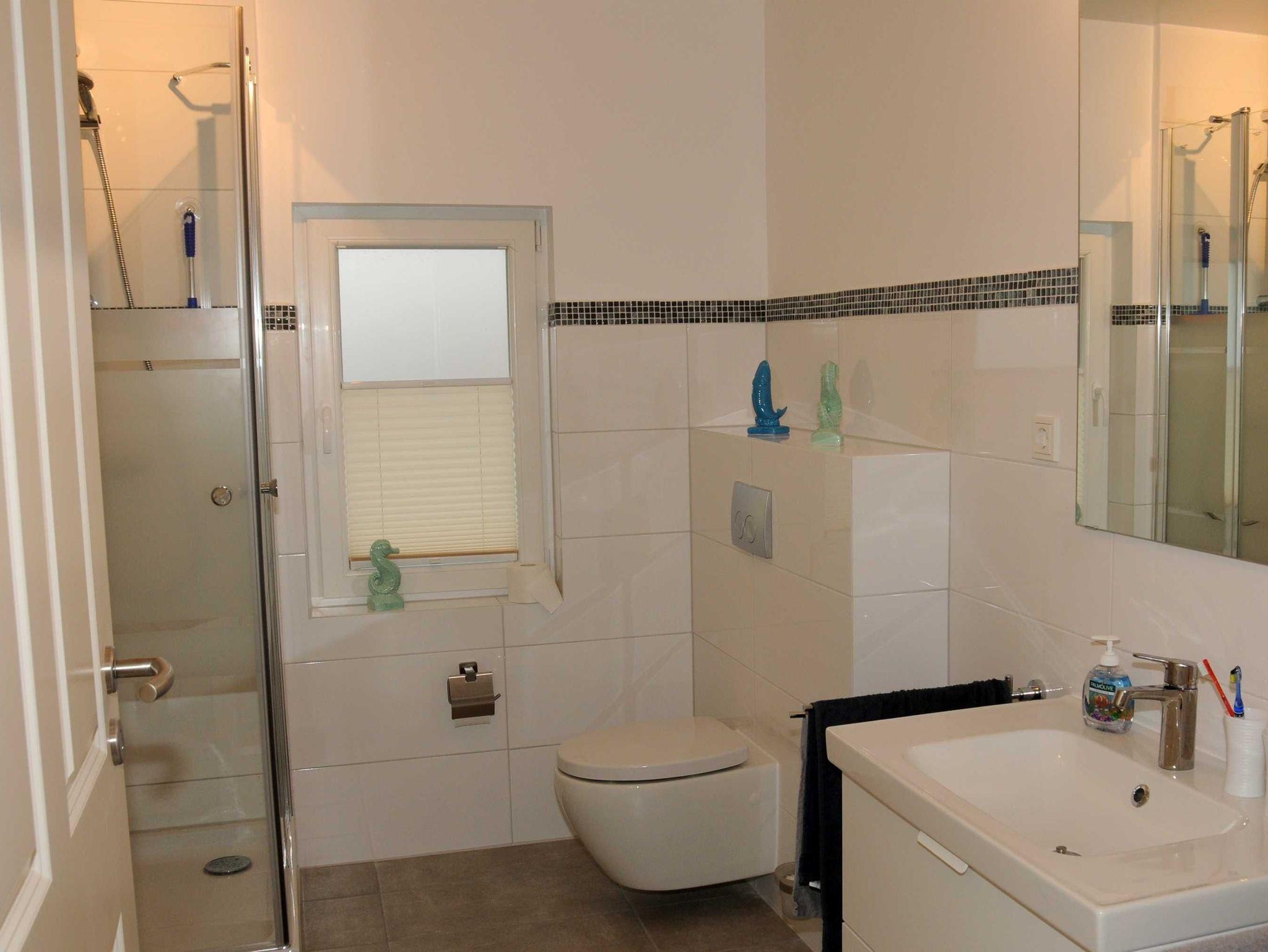 In der Wohnung befinden sich weiter zwei gemütliche, modern eingerichtete Schlafzimmer, eines mit Doppelbett, das Andere mit zwei Einzelbetten, die wahlweise zu einem Doppelbett zusammengestellt werden können. Eine neue, komplett ausgestattete, moderne Einbauküche inkl. Geschirrspülmaschine, Waschmaschine, E-Herd mit Ofen, Mikrowelle, Eierkocher, Kaffeemaschine und Toaster lässt keine Wünsche offen, an die offene Küche gliedert sich das Wohnzimmer mit Ledergarnitur (3-2-1), Kuschelkissen und Decken, Flachbildfernseher und Stereoanlage. Im ganzen Haus 50 Mbit WLAN.