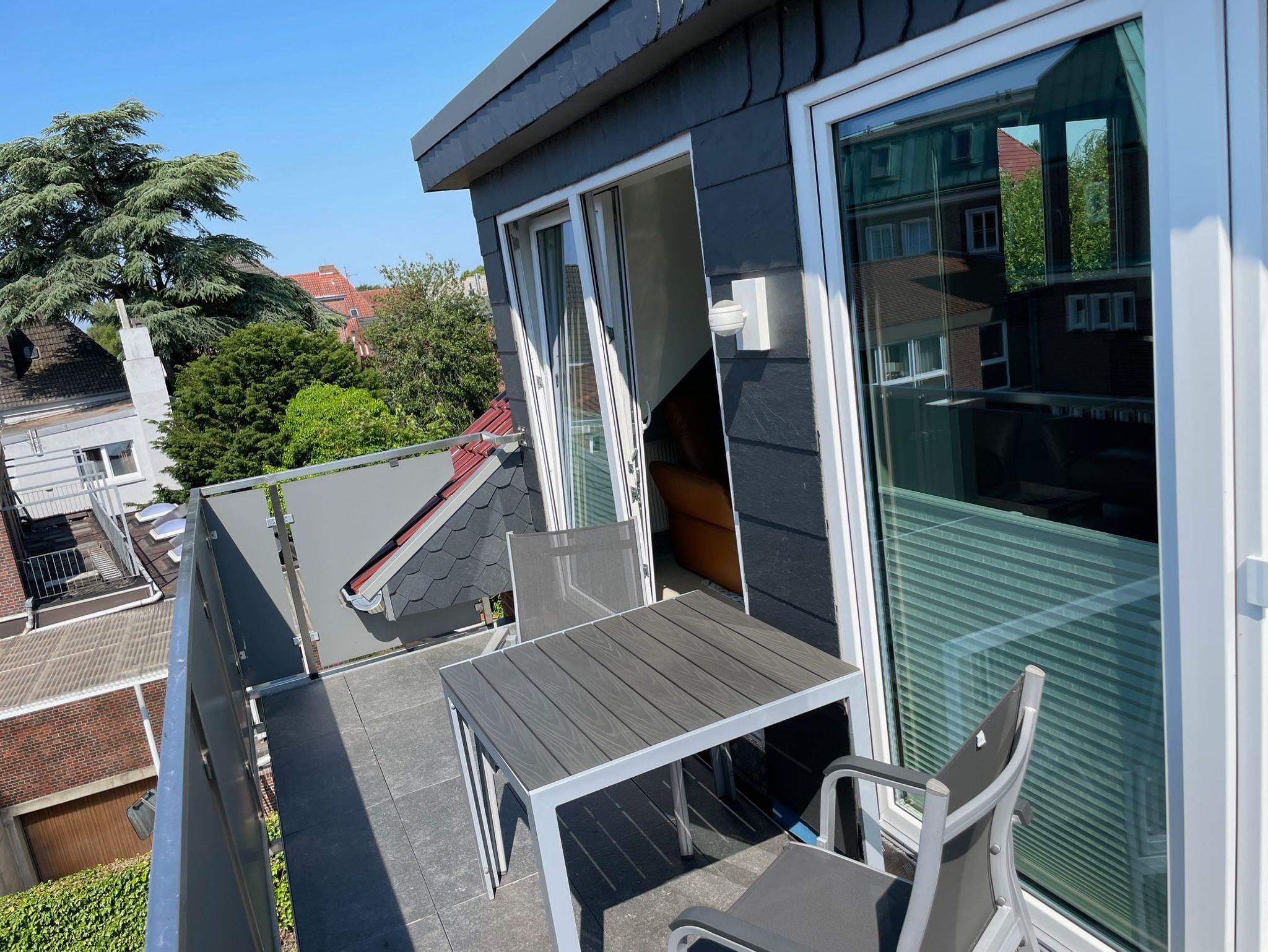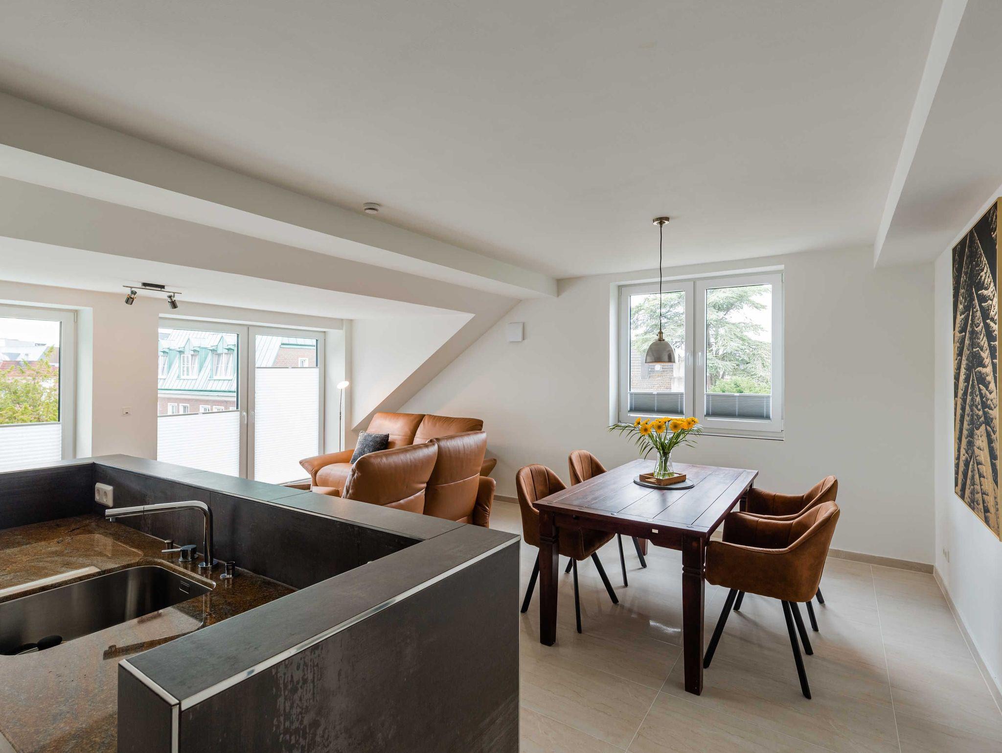 „11 Ditzum“ verfügt über 2 Balkone, 2 Schlafzimmer, 2 Bäder mit Dusche, 1 Arbeitszimmer und über einen großen Wohn-Küchenraum.