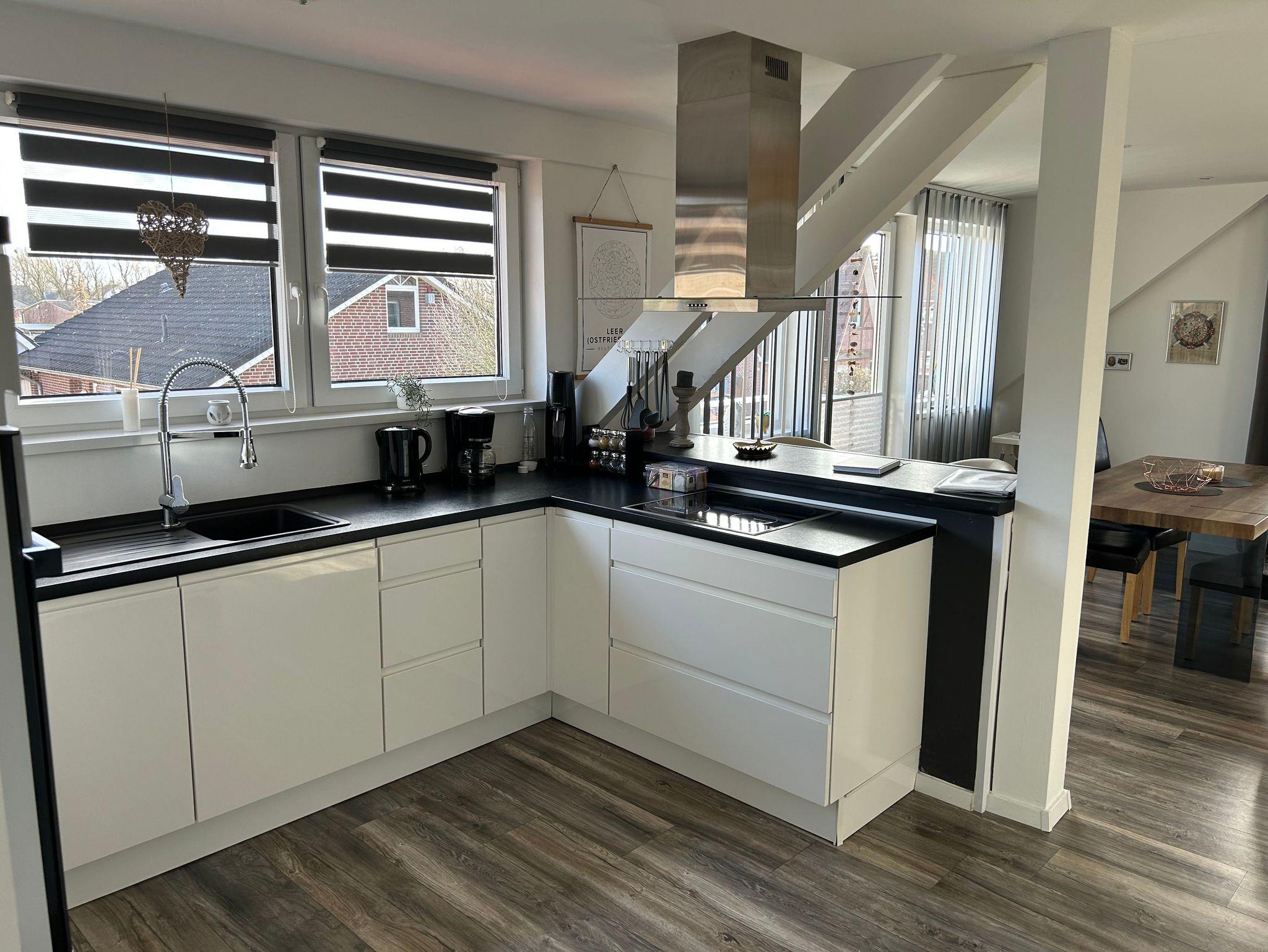 Die offene Küche ist modern, in gehobener Ausstattung.
