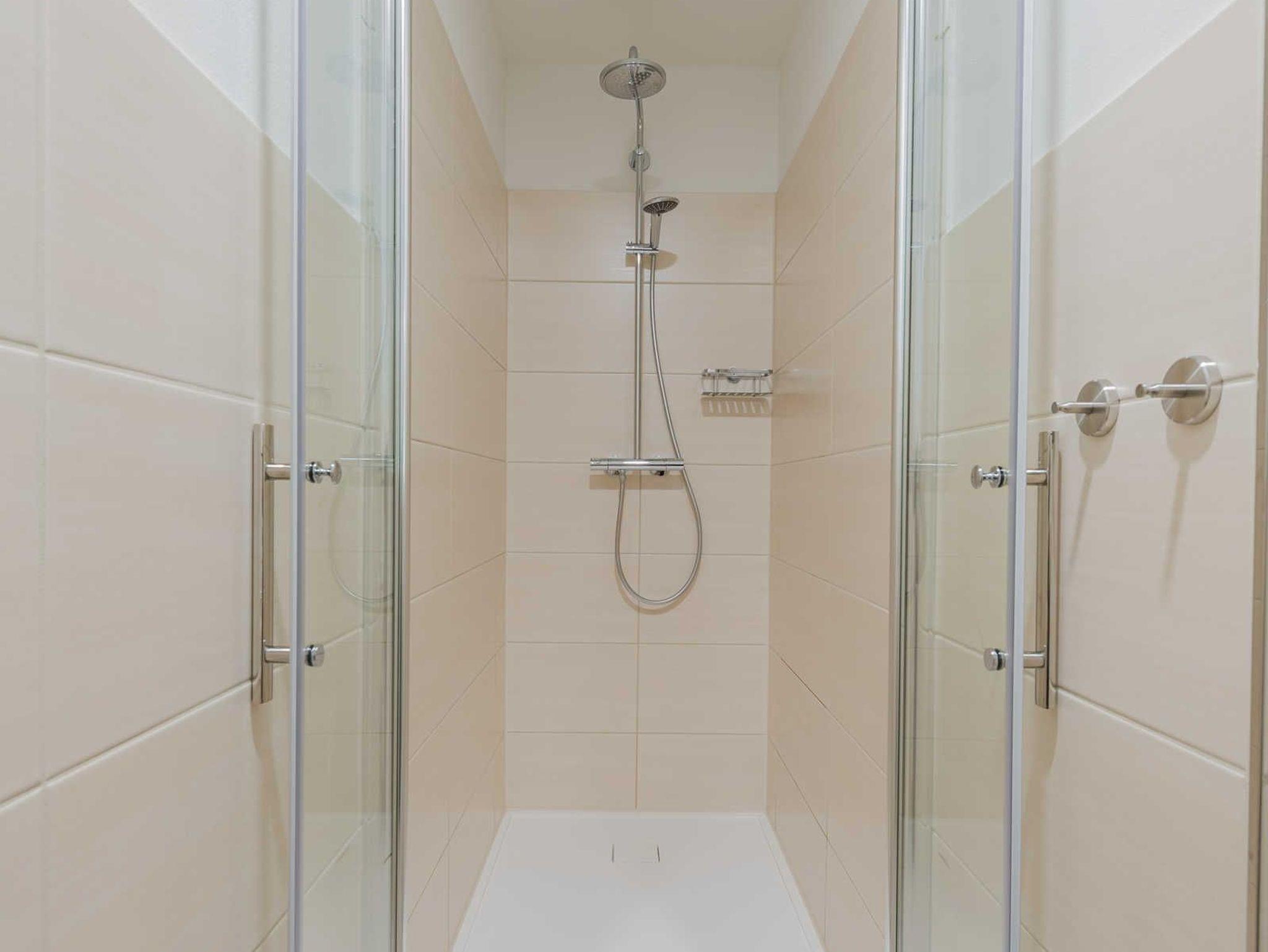 „1 Möhlenwarf“ verfügt über ein Schlafzimmer, ein Bad mit Dusche und über einen großen Wohn-Küchenraum.