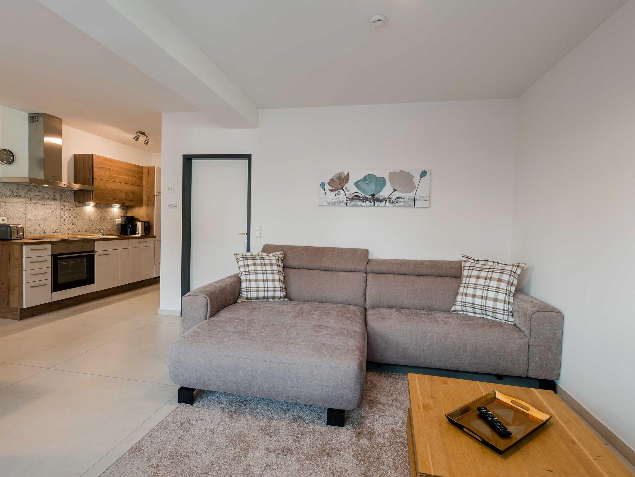 Wohnungen eingebaut. Die Fußböden sind gefliest. Im Bereich der Couch in