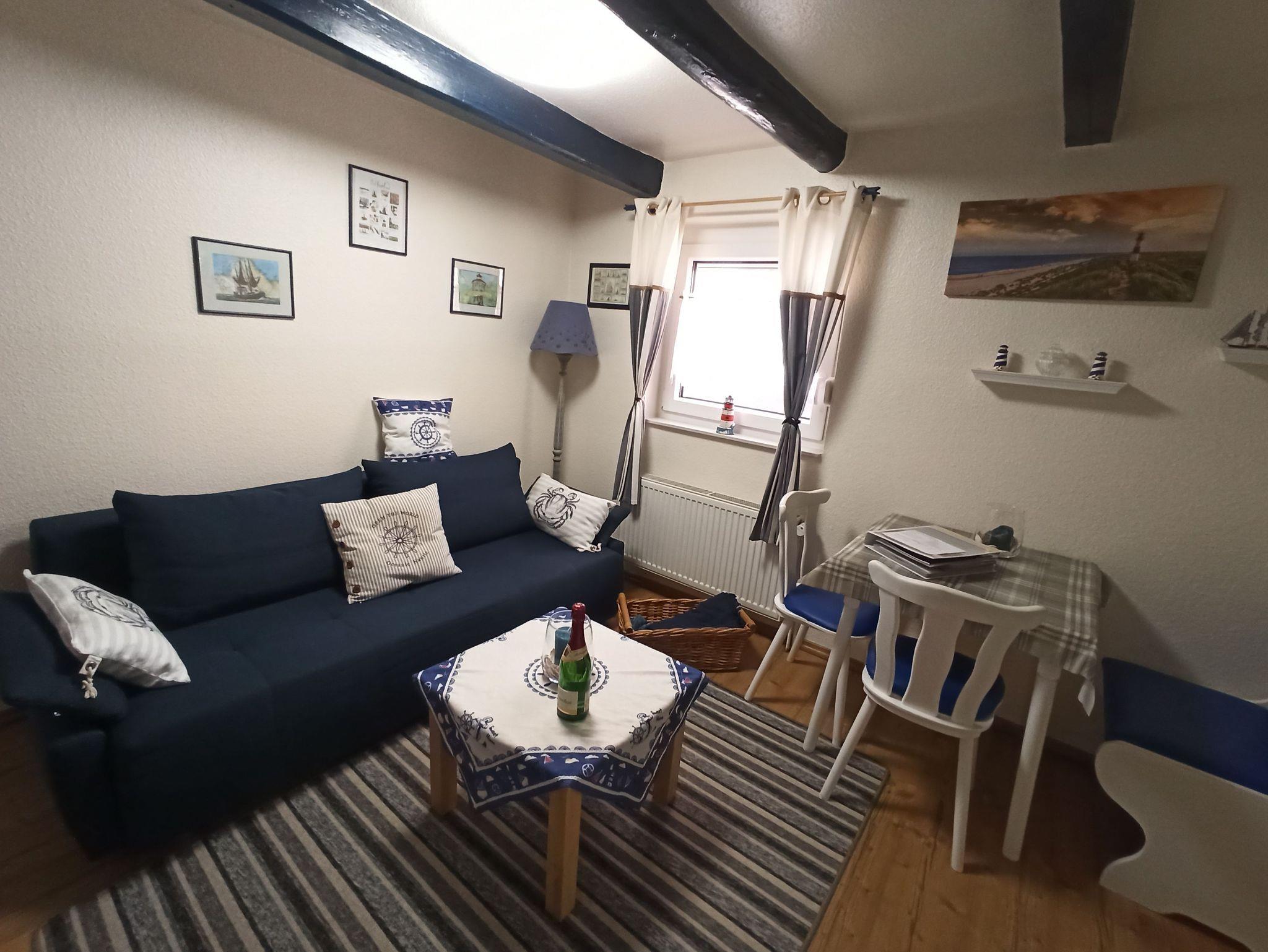 Die Wohnung ist ca. 43qm groß und bietet Platz für 2 Personen, da ist das Wohnzimmer mit einer kleinen Essgruppe, Sofa,Smart-TV,CD-Radio mit MP3-Anschluss. Im Schlafzimmer befindet sich ein Doppelbett von 180cm Breite getrennte Matratzen. Die kleine Küche ist mit allen notwendigen Dingen ausgestattet, wie z.B. Kühlschrank mit Gefrierfach, Ceran Kochfeld mit Backofen, Spülmaschine, Wasserkocher, Kaffeemaschine, Toaster usw.