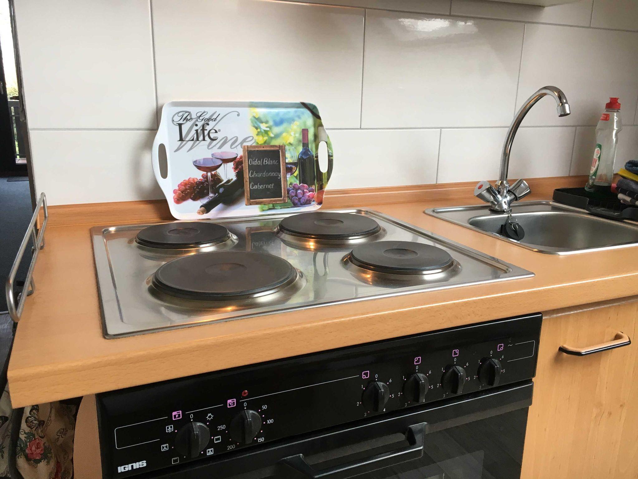 Im Wohnzimmer kann das Sofa als Schlafgelegenheit für zwei Personen genutzt werden. Kabel-TV sowie ein W-LAN Anschluss sind vorhanden. Auch von hier aus gibt es einen direkten Zugang zur Loggia mit Blick in die Natur. Hier stehen Gartenmöbel für vier Personen zur Verfügung.