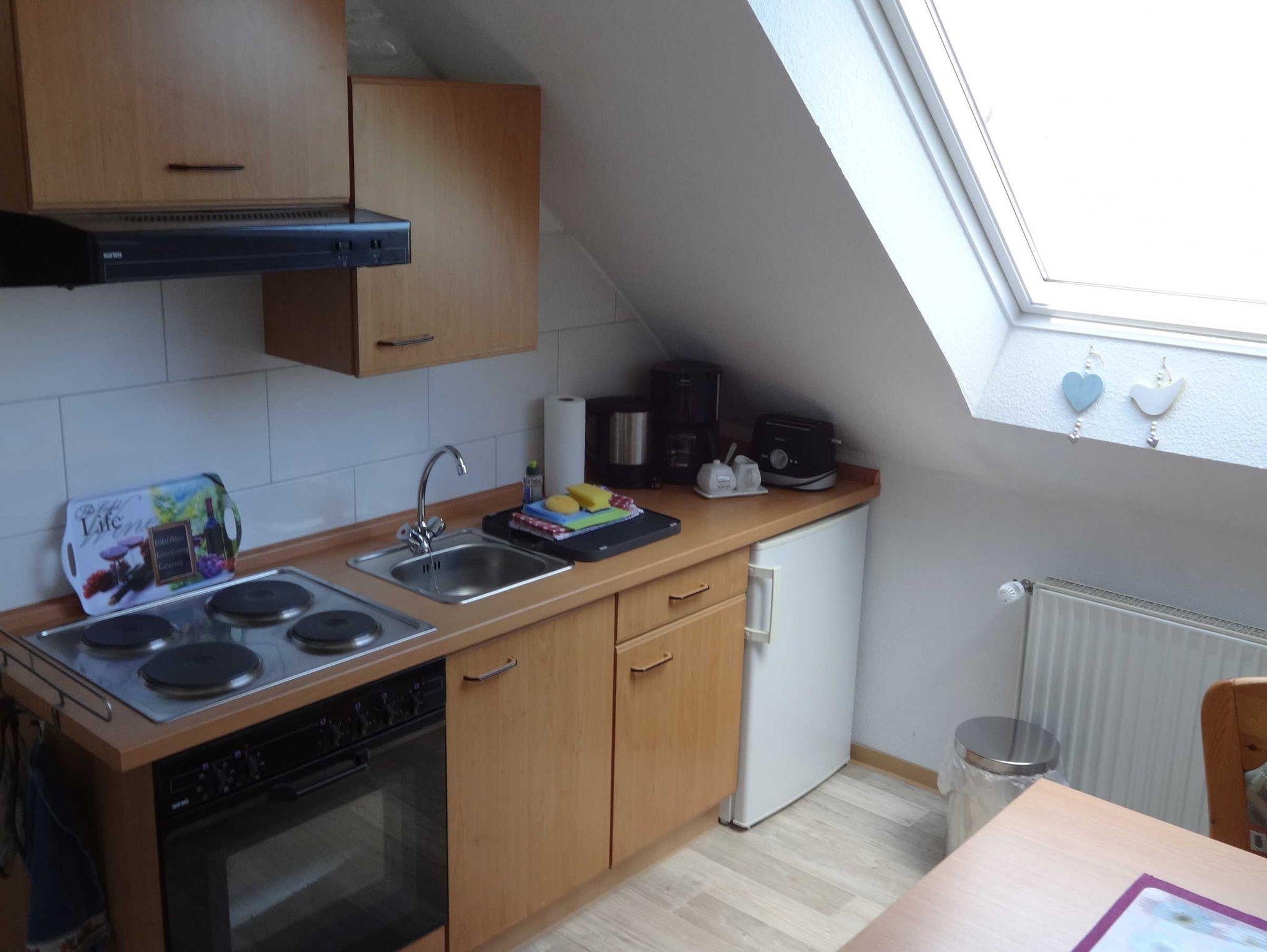 Die Ferienwohnung befindet sich im Obergeschoss. Sie ist hell und lichtdurchflutet.