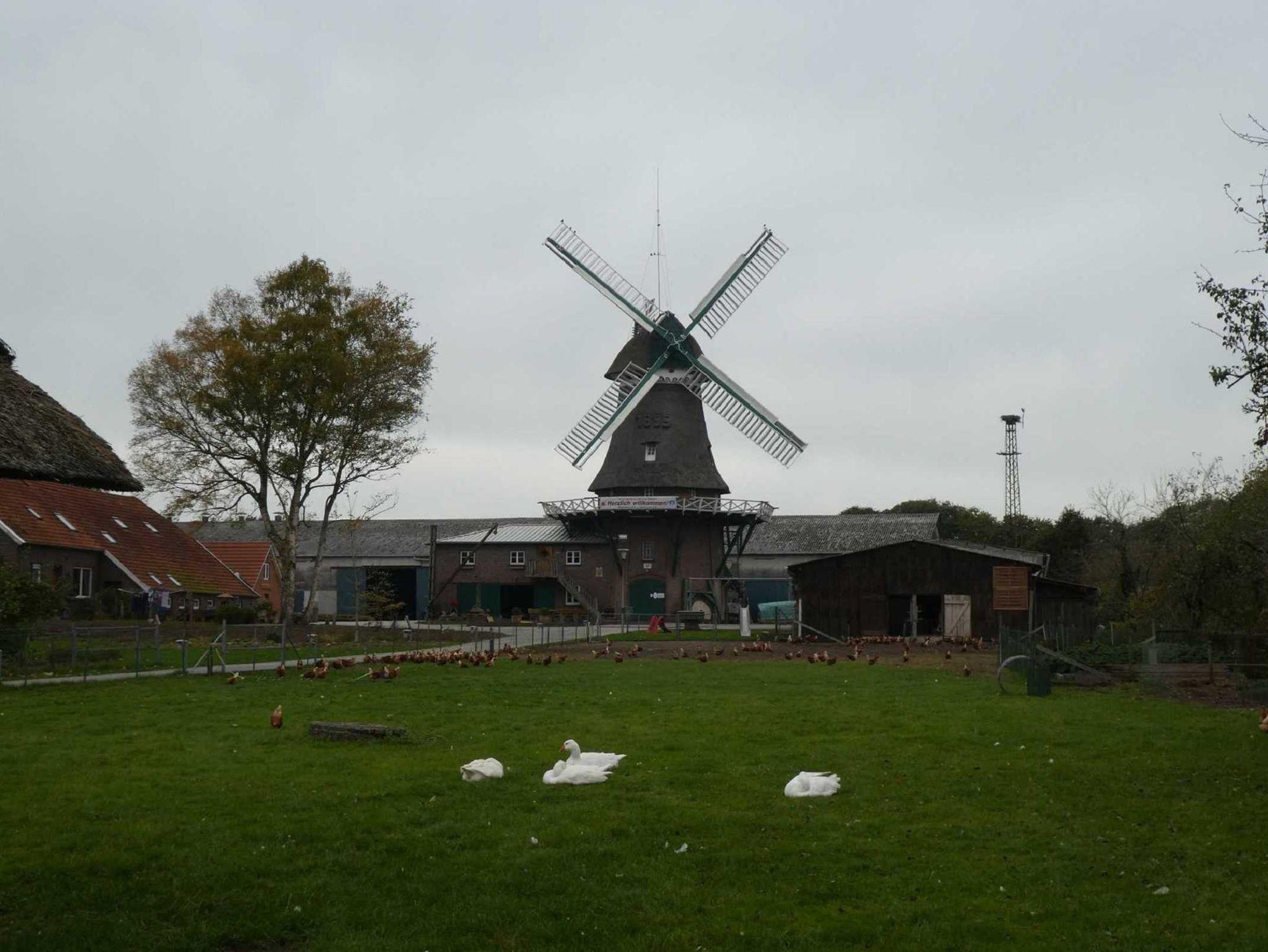 Viele grüne Wiesen, ein kleiner Badesee, der Ostfriesland-Wanderweg, die Mühlenroute, die bekannte Deutsche Fehnroute und ein Reiterhof liegen in näherer Umgebung und laden zum Verweilen ein.