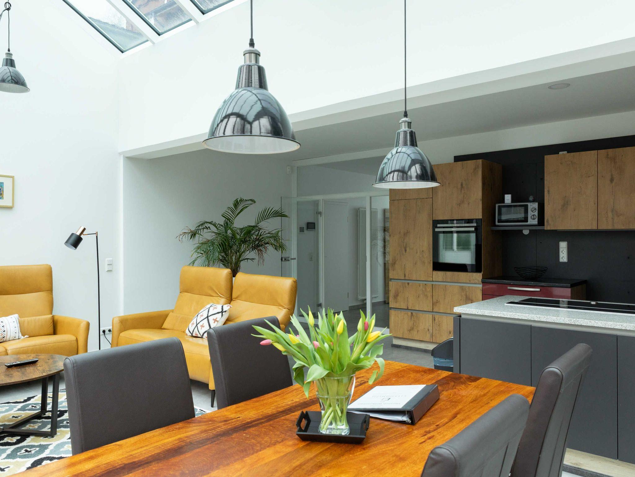 Hier wohnen Sie auf 123 qm. Lassen Sie sich von den Bildern der Wohnung verzaubern und buchen Sie und schauen Sie, wenn Sie auf der Couch sitzen, den Vögeln oder den Wolken über Ihnen zu.