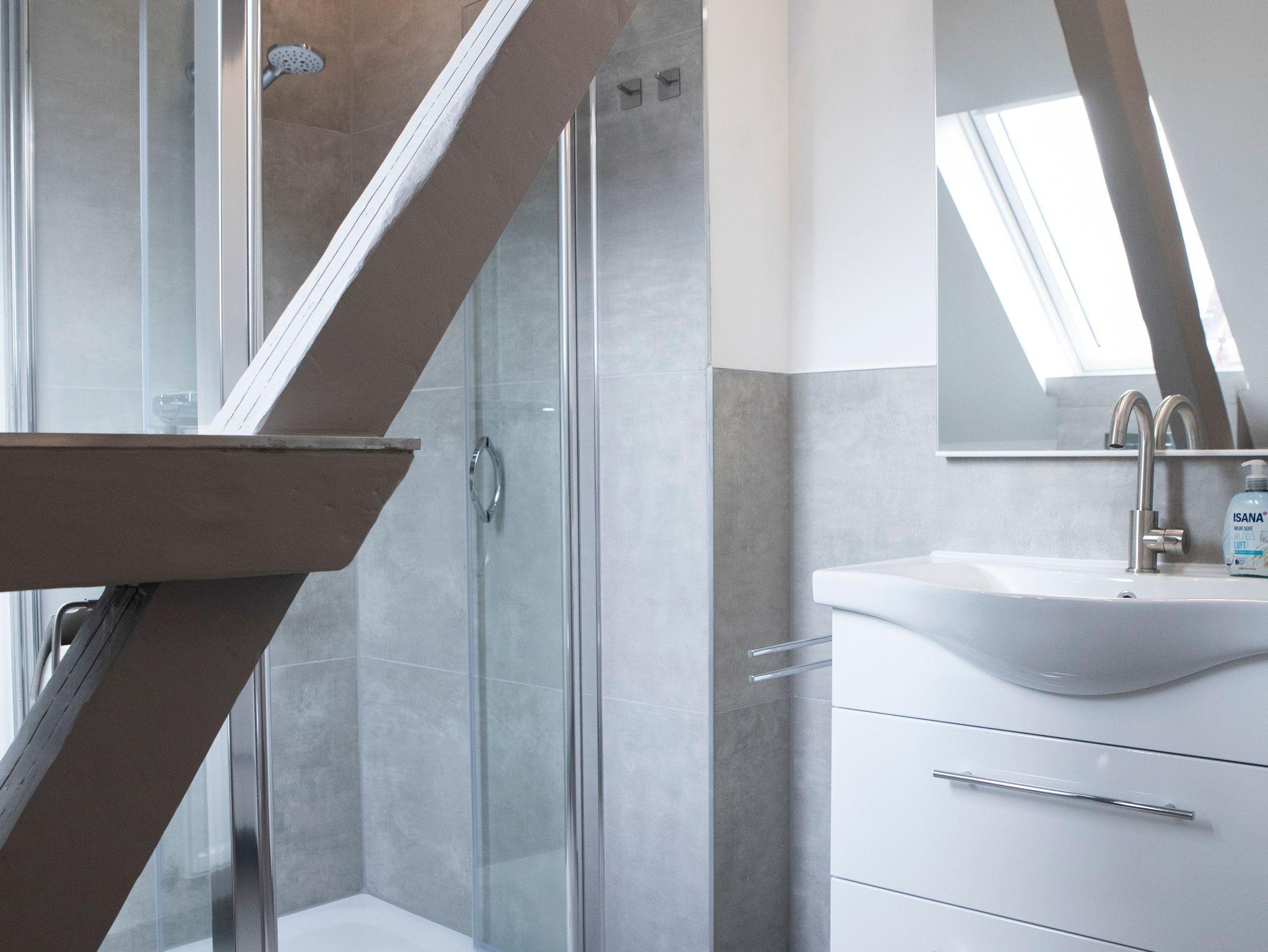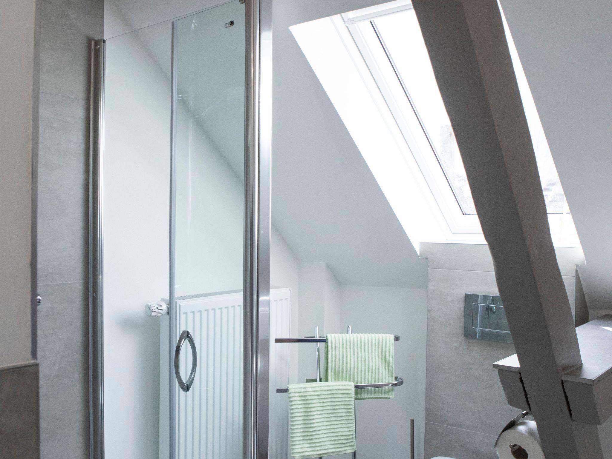 Ebenfalls befindet sich im Obergeschoss ein 2tes Bad mit Du und WC. Waschmaschine und Trockner können gegen Gebühr mitgenutzt werden.