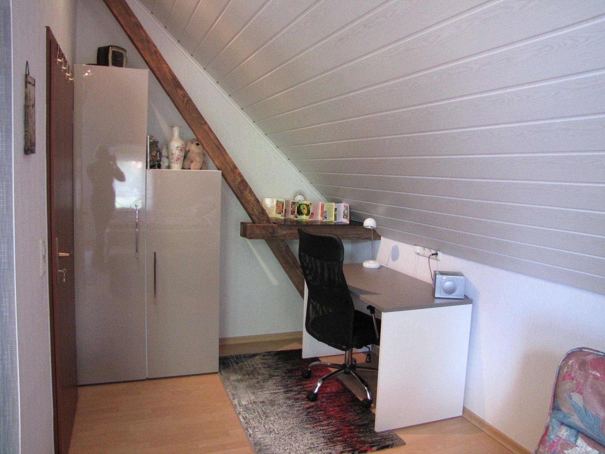 Im Obergeschoss befinden sich ein Schlafzimmer mit Doppelbett (180 x 200 cm) und ein Schlafzimmer mit Doppelbett (Boxspringbett 180 x 200 cm), einer bequemen Sitzecke und einem Schreibtisch.
