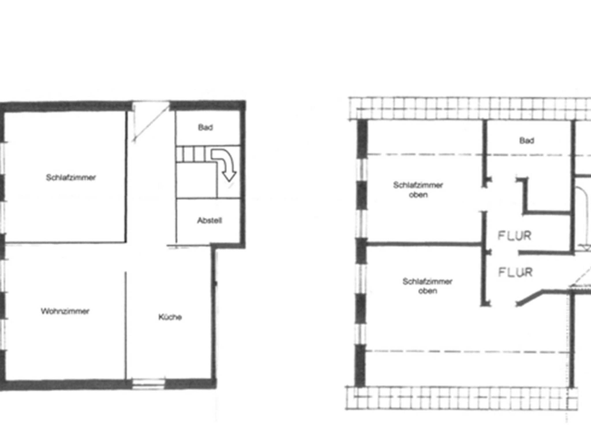 Variante 2: Erdgeschoss 50 qm plus Erweiterung um 45 qm im Obergeschoss mit zwei weiteren Schlafzimmern: ein Schlafzimmer mit Doppelbett 180 x 200 (Boxspringbett), ein Schlafzimmer mit Doppelbett 180 x 200, ein zweites Badezimmer mit Dusche und WC und Waschmaschine.