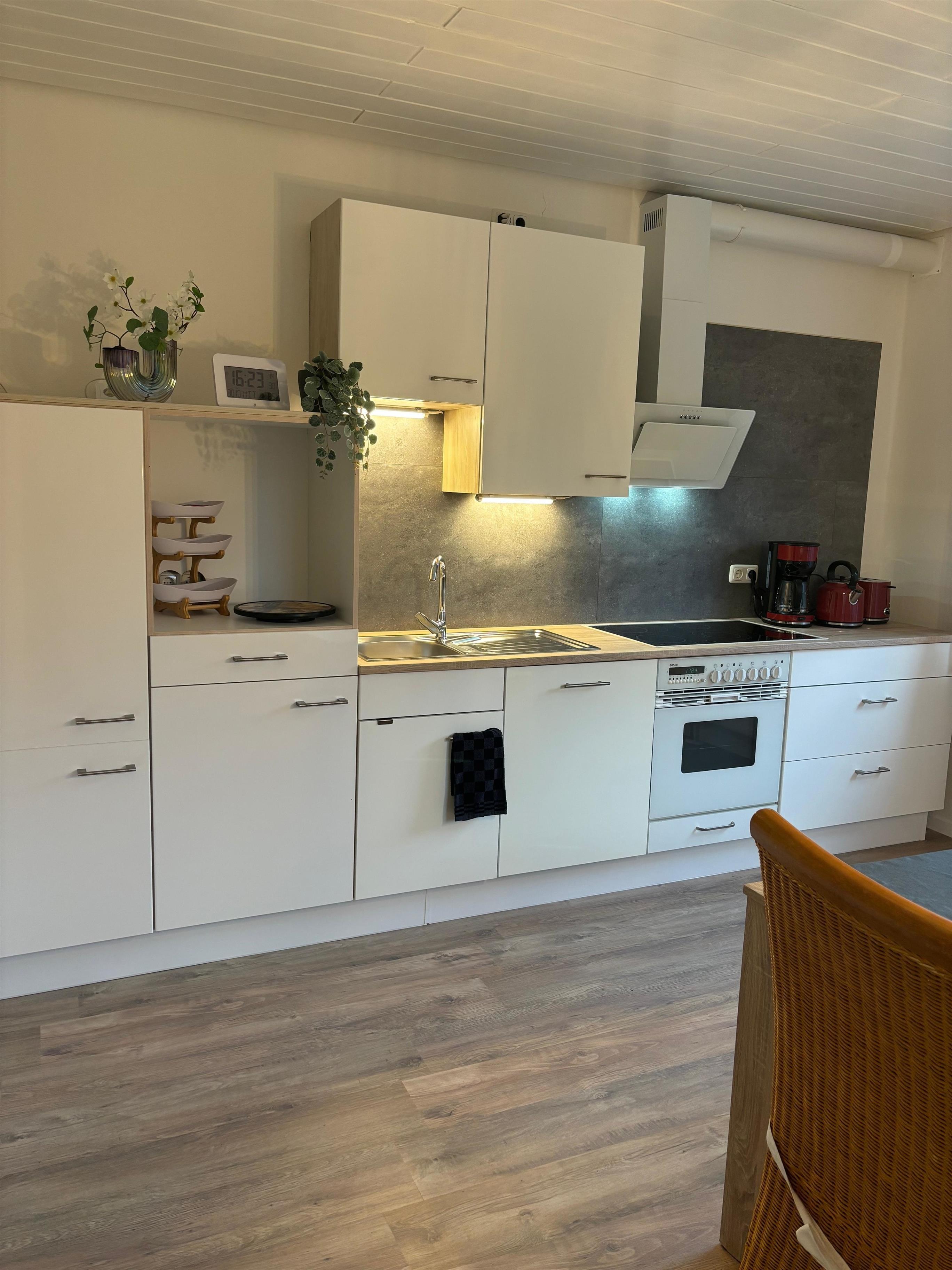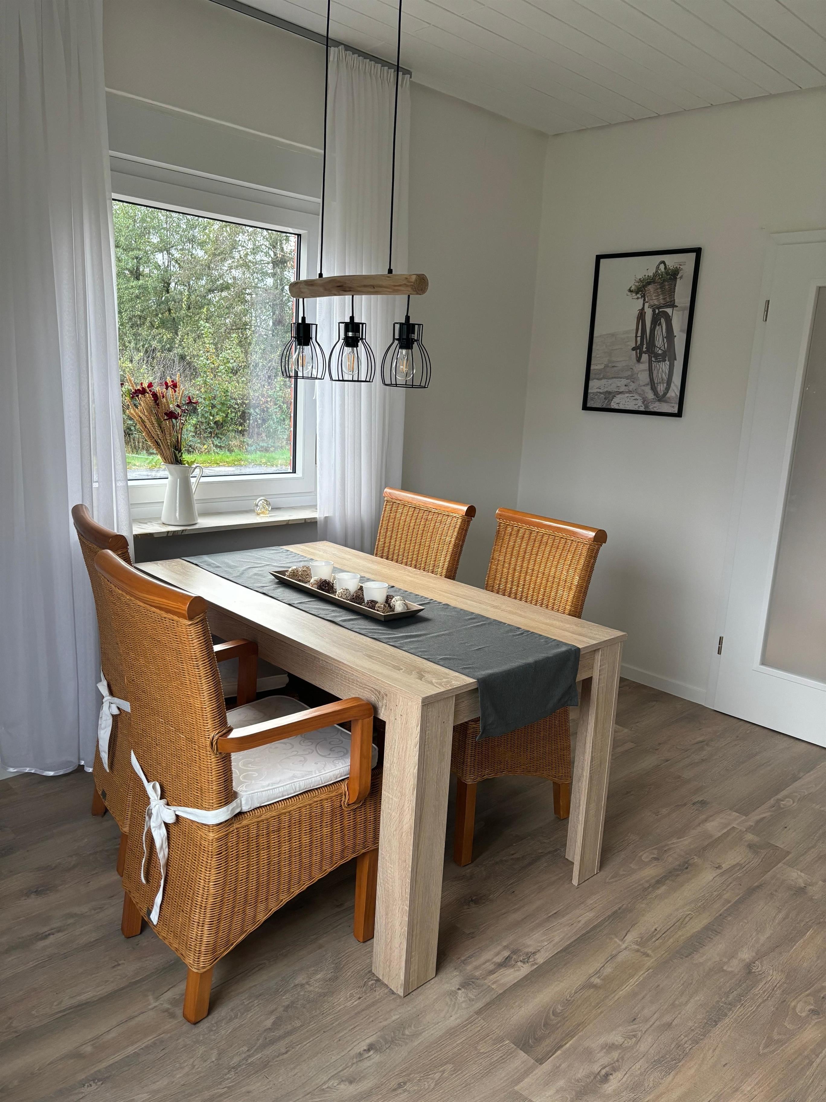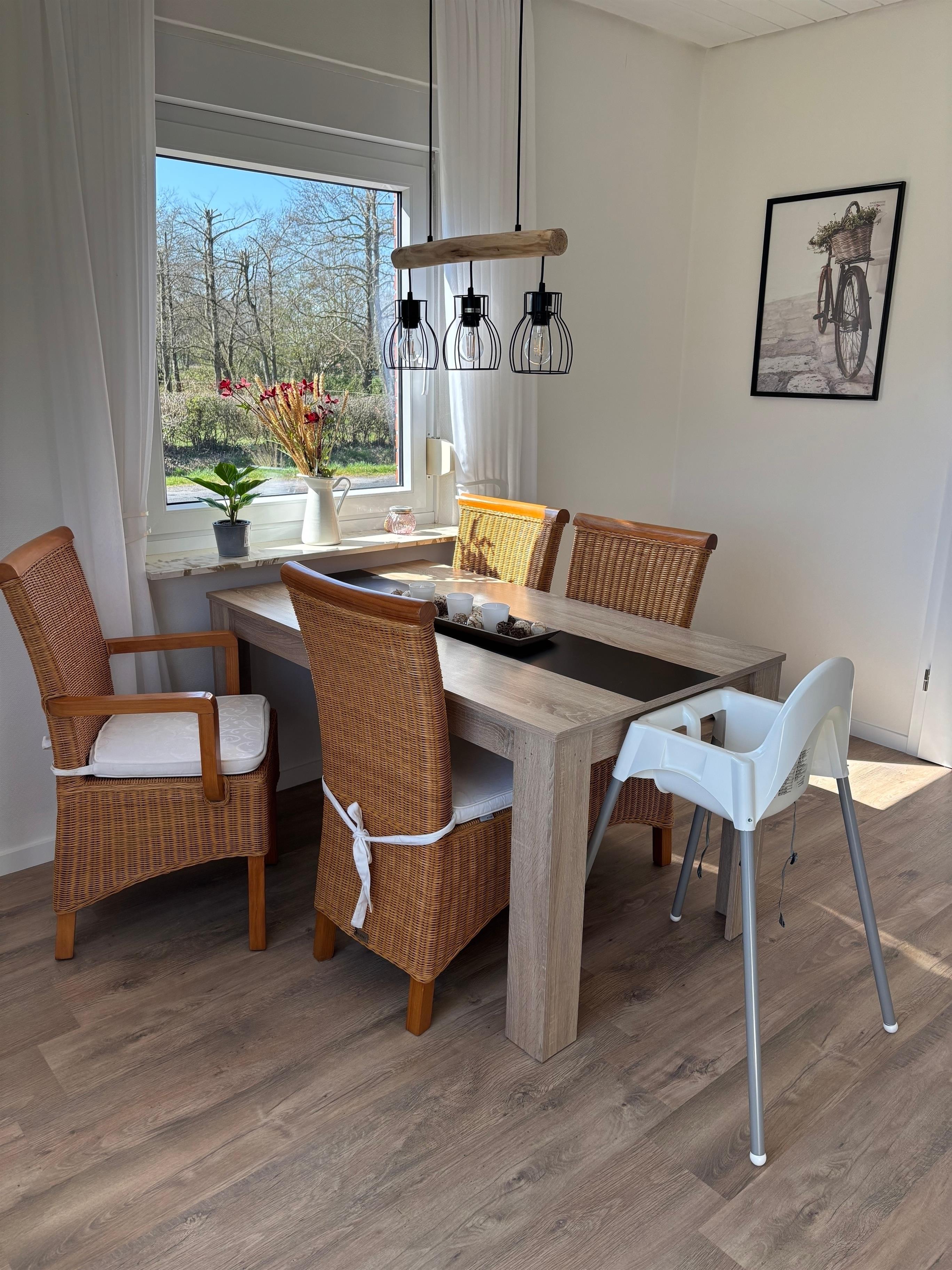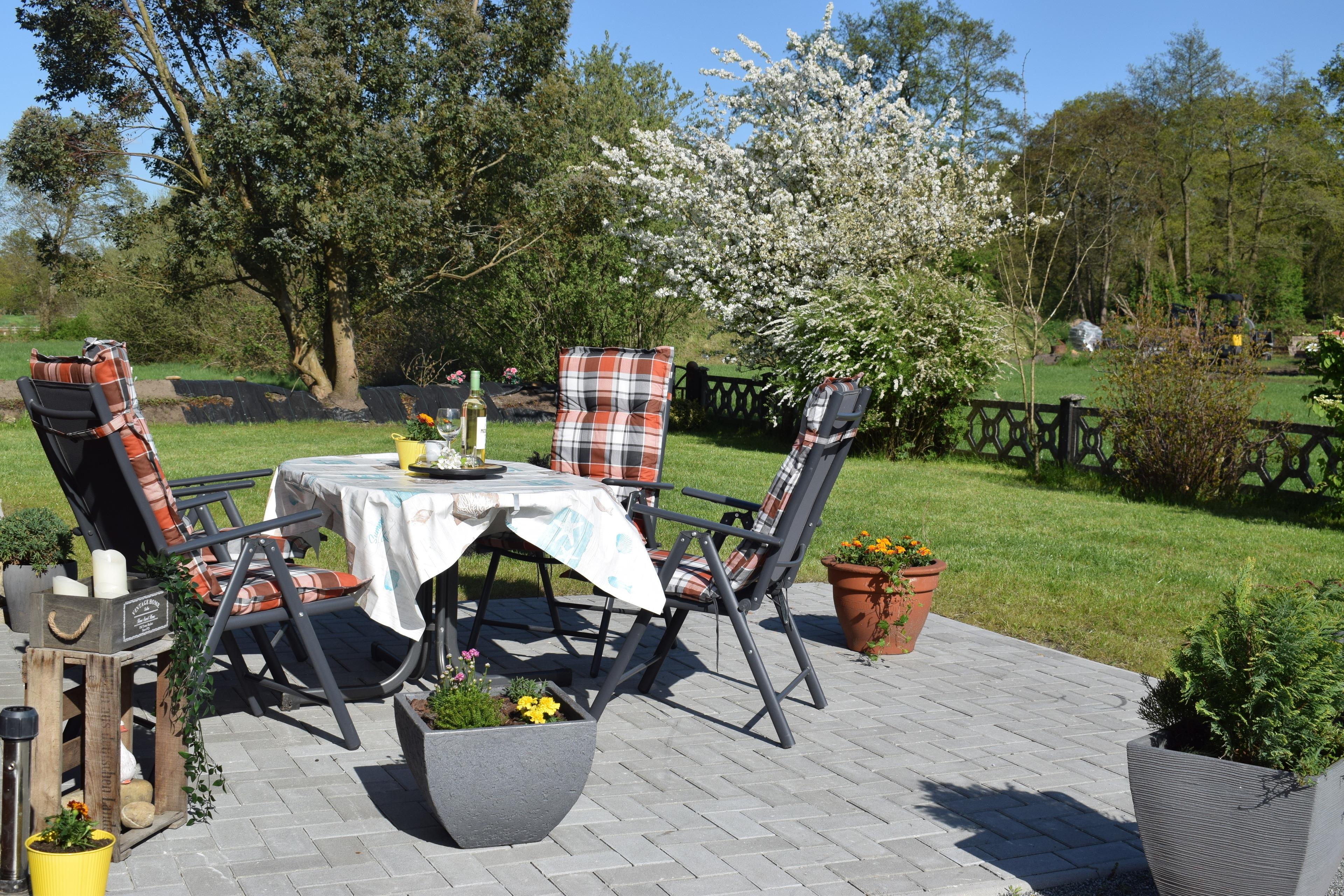 Die voll ausgestattete Küche lädt zu gemeinsamen Kochabenden ein, während die ruhige Lage für erholsame Nächte sorgt. Trotz der idyllischen Umgebung erreichen Sie das Zentrum schnell, wo zahlreiche Freizeitmöglichkeiten auf Sie warten. Vom großzügigen Garten aus können Sie den herrlichen Blick über die Felder genießen. Der Garten ist mit einer Terrasse sowie Tischen und Stühlen ausgestattet, sodass Sie bei schönem Wetter wunderbar im Freien entspannen können.