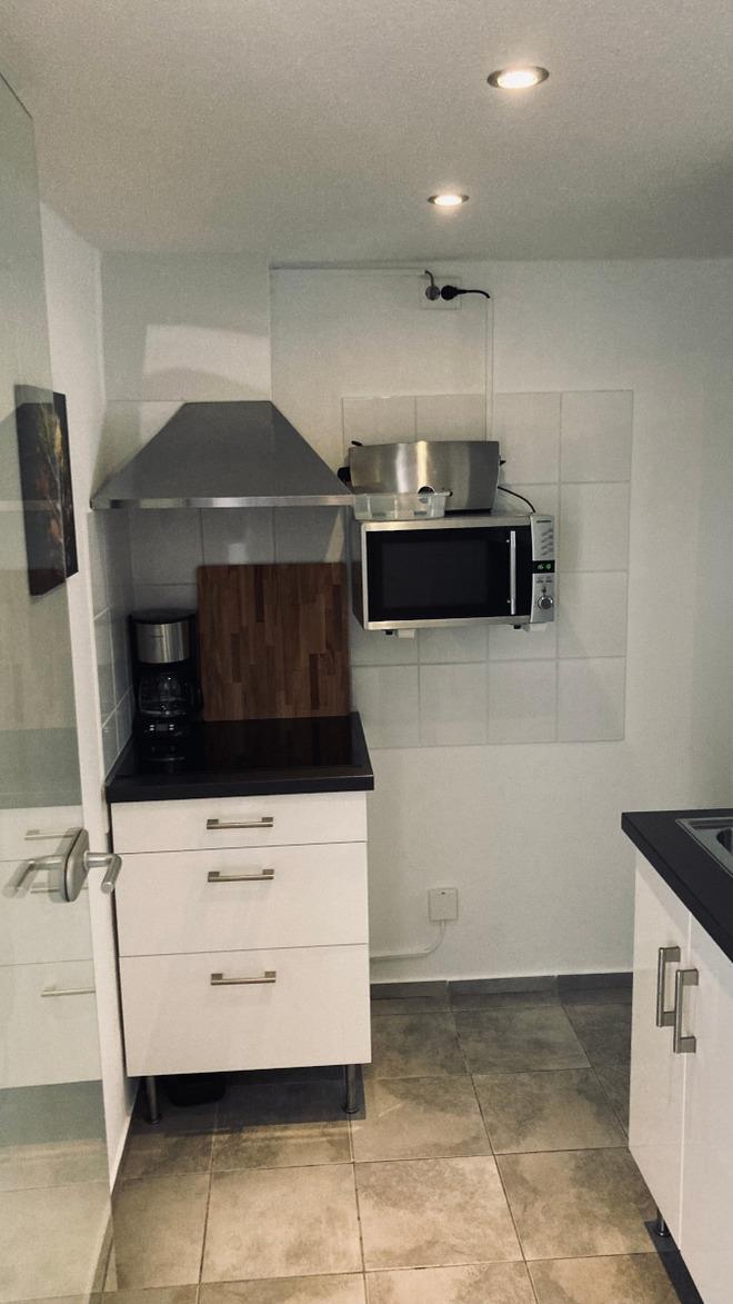 Die vollausgestatte Küche bietet nahezu alles, was man benötigt. Vom morgendlichen frischen Kaffe aus der Kaffemaschine über Wasserkocher, Mikrowelle, Ofen und Herd, finden Sie hier alles, was Geschäftsreisende für einen erfolgreichen Aufenthalt benötigen.