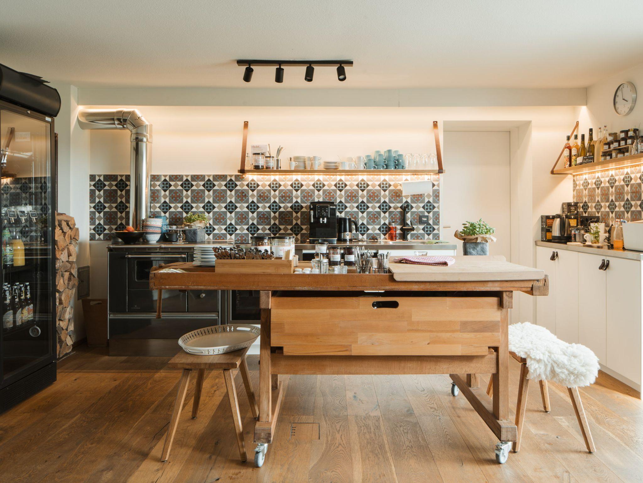 Für zusätzlichen Komfort erwartet Sie eine Gemeinschaftsküche mit Kaffee, Tee, Getränken und Snacks. Auf Wunsch servieren wir hausgemachtes Frühstück, regionale Brotzeiten und Spezialitäten aus unserer Hofküche. In unserem Hofladen finden Sie frische Produkte wie Brot, Aufstriche, Wurstspezialitäten, Käse, Honig und vieles mehr.