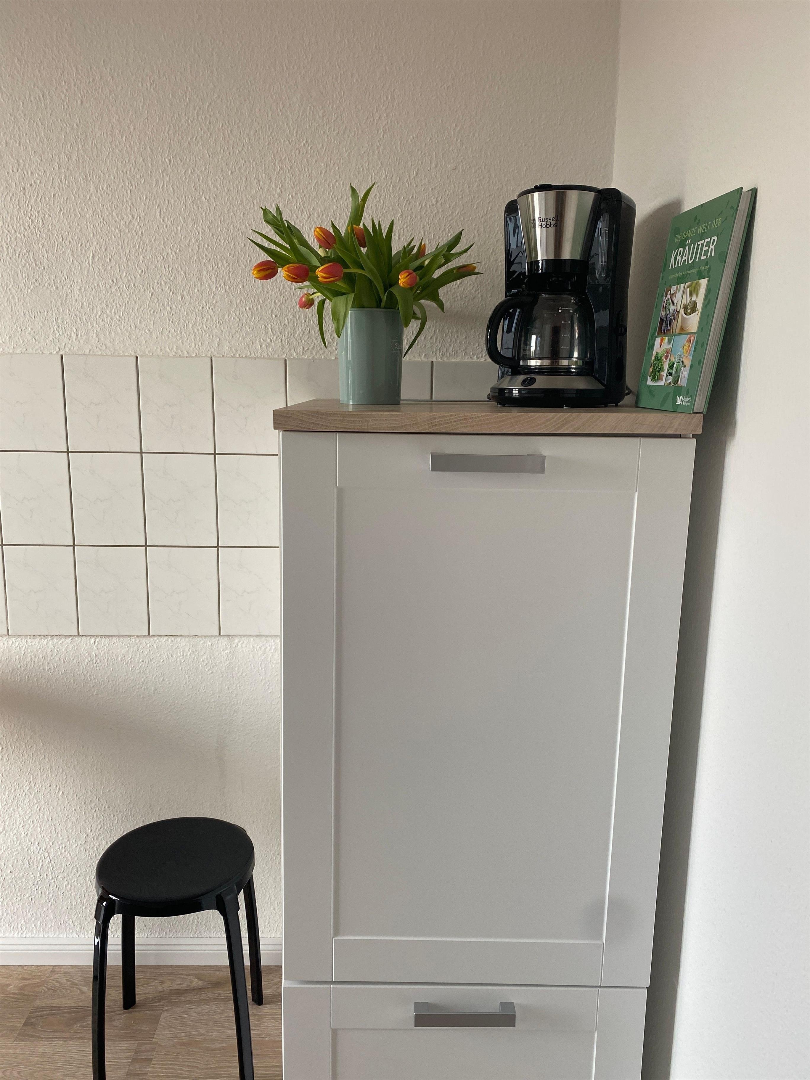 2 Zimmer mit je zwei Einzelbetten, Duschbadezimmer und voll eingerichtete Küche mit Backofen und Waschmaschine. WLAN vorhanden.