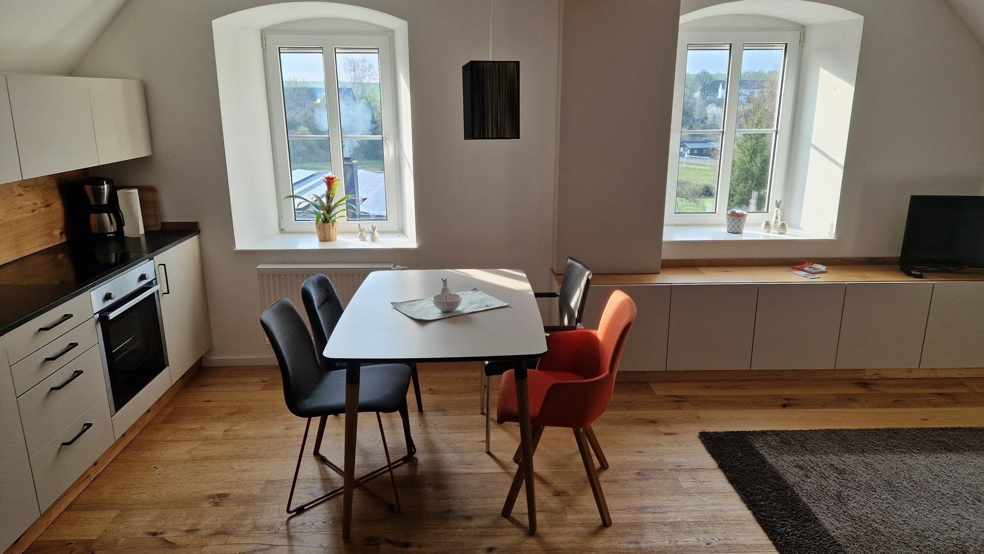 Tauchen Sie ein in die ruhige Harmonie unserer liebevoll eingerichteten Ferienwohnung, die als Ihr Zuhause fernab der Heimat dient. Mit einer voll ausgestatteten Küche, einem einladenden Wohnzimmer und zwei behaglichen Schlafzimmern, die jeweils bis zu zwei Gäste willkommen heißen, ist jede Ecke darauf ausgerichtet, Ihnen Komfort und Gemütlichkeit zu bieten.