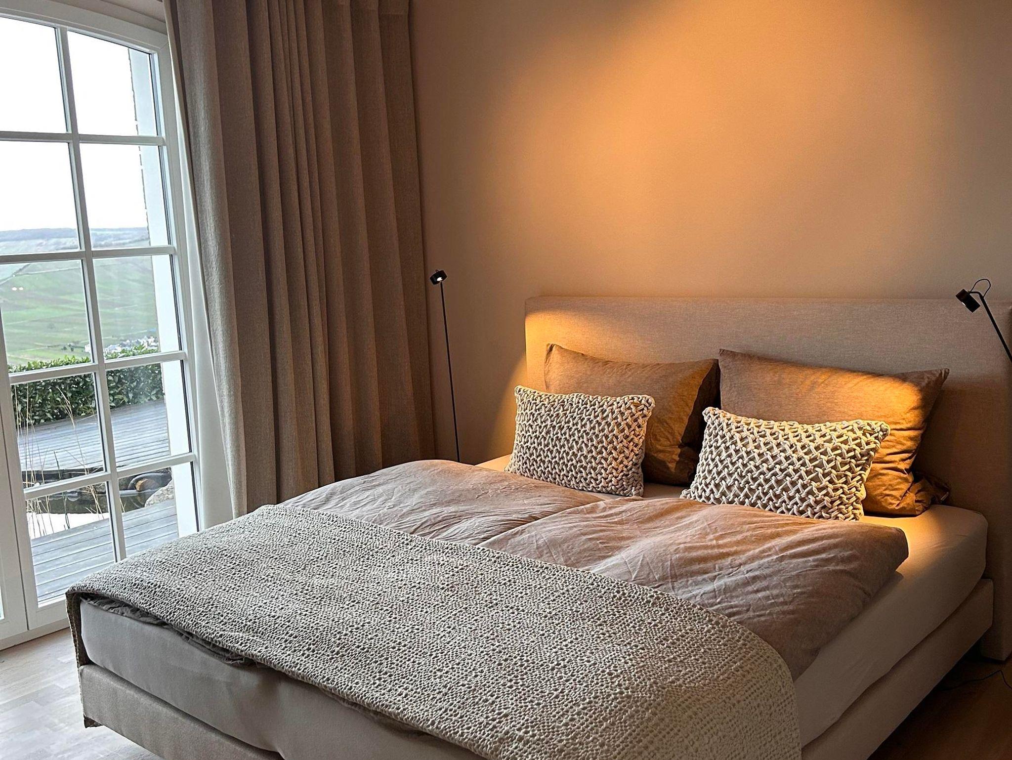 Die Ferienwohnung ist modern und hochwertig eingerichtet, mit offenem Wohnraum kombiniert Wohnzimmer mit Essbereich und Küche; das Schlafzimmer separat, ebenfalls mit Zugang zur Terrasse mit Moselblick; ein Bad mit begehbarer Dusche.