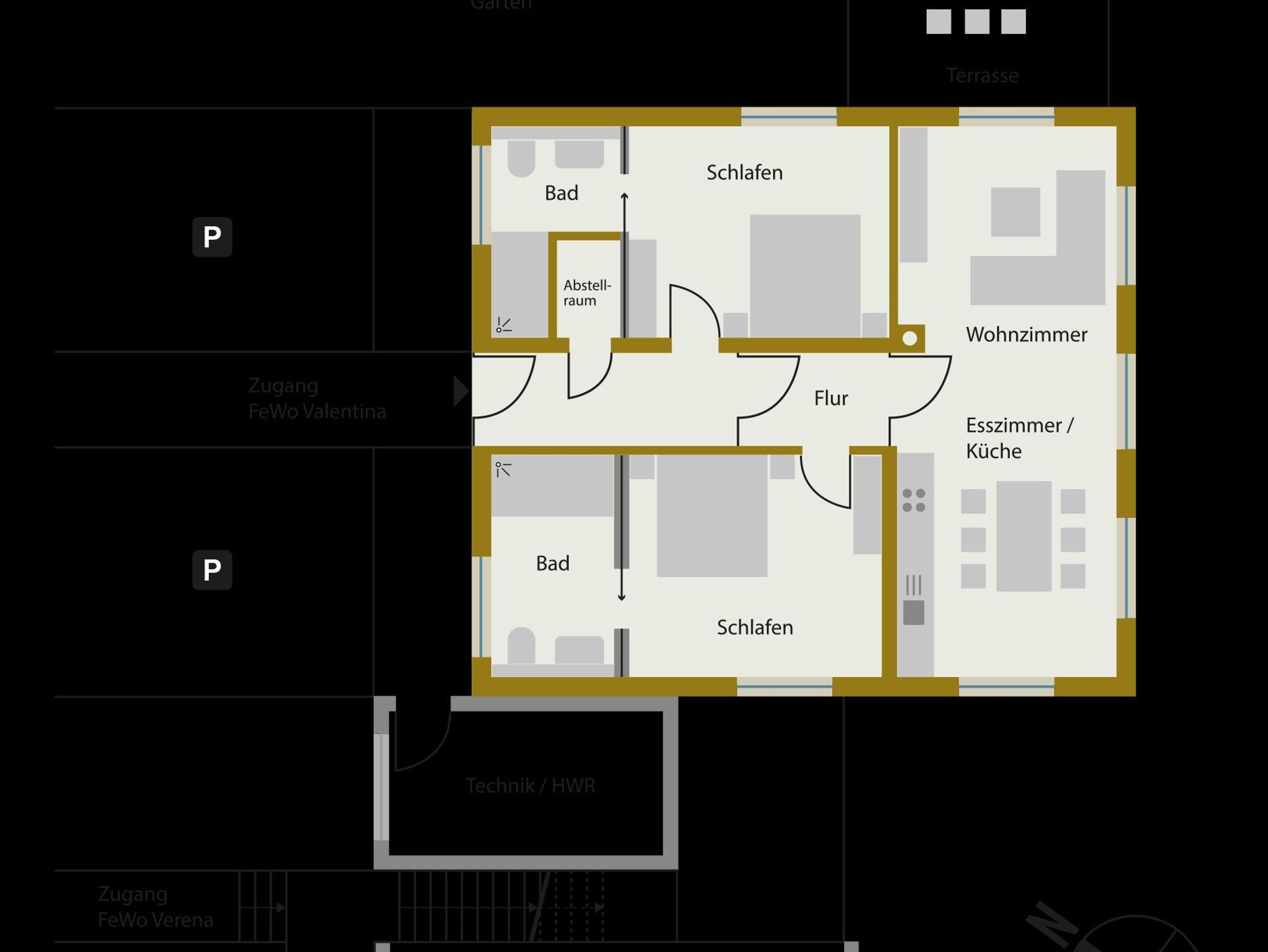 Bei Buchung der Wohnung für 2 Personen kann nur ein Schlafzimmer genutzt werden- (Nutzung des 2. Schafzimmers gegen Aufpreis).