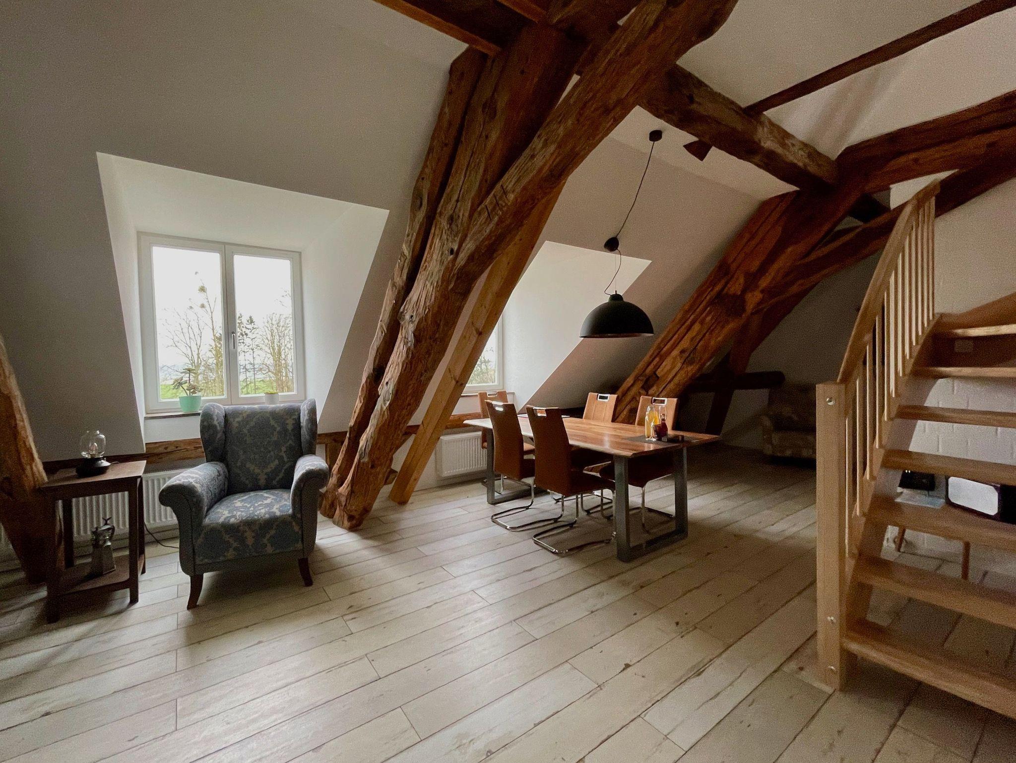 Die Ferienwohnung Ulrichshusen begrüßt Sie in Lelkendorf in Mecklenburg-Vorpommern mit einer lichtdurchfluteten Loftwohnung über 2 Etagen. Insgesamt sind 8 Fenster verbaut und sie können aus der 2. und 3. Etage einen wunderschönen Ausblick in den Park und in die Landschaft genießen. Sie profitieren von kostenfreien Privatparkplätzen an der Unterkunft.