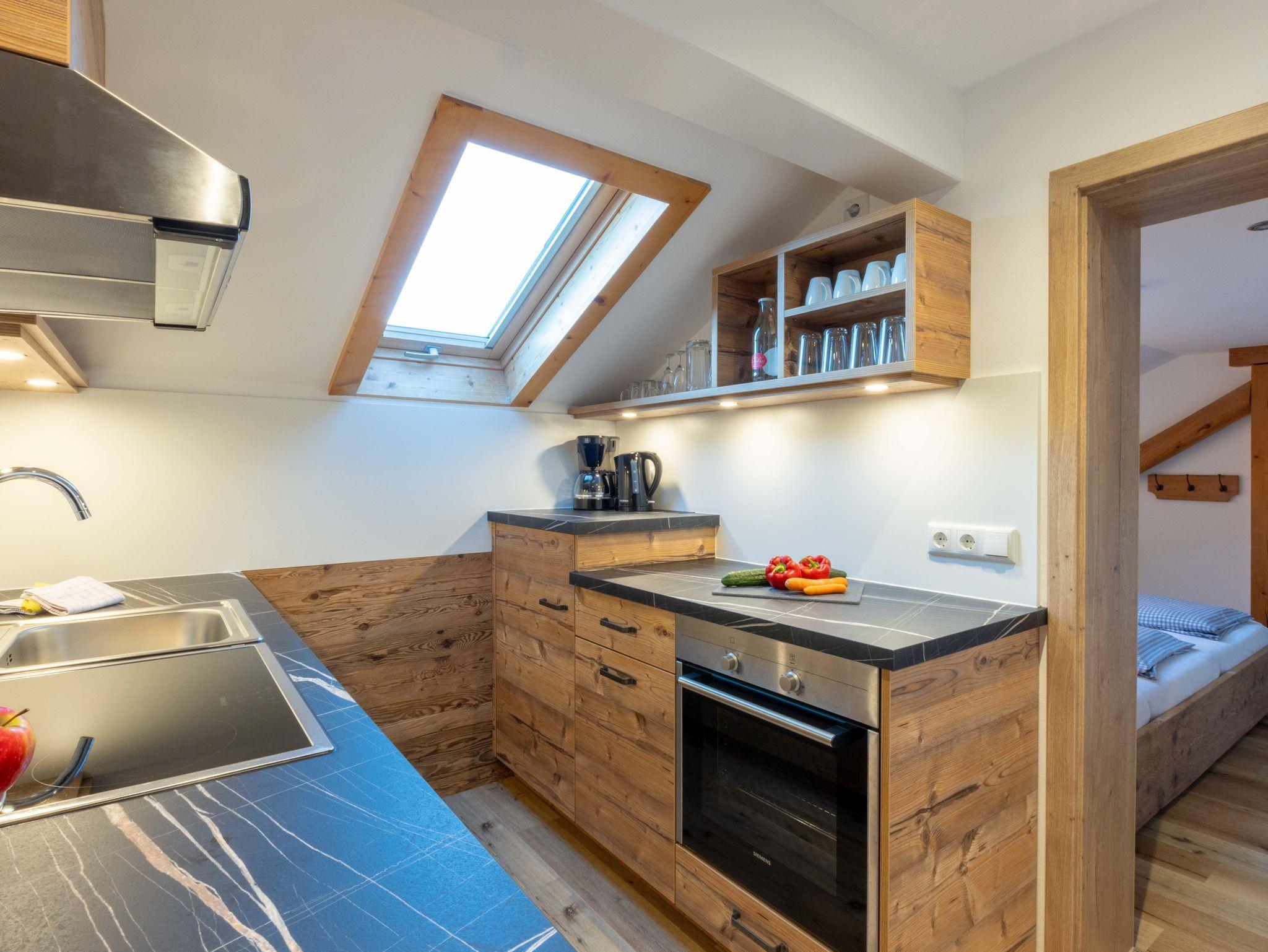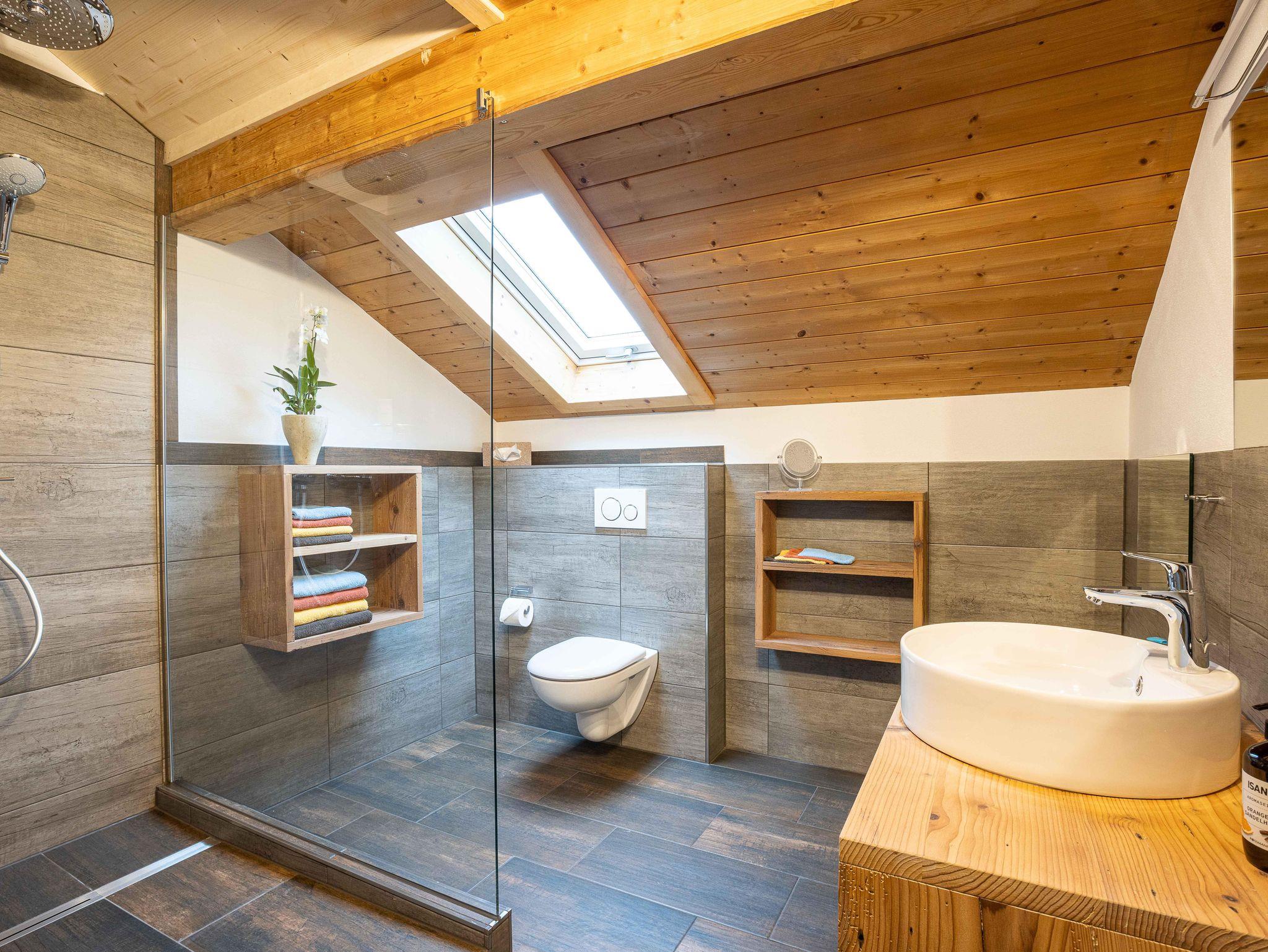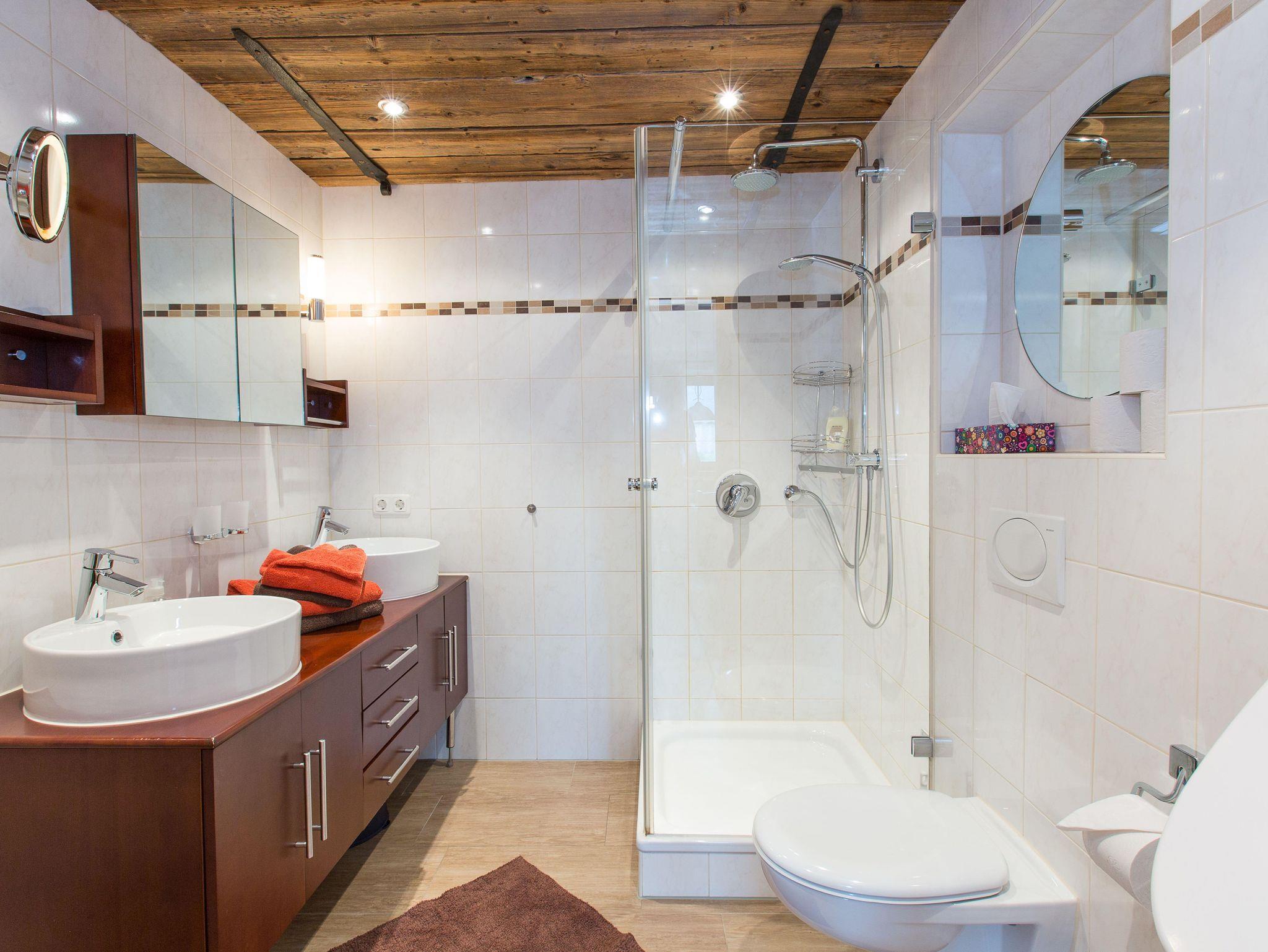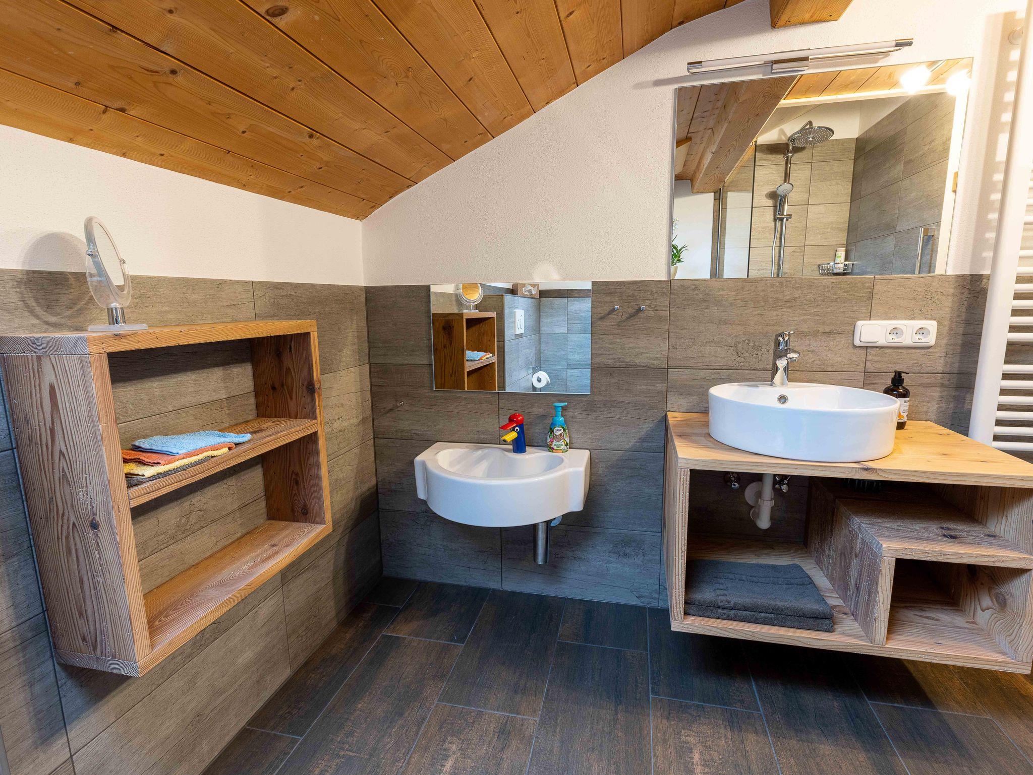 Mit ca. 70 qm Wohnfläche umfasst sie zwei getrennte Schlafzimmer, Wohnzimmer mit Couch und Essecke, Küche mit Spülmaschine, Flur, große Dusche/WC und Balkon über die Vorderseite unseres Bauernhofes mit herrlichem Ausblick auf Lenggries.