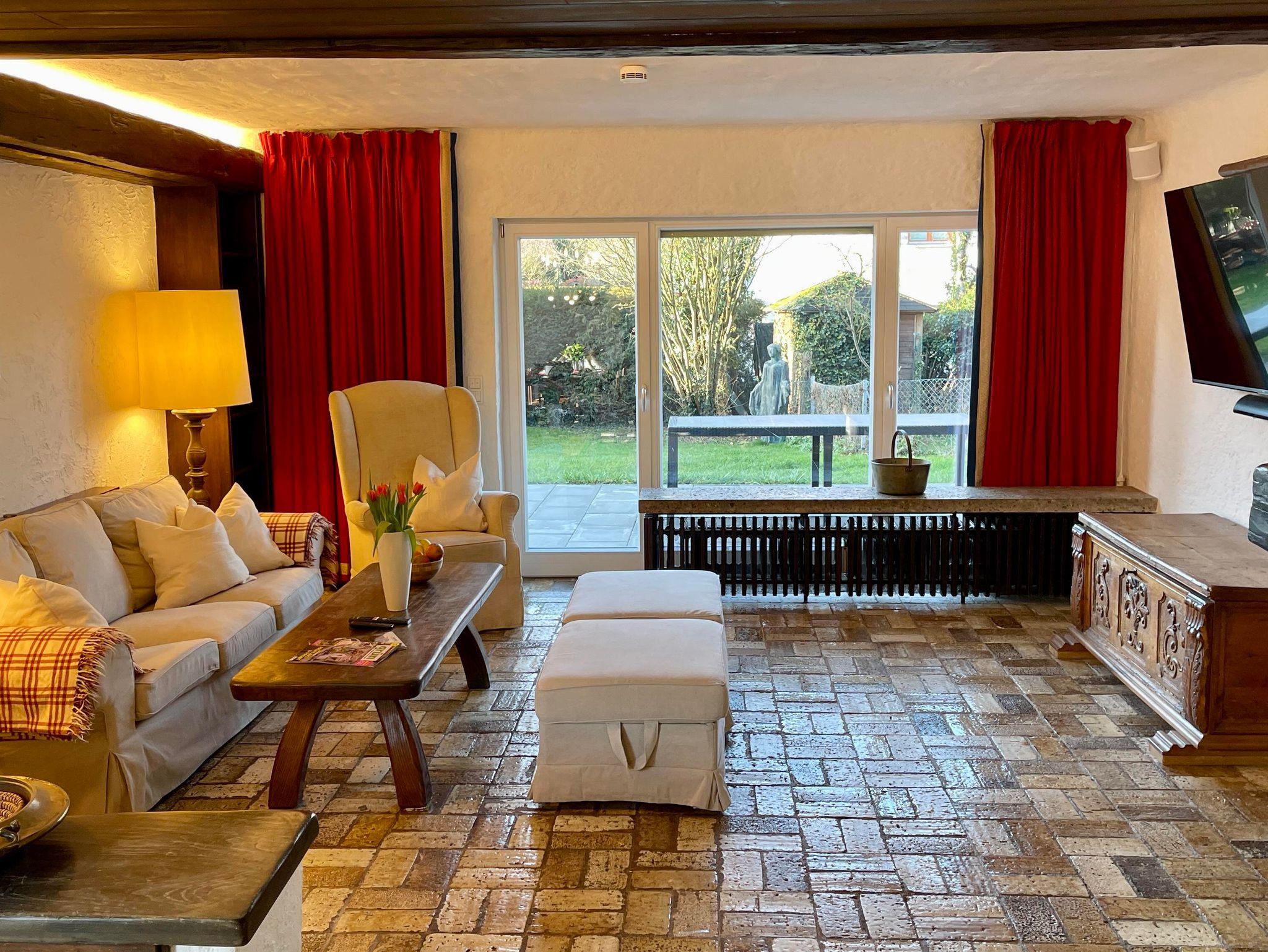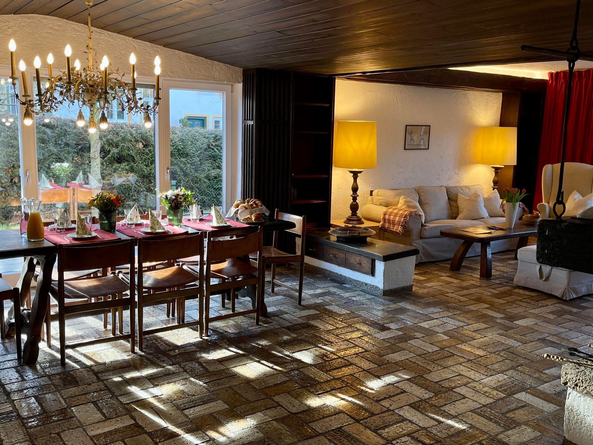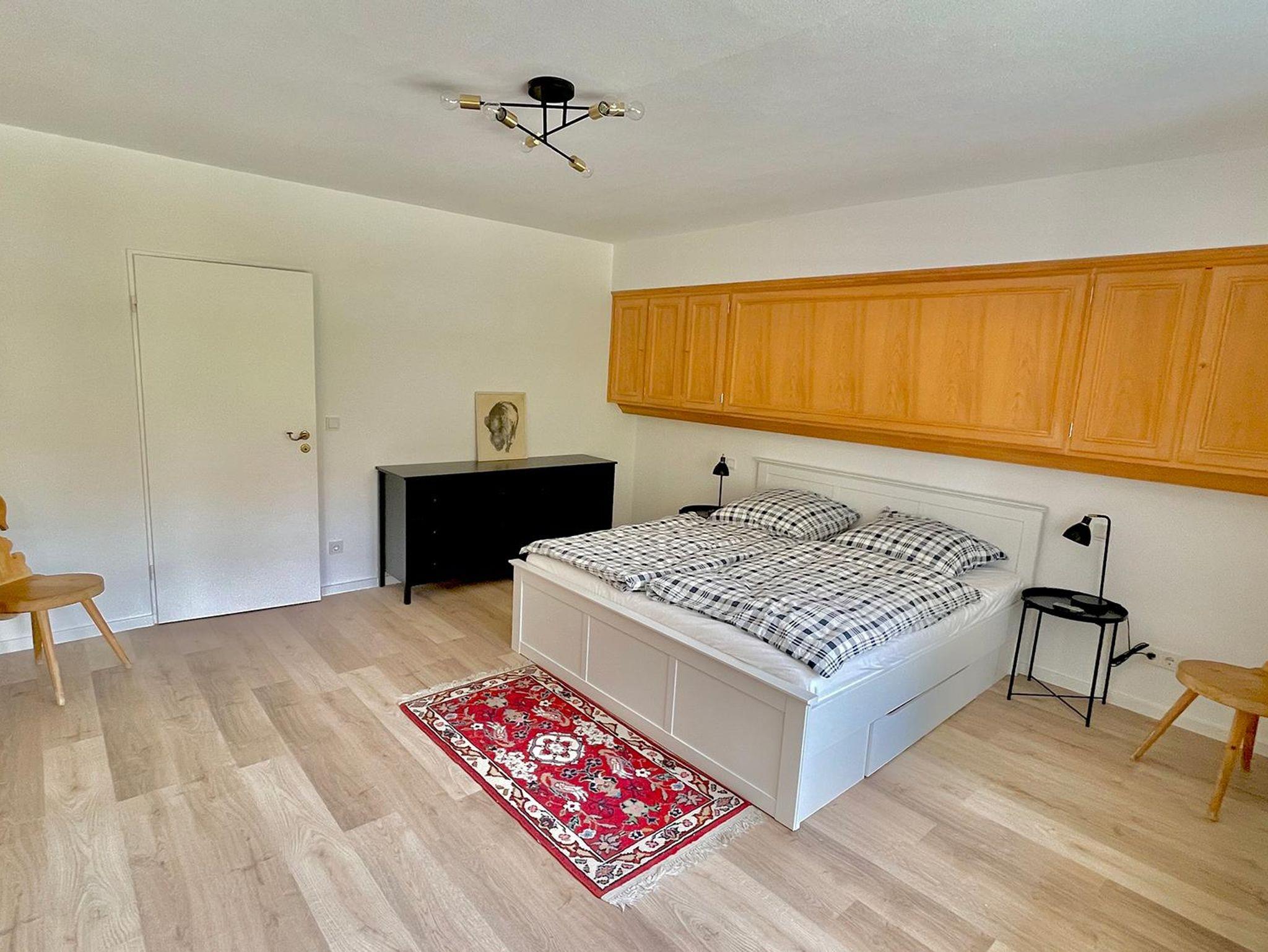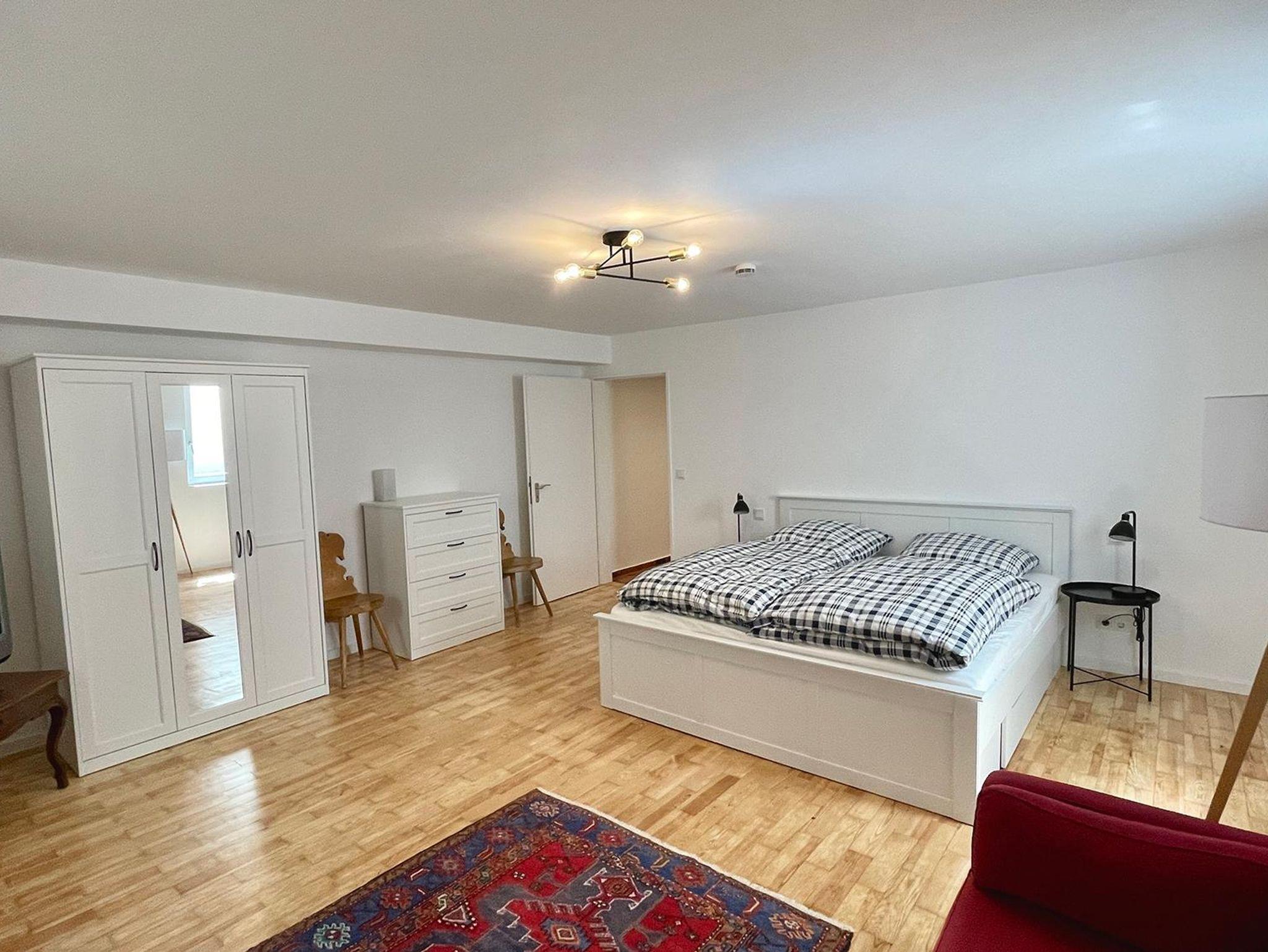 Die Wohnung erstreckt sich über zwei Ebenen und bietet mit seinen 5 Schlafzimmer, 2 Bäder, 2 Gäste-WCs, Sauna, Wohnzimmer, Küche mit Balkon und Terrasse sowie Garten ausreichend Platz für zwei Familien. Die Schlafzimmer im Halbsouterrain sind während den Sommermonaten der ideale Ort um der Hitze zu entkommen und bieten ein perfektes Raumklima. Ländlich-modern eingerichtet verfügt die Ferienwohnung über eine gut ausgestattet Küche, WLAN, Internetzugang, SONOS-Speaker in fast allen Zimmern & Bädern und ein sehr großes Wohnzimmer (53qm) mit einem offenen Kamin sowie einen großen 75 Zoll Smart-TV. Ideal für gemütliche Abende vor dem Feuer im Winter oder dem Kinoabend mit der ganzen Familie. Die 4 großen Schlafzimmer laden ein zum Verweilen und bieten Nachts einen erholsamen Schlaf.