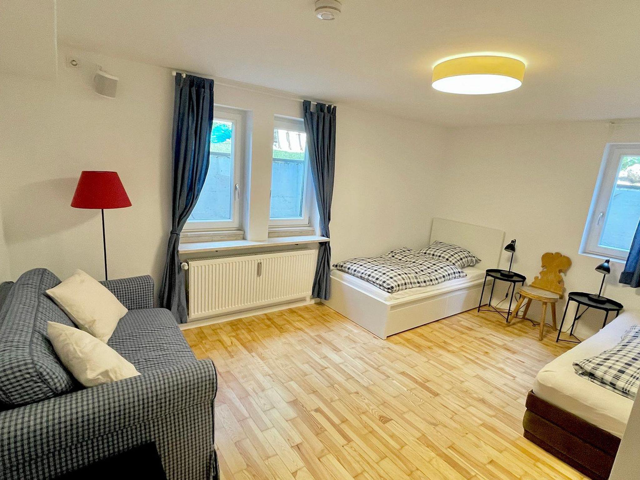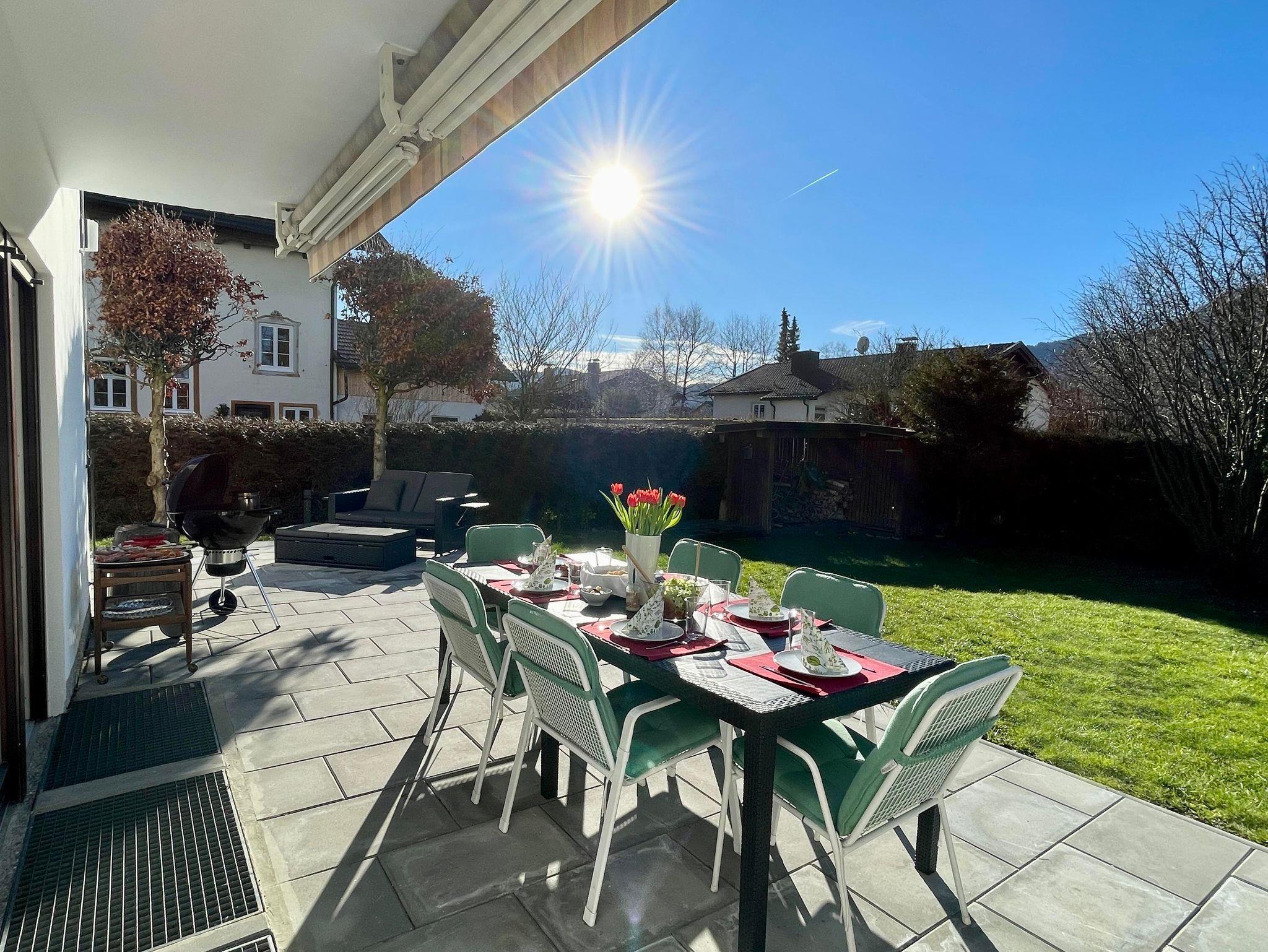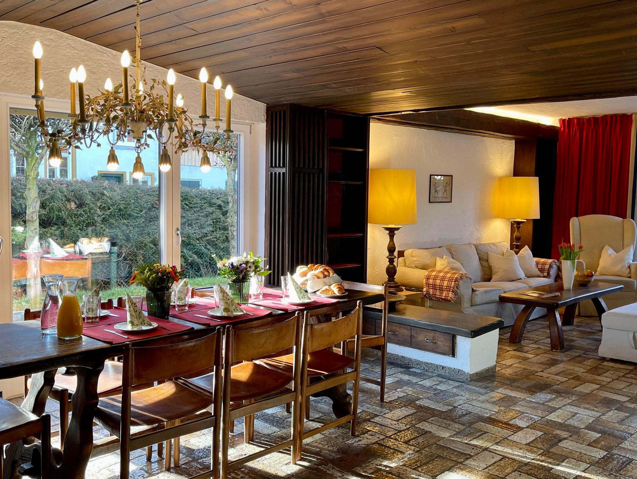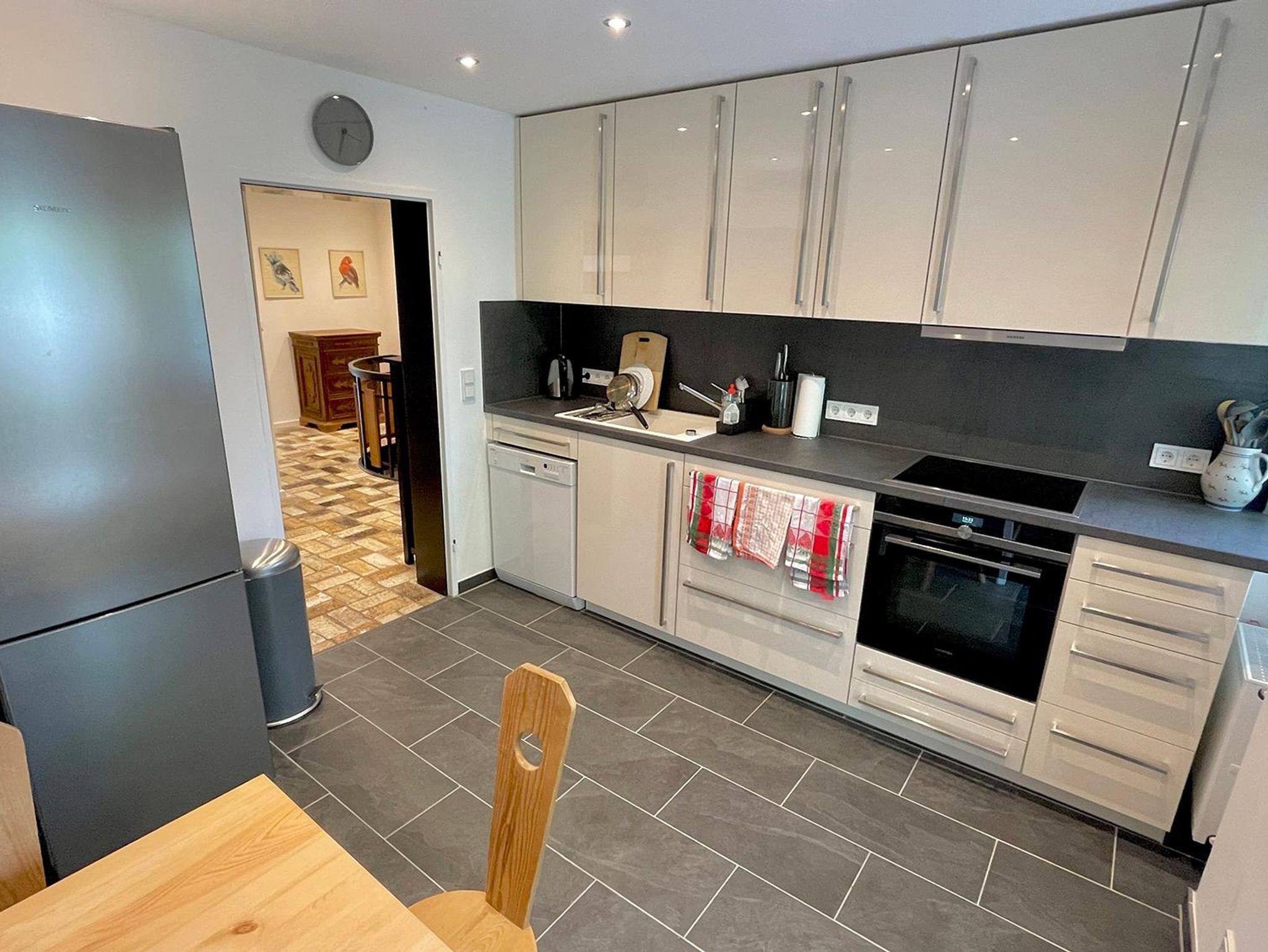 Die Wohnung erstreckt sich über zwei Ebenen und bietet mit seinen 5 Schlafzimmer, 2 Bäder, 2 Gäste-WCs, Sauna, Wohnzimmer, Küche mit Balkon und Terrasse sowie Garten ausreichend Platz für zwei Familien. Die Schlafzimmer im Halbsouterrain sind während den Sommermonaten der ideale Ort um der Hitze zu entkommen und bieten ein perfektes Raumklima. Ländlich-modern eingerichtet verfügt die Ferienwohnung über eine gut ausgestattet Küche, WLAN, Internetzugang, SONOS-Speaker in fast allen Zimmern & Bädern und ein sehr großes Wohnzimmer (53qm) mit einem offenen Kamin sowie einen großen 75 Zoll Smart-TV. Ideal für gemütliche Abende vor dem Feuer im Winter oder dem Kinoabend mit der ganzen Familie. Die 4 großen Schlafzimmer laden ein zum Verweilen und bieten Nachts einen erholsamen Schlaf.