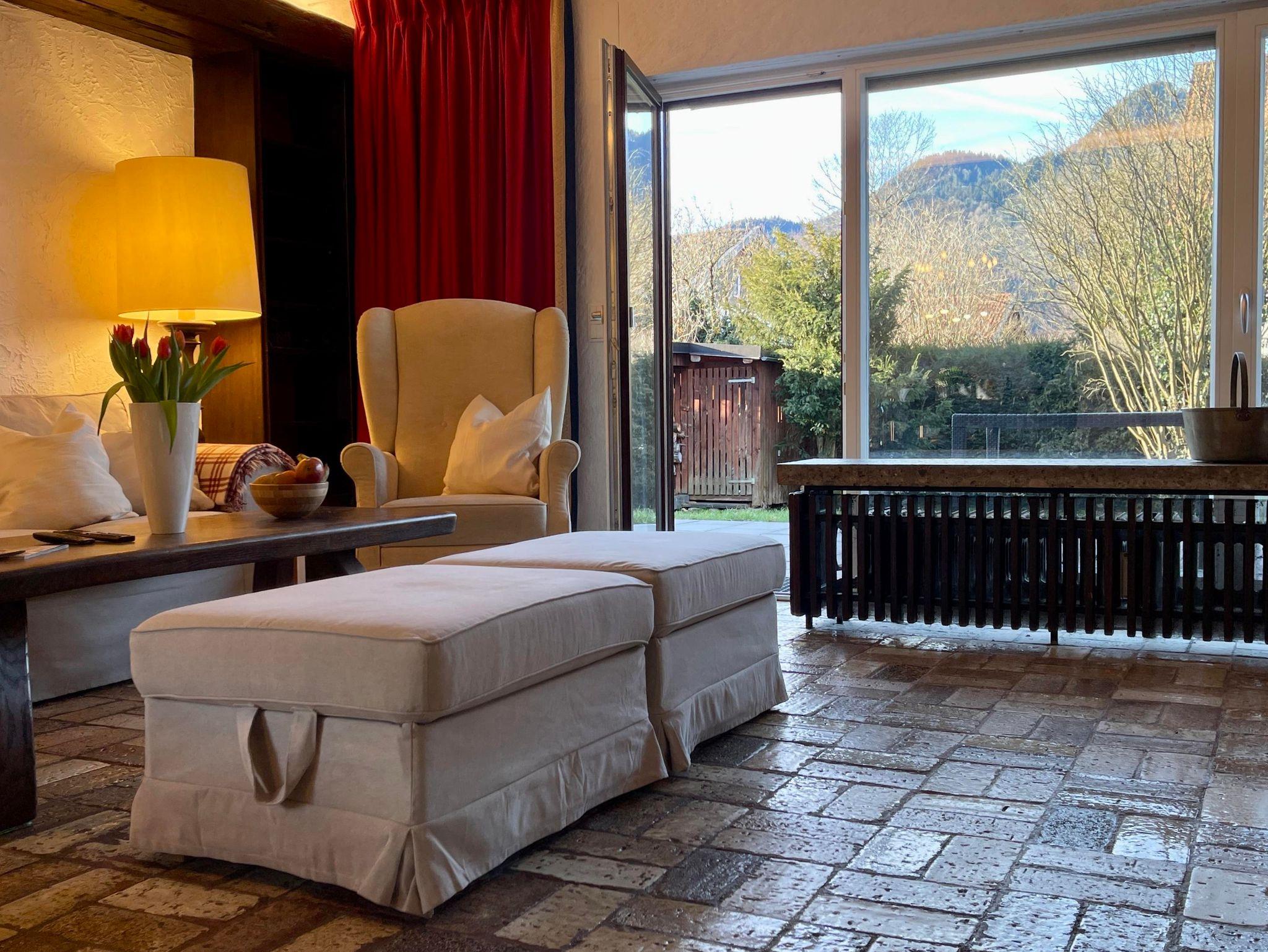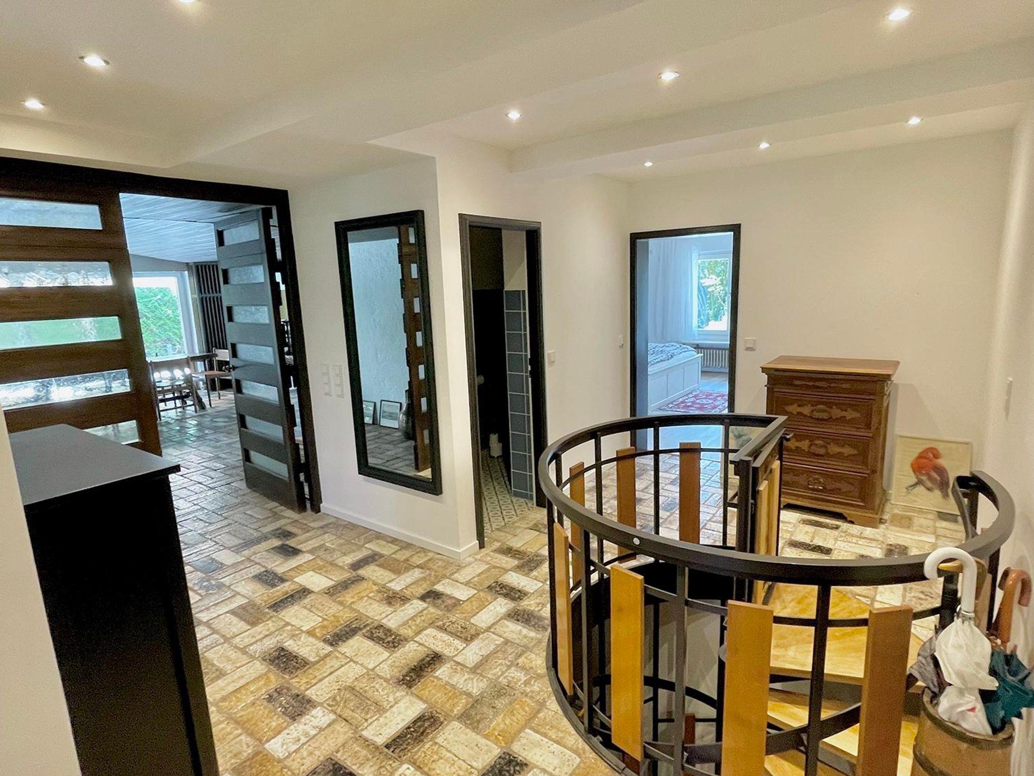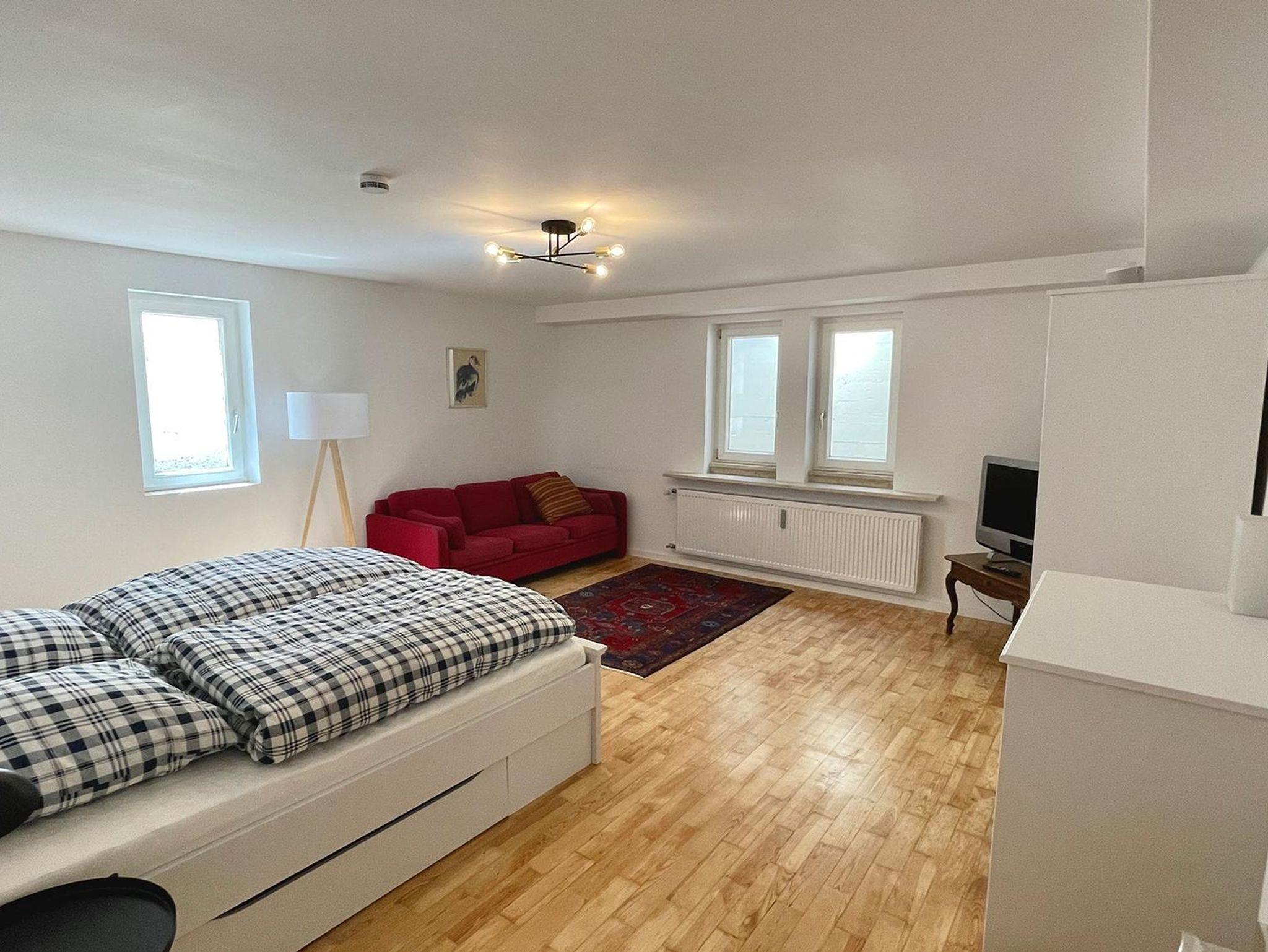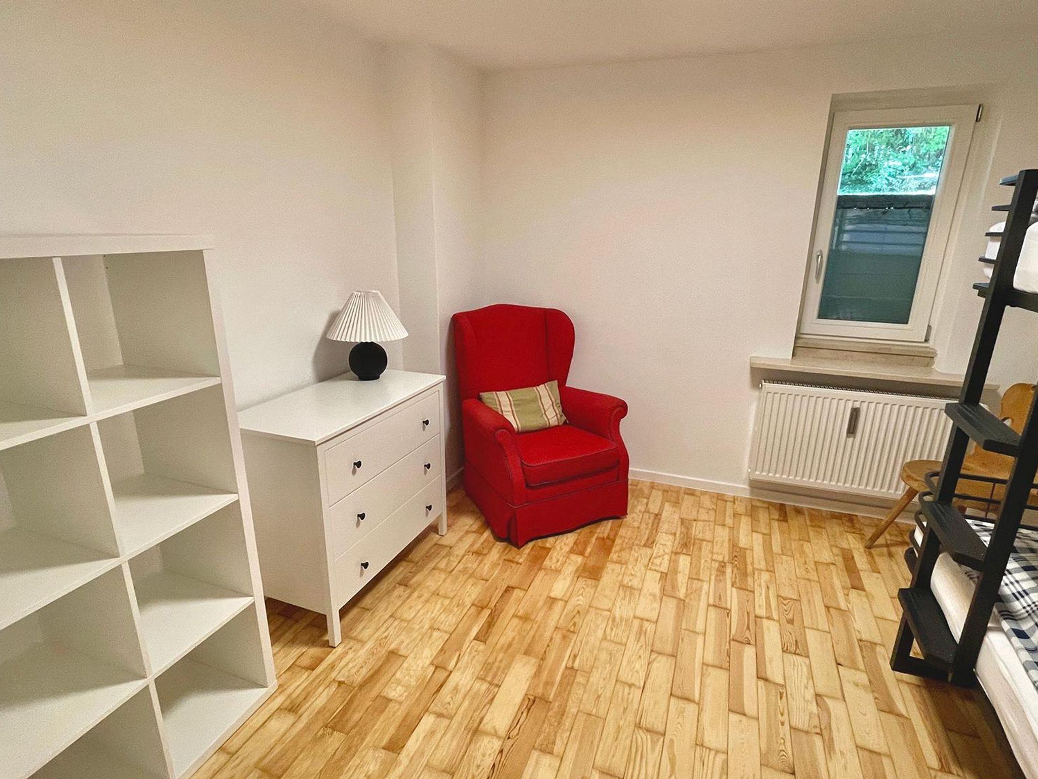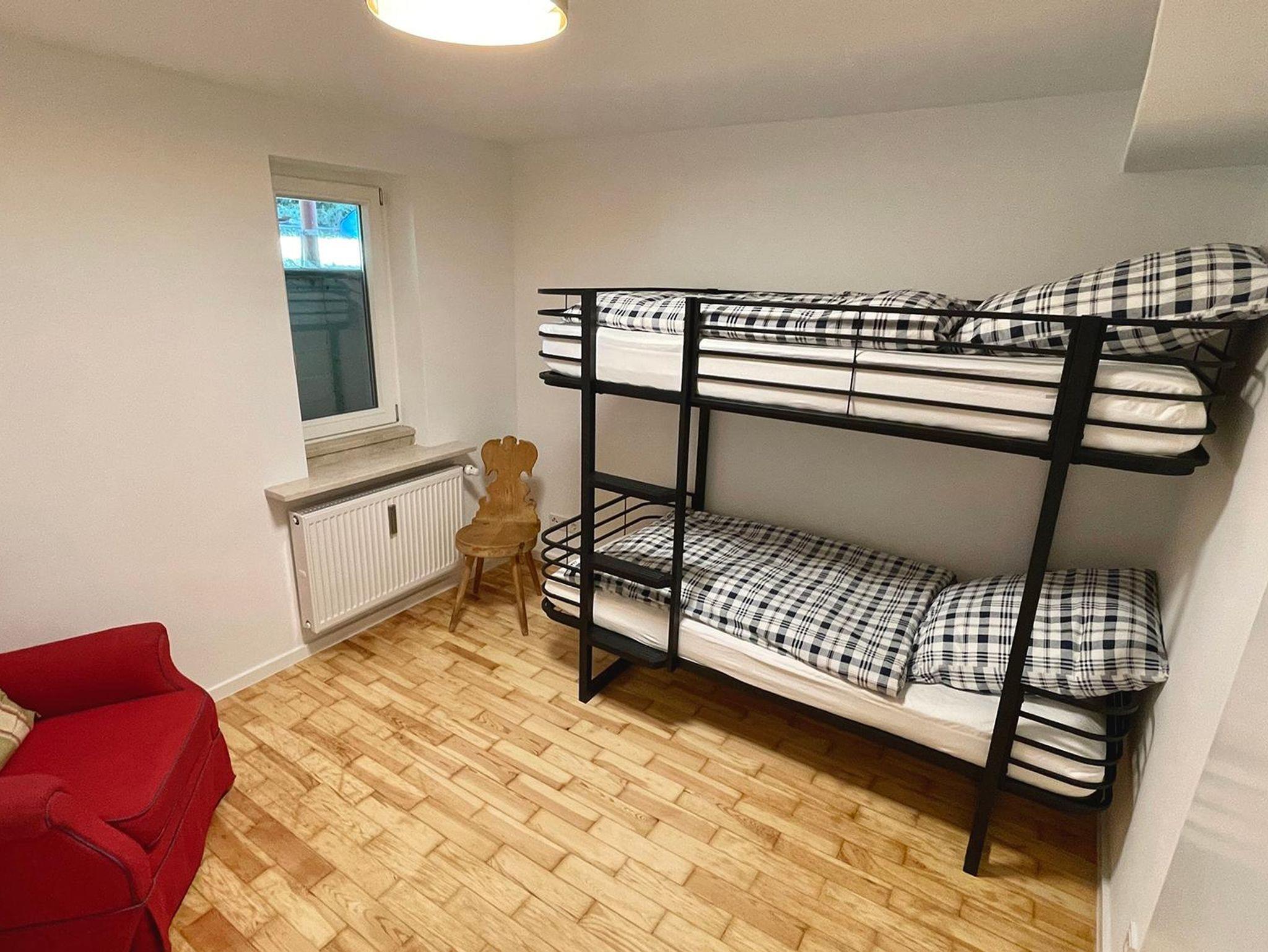 Die Wohnung erstreckt sich über zwei Ebenen und bietet mit seinen 5 Schlafzimmer, 2 Bäder, 2 Gäste-WCs, Sauna, Wohnzimmer, Küche mit Balkon und Terrasse sowie Garten ausreichend Platz für zwei Familien. Die Schlafzimmer im Halbsouterrain sind während den Sommermonaten der ideale Ort um der Hitze zu entkommen und bieten ein perfektes Raumklima. Ländlich-modern eingerichtet verfügt die Ferienwohnung über eine gut ausgestattet Küche, WLAN, Internetzugang, SONOS-Speaker in fast allen Zimmern & Bädern und ein sehr großes Wohnzimmer (53qm) mit einem offenen Kamin sowie einen großen 75 Zoll Smart-TV. Ideal für gemütliche Abende vor dem Feuer im Winter oder dem Kinoabend mit der ganzen Familie. Die 4 großen Schlafzimmer laden ein zum Verweilen und bieten Nachts einen erholsamen Schlaf.