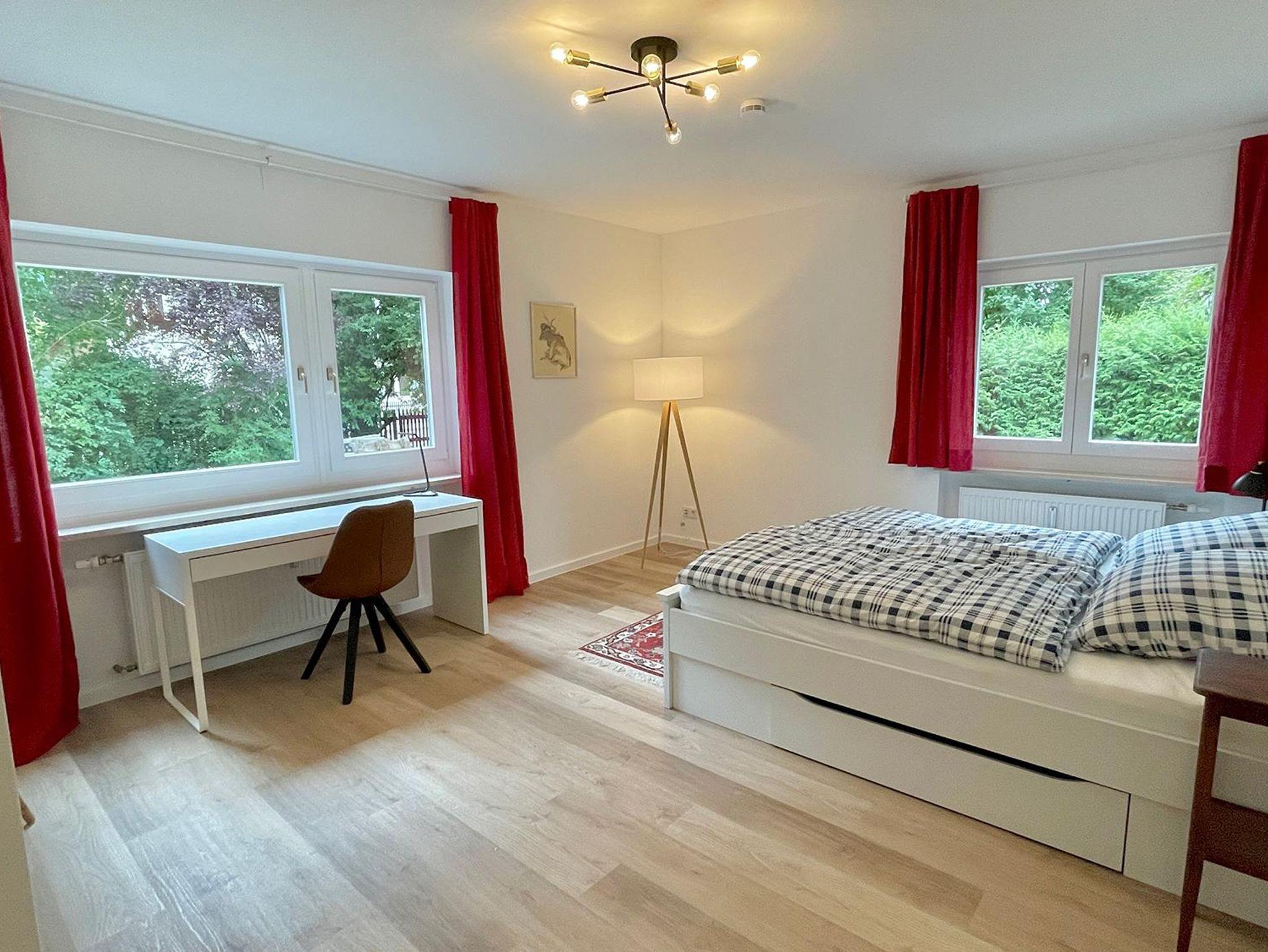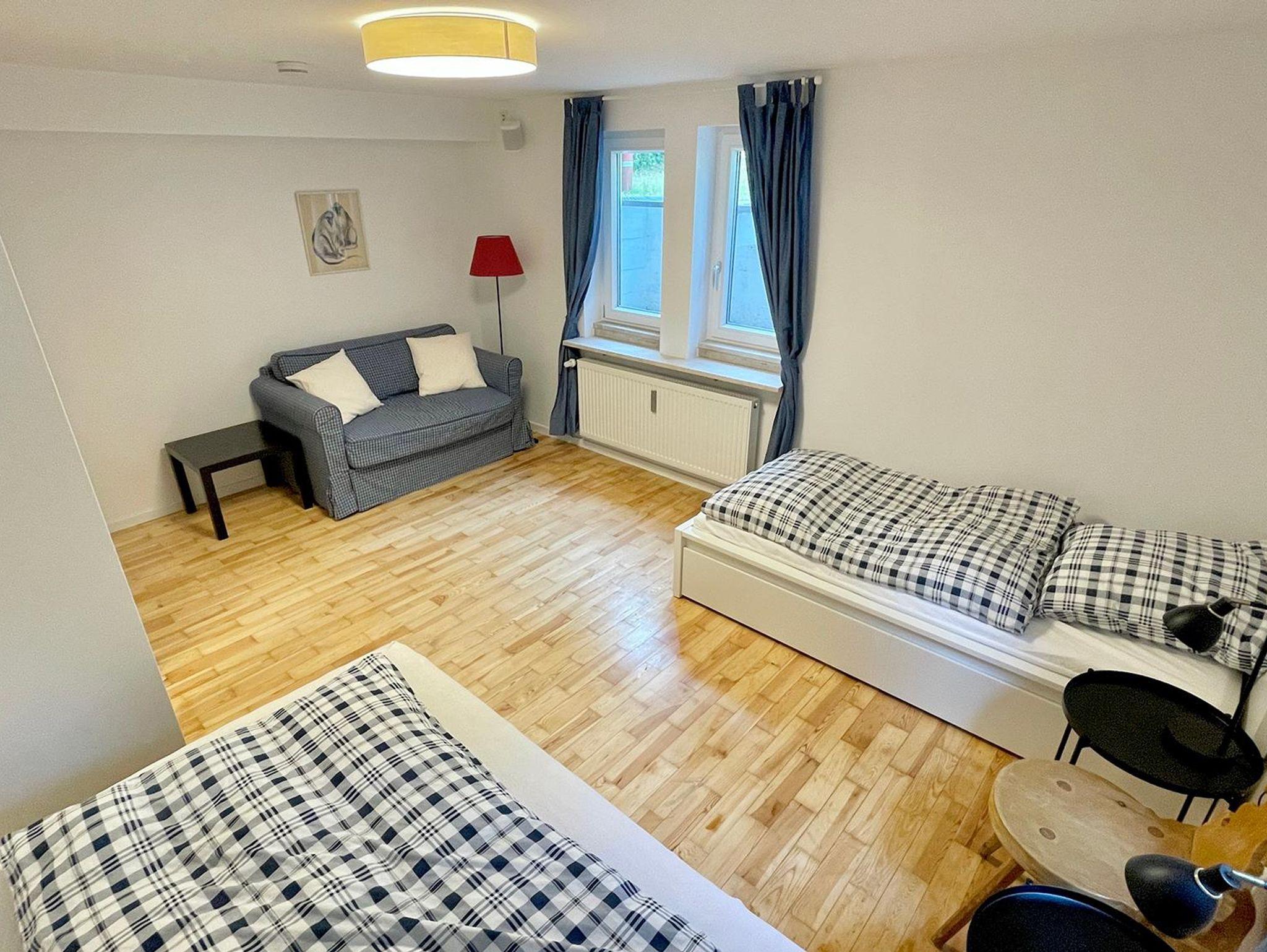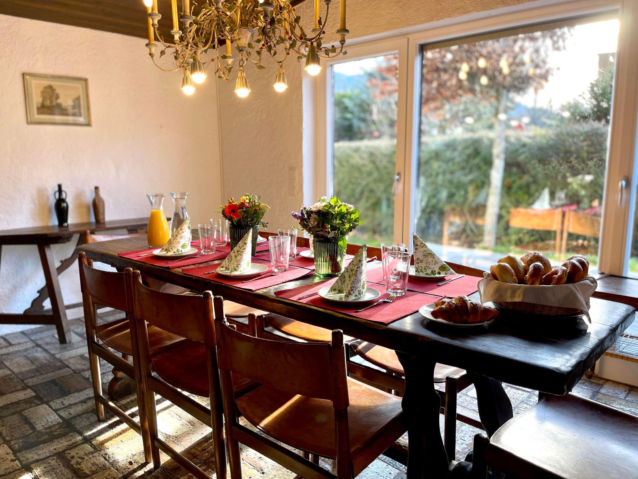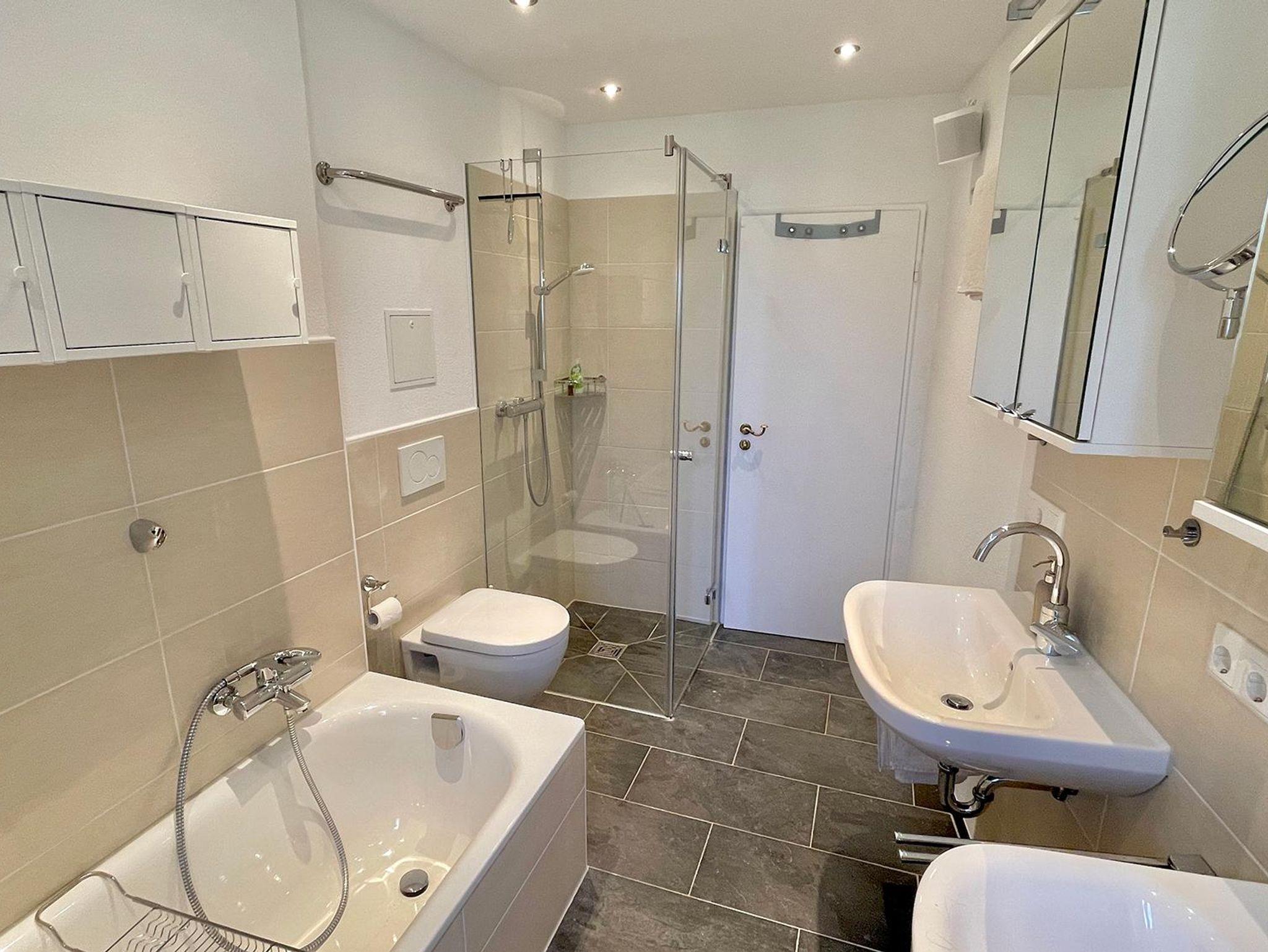 Die Wohnung erstreckt sich über zwei Ebenen und bietet mit seinen 5 Schlafzimmer, 2 Bäder, 2 Gäste-WCs, Sauna, Wohnzimmer, Küche mit Balkon und Terrasse sowie Garten ausreichend Platz für zwei Familien. Die Schlafzimmer im Halbsouterrain sind während den Sommermonaten der ideale Ort um der Hitze zu entkommen und bieten ein perfektes Raumklima. Ländlich-modern eingerichtet verfügt die Ferienwohnung über eine gut ausgestattet Küche, WLAN, Internetzugang, SONOS-Speaker in fast allen Zimmern & Bädern und ein sehr großes Wohnzimmer (53qm) mit einem offenen Kamin sowie einen großen 75 Zoll Smart-TV. Ideal für gemütliche Abende vor dem Feuer im Winter oder dem Kinoabend mit der ganzen Familie. Die 4 großen Schlafzimmer laden ein zum Verweilen und bieten Nachts einen erholsamen Schlaf.