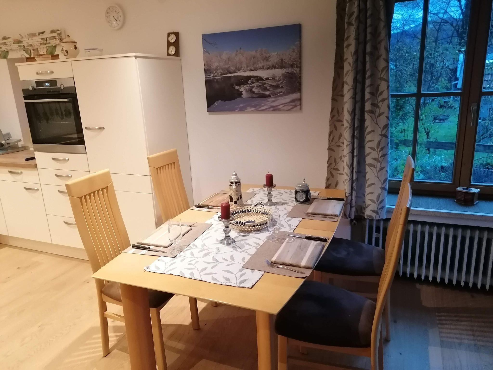 Die Ferienwohnung liegt im südlichen Ortsteil Anger. Durch das Grundstück fließt ein kleiner Bach. Über der Brücke gibt es einen Holzbrotbackofen. Grillplatz ist vorhanden. Zur Isar und Radwanderweg sind es nur wenige Meter.