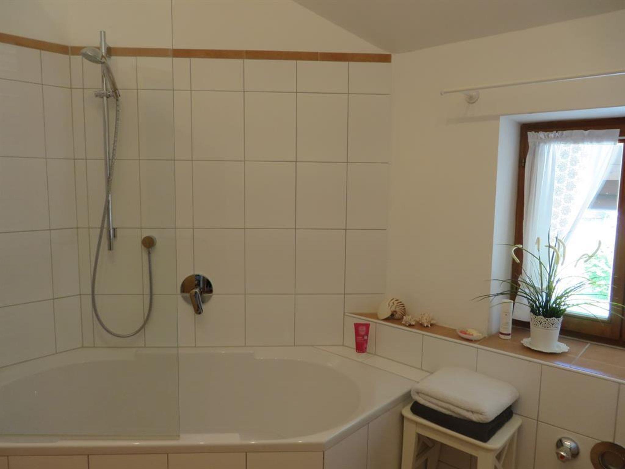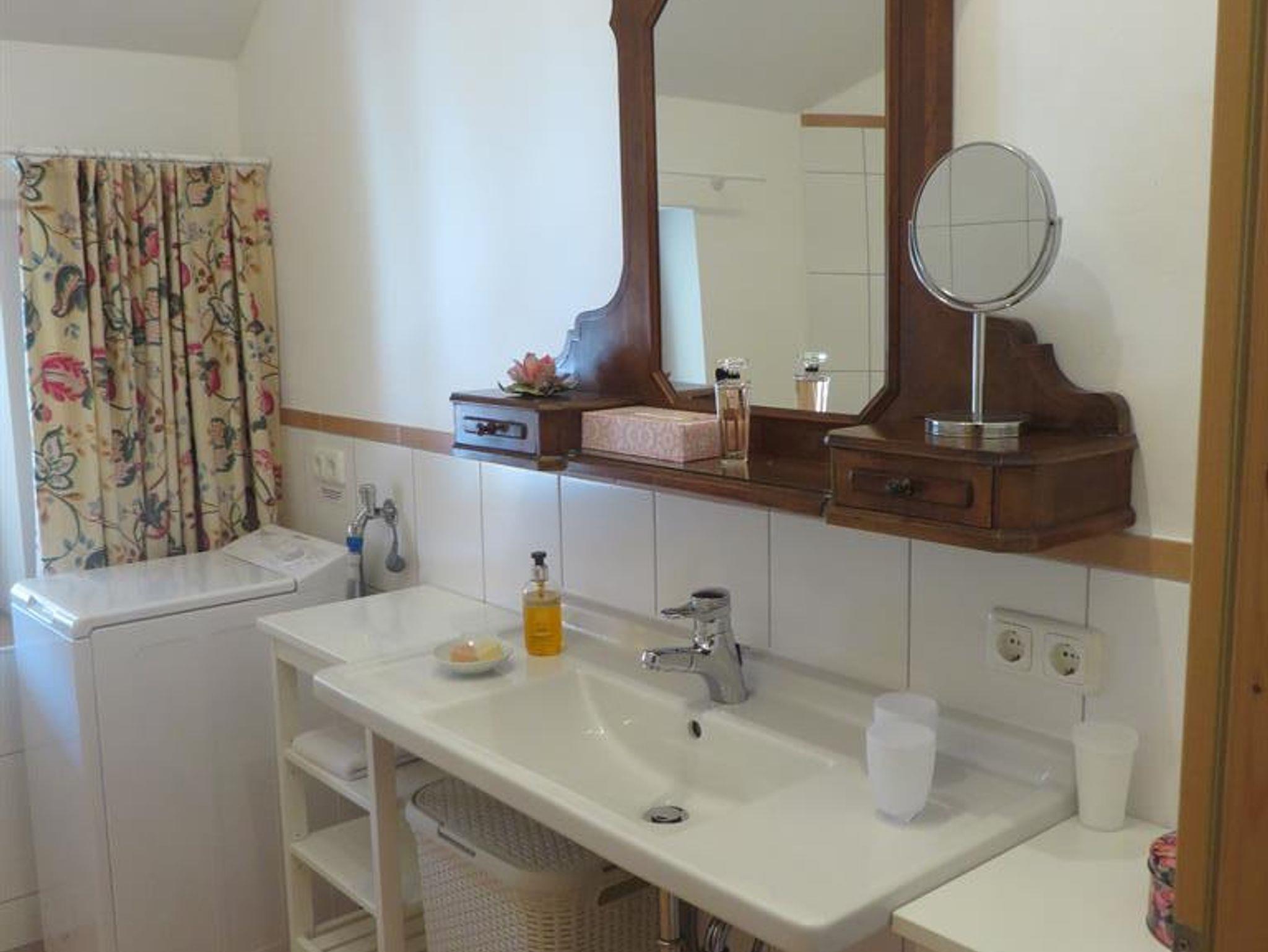 großes Badezimmer mit Badewanne, Waschmaschine (Benützung gegen Entgelt), Fön, Handtuchwärmer, Kosmetikspiegel.