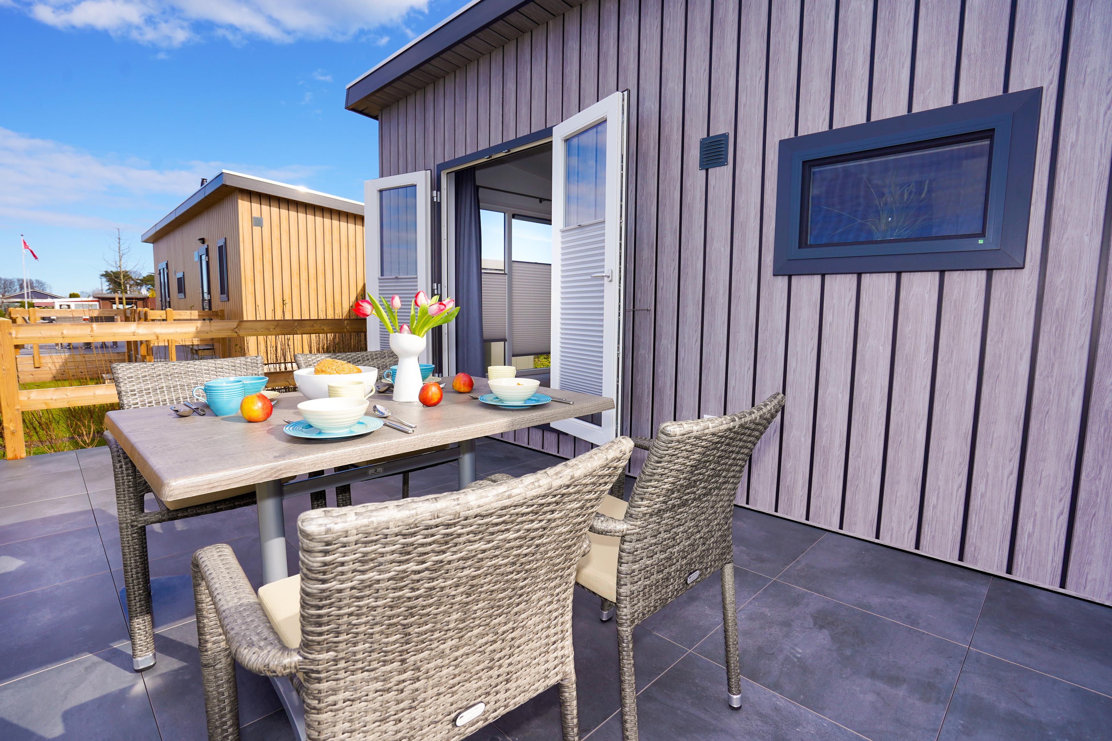 Genießen Sie die frische Luft auf Ihrer eigenen Terrasse, ausgestattet mit bequemen, hochwertigen Hotelgartenmöbeln. Hier haben Sie die Möglichkeit, ein köstliches Frühstück im Freien zu genießen, abends beim Grillen entspannende Stunden zu verbringen oder einfach die Sonne zu genießen.
