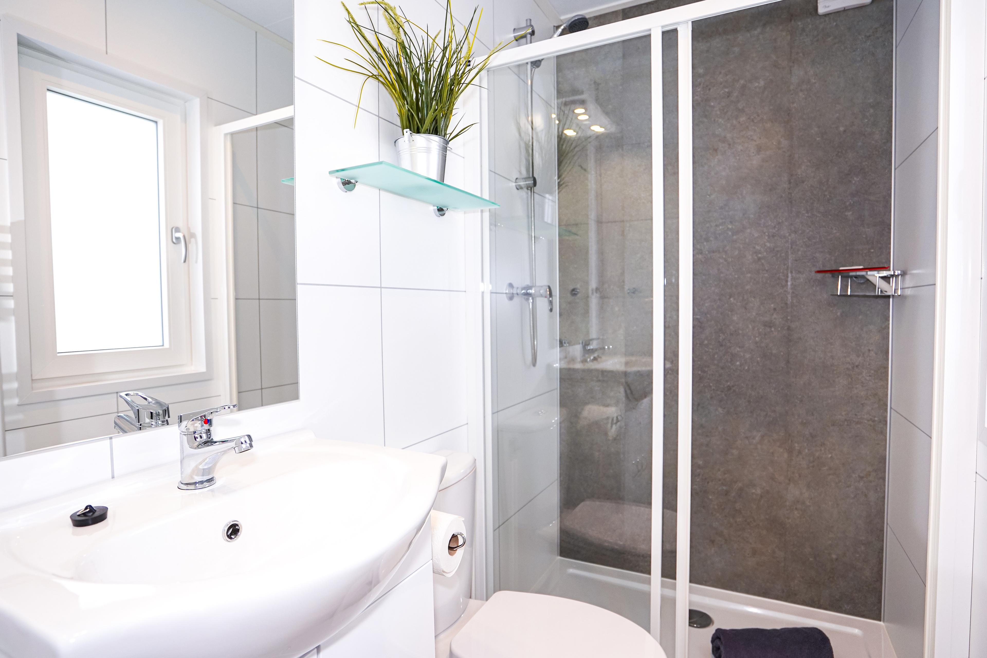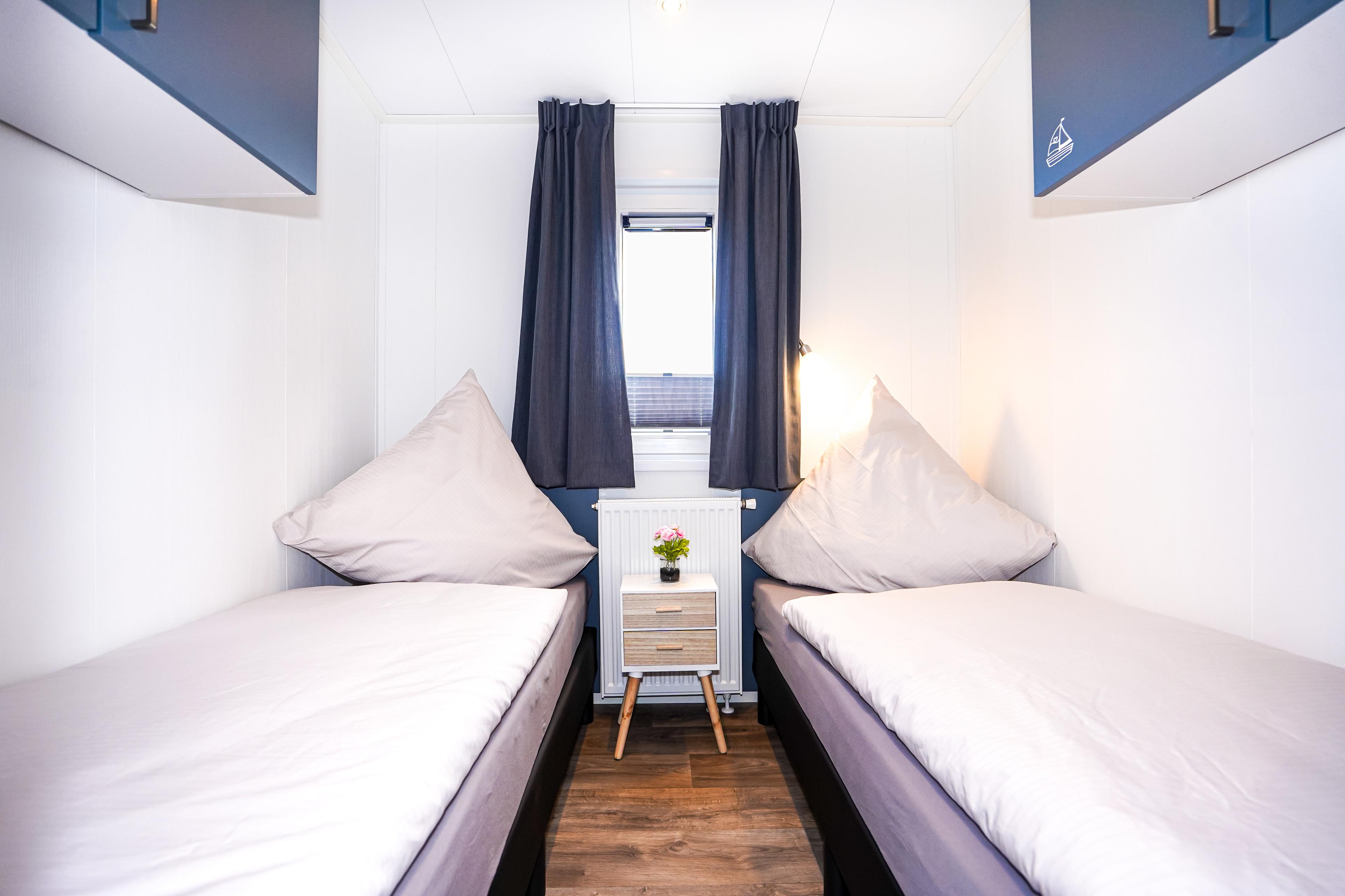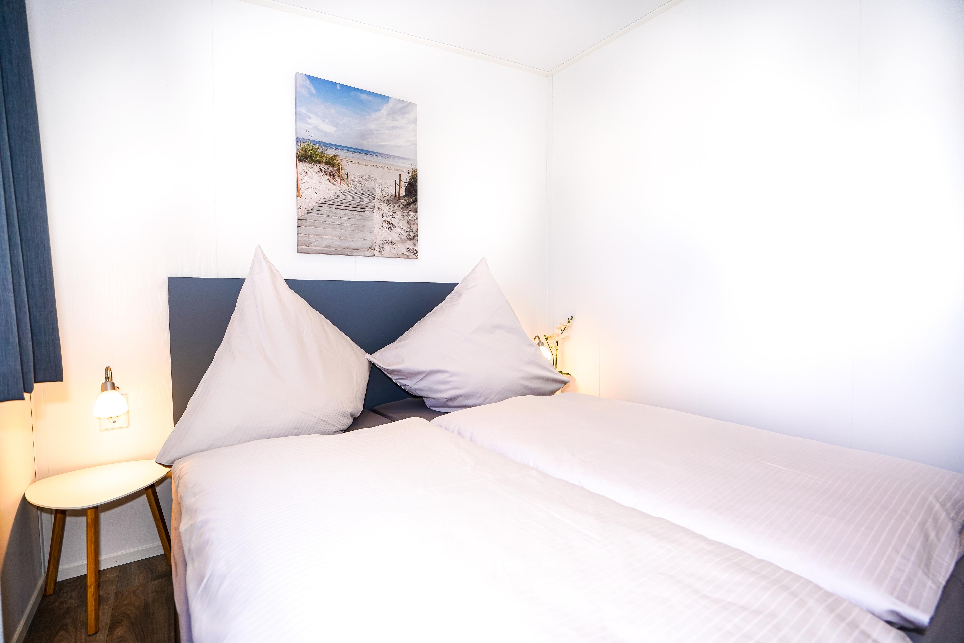 Diese gemütlichen Unterkünfte bieten Platz für bis zu 4 Personen und sind perfekt für einen entspannten Urlaub. Jedes Mobilheim verfügt über eine voll ausgestattete Küche mit Gasherd und Mikrowelle, Kühl- und Gefrierkombination, Geschirrspüler, Kaffeemaschine und Wasserkocher. Ein modernes Badezimmer mit Dusche, WC und Waschtisch sowie zwei einladende Schlafzimmer (ein Doppelbett 2x80x200cm und zwei Einzelbetten 80x200cm) sorgen für Ihren Komfort.
