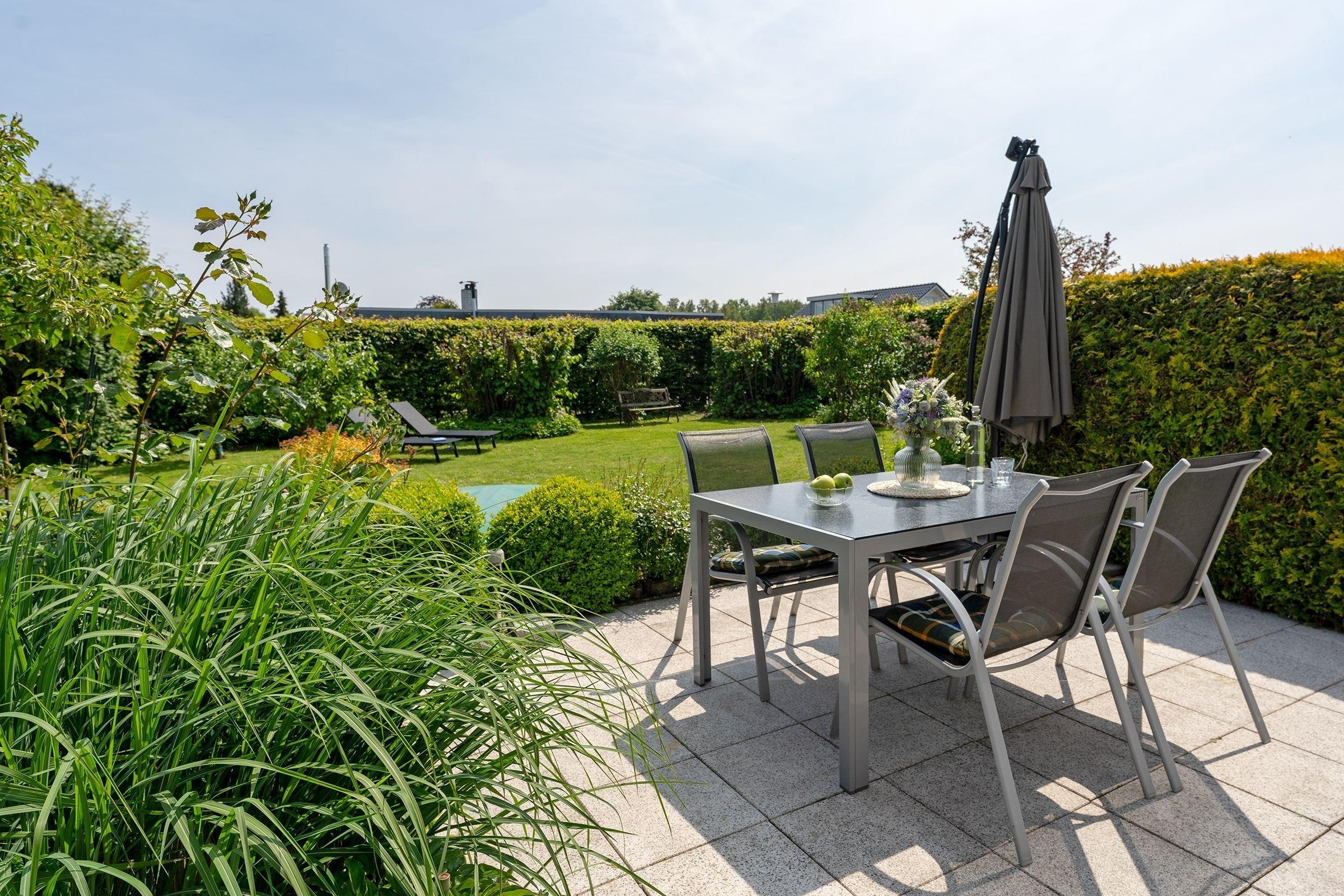 Ein PKW-Außenstellplatz ist direkt auf dem Grundstück für Sie reserviert und auch das Abstellen Ihrer Fahrräder ist außen am Haus möglich. Das Grundstück ist komplett eingezäunt und mit einem Gartentor versehen. Für die kleinen Gäste stehen ein Kinderhochstuhl und ein Kinderreisebettchen bereit.