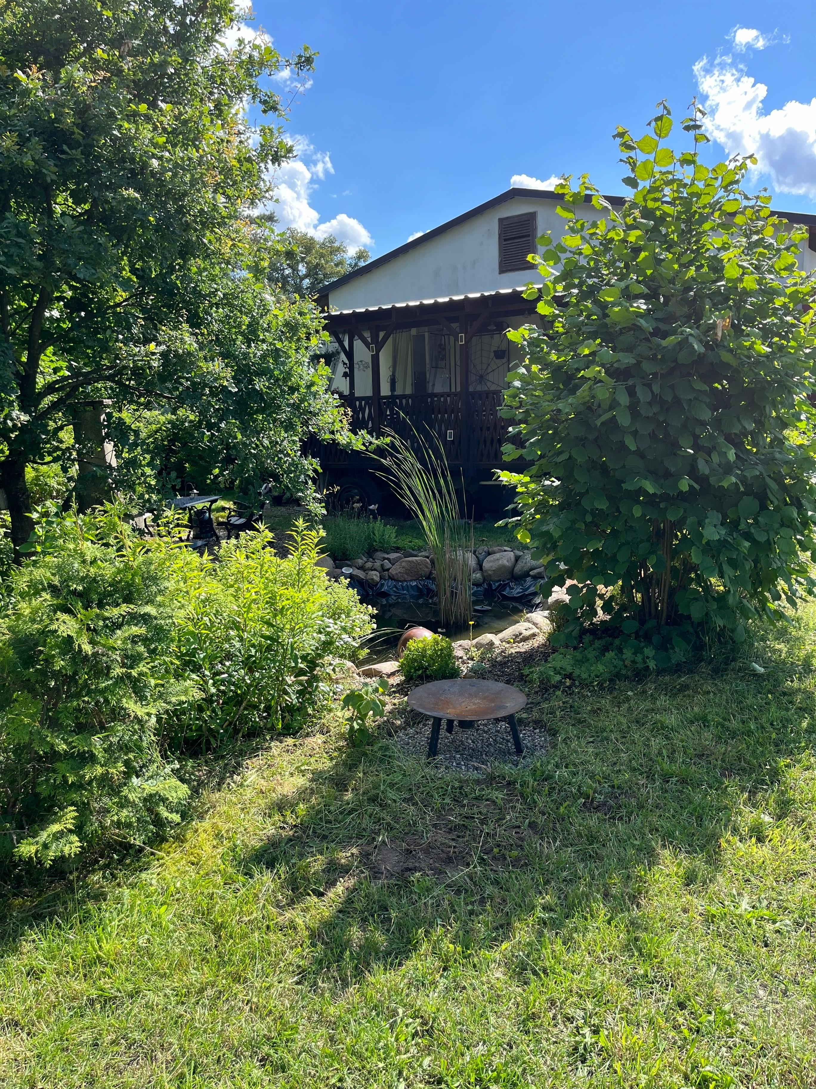 Es ist im Aussenbereich eine Badewanne und Dusche vorhanden so das man unter freien Himmel baden oder Duschen kann .Der Bauwagen steht separat so das sie am kleinen Teich mit Grillplatz schön ihre Privatsphäre genießen können .In der Nähe liegt das Rambower Moor mit See, der ein schönen Wander oder Radweg Besitz der ca 13 km beträgt . Man kann vom Objekt direkt starten.