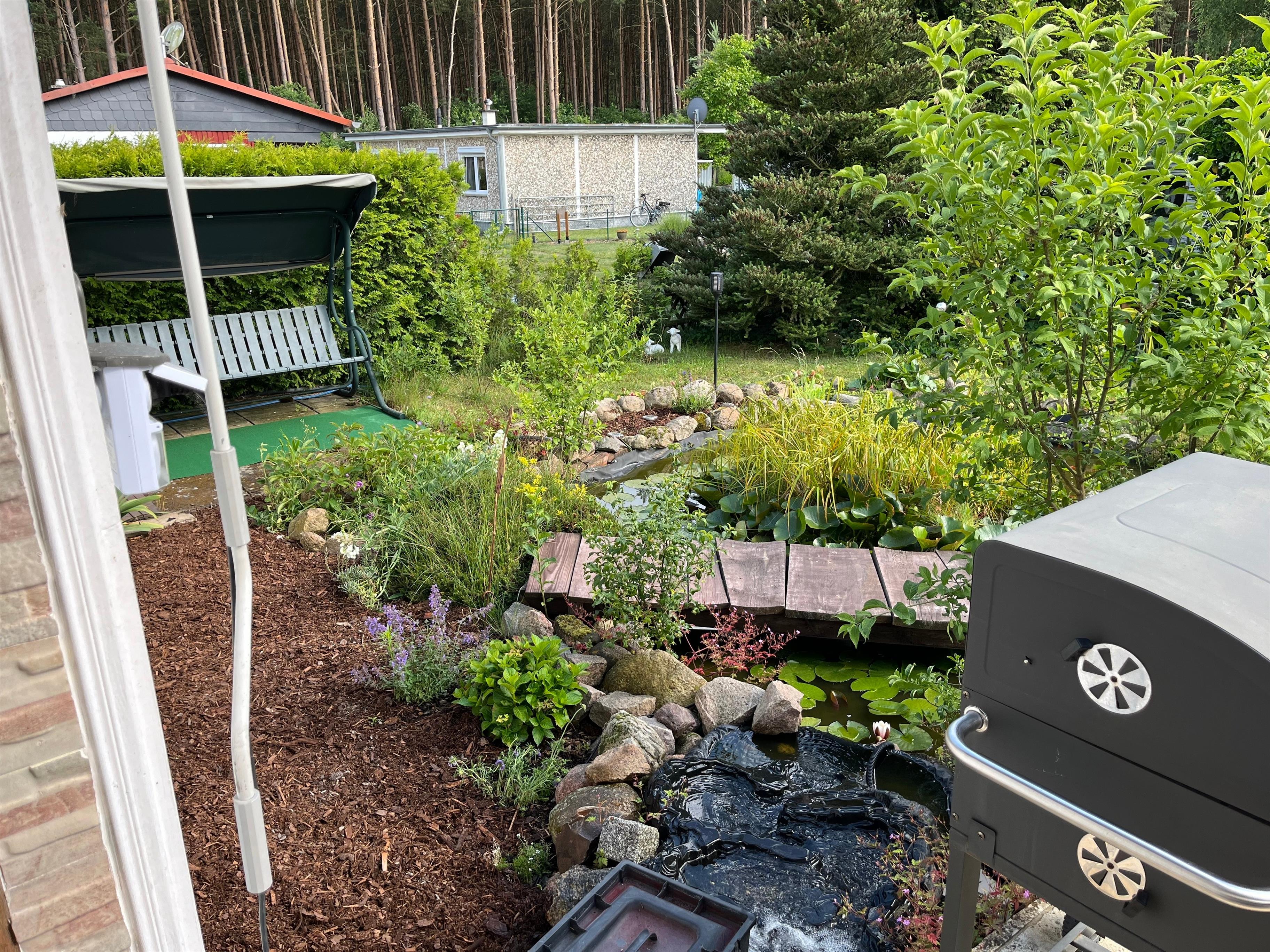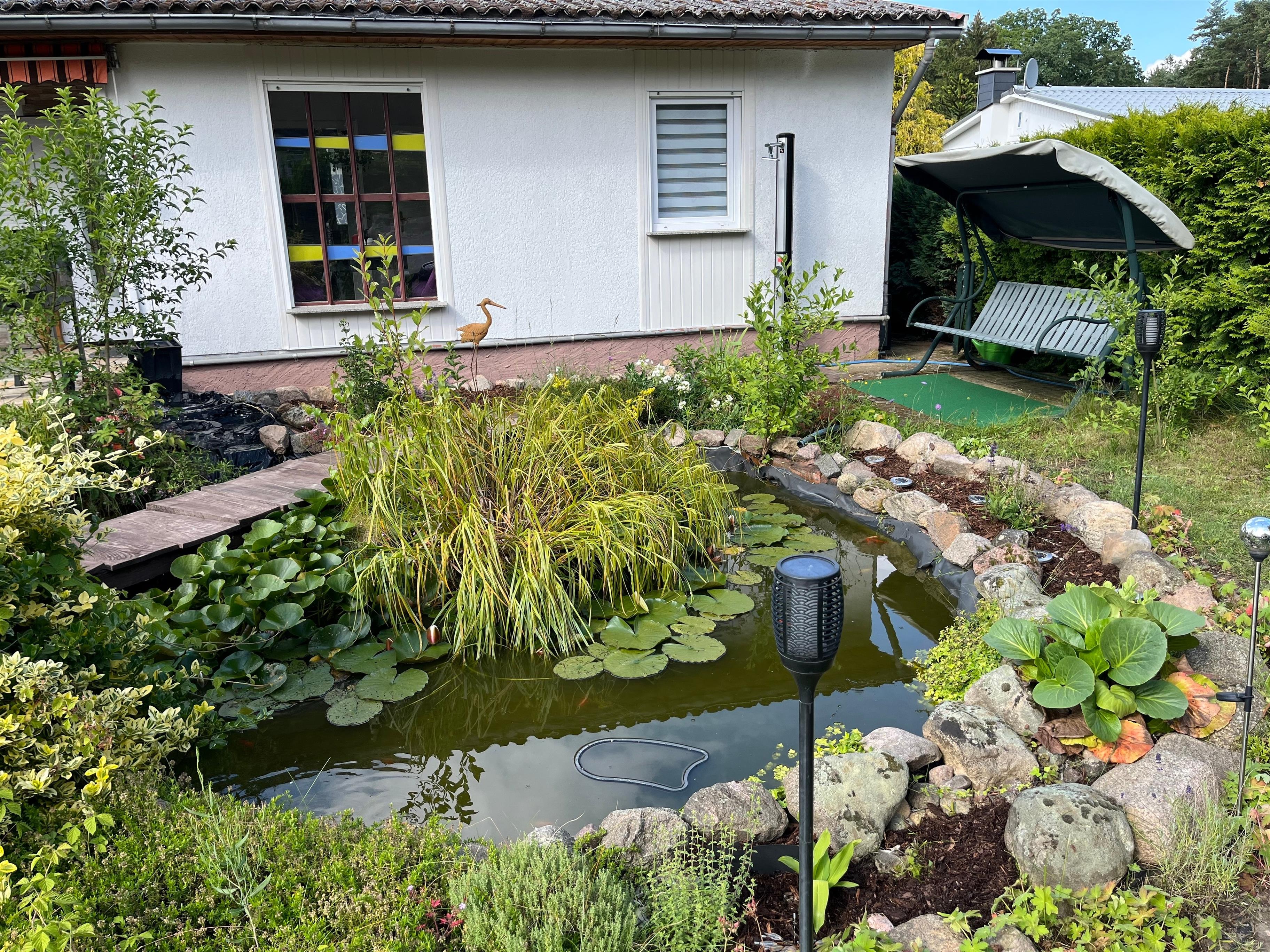 Der Bungalow am Rudower See verfügt über eine Terrasse ,ein Teich mit 2 Hauseigenen Fröschen Namen,s ,,Günter und Heinrich,, die jeden Tag ein Froschkonzert von sich geben(Saisonbedingt bis August). Liegewiese, Solardusche