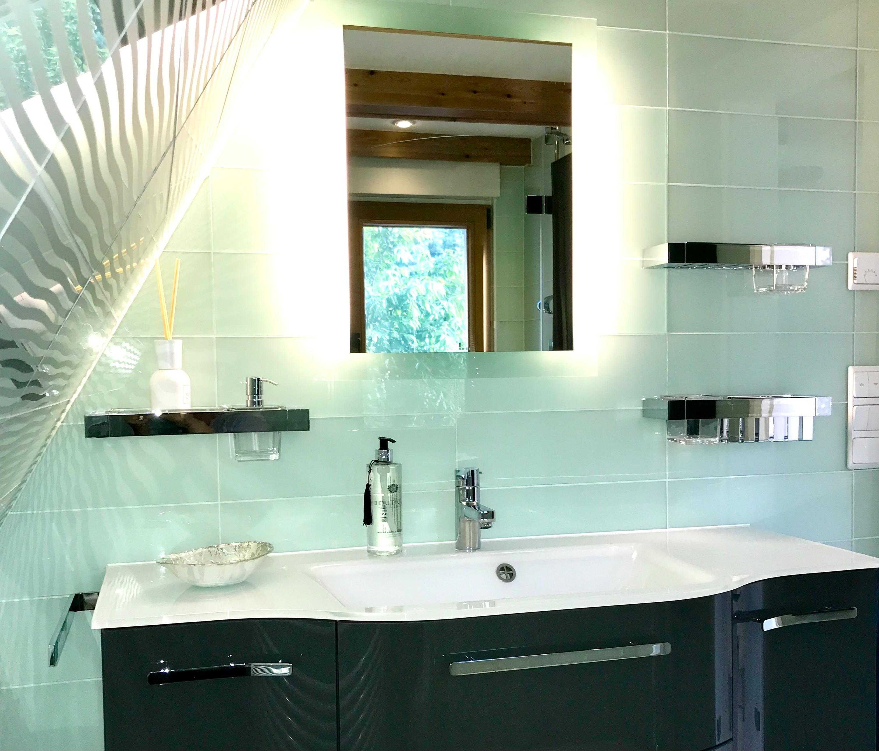 Im Obergeschoss erwartet dich ein stilvolles Schlafzimmer mit traumhaftem Seeblick. Dazu bietet das moderne Bad mit begehbarer Regendusche höchsten Komfort.