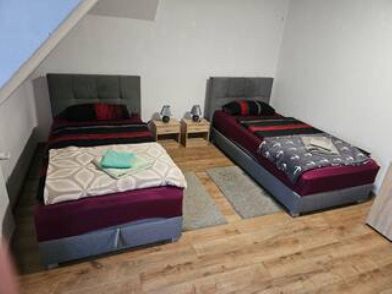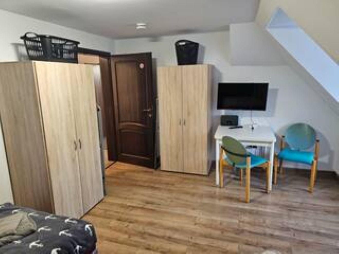 Jedes Zimmer verfügt über 1 oder 2 Einzelbetten 90x200 mit H4 Taschenfederkernmatratze, Kleiderschrank, Nachttischrank mit Nachttischlampe, Schreibtisch + Stuhl, Wäscheständer , Mülleimer. Insgesamt gibt es 2 Wohn-Schlafzimmer.