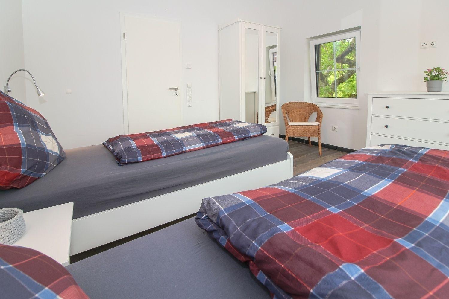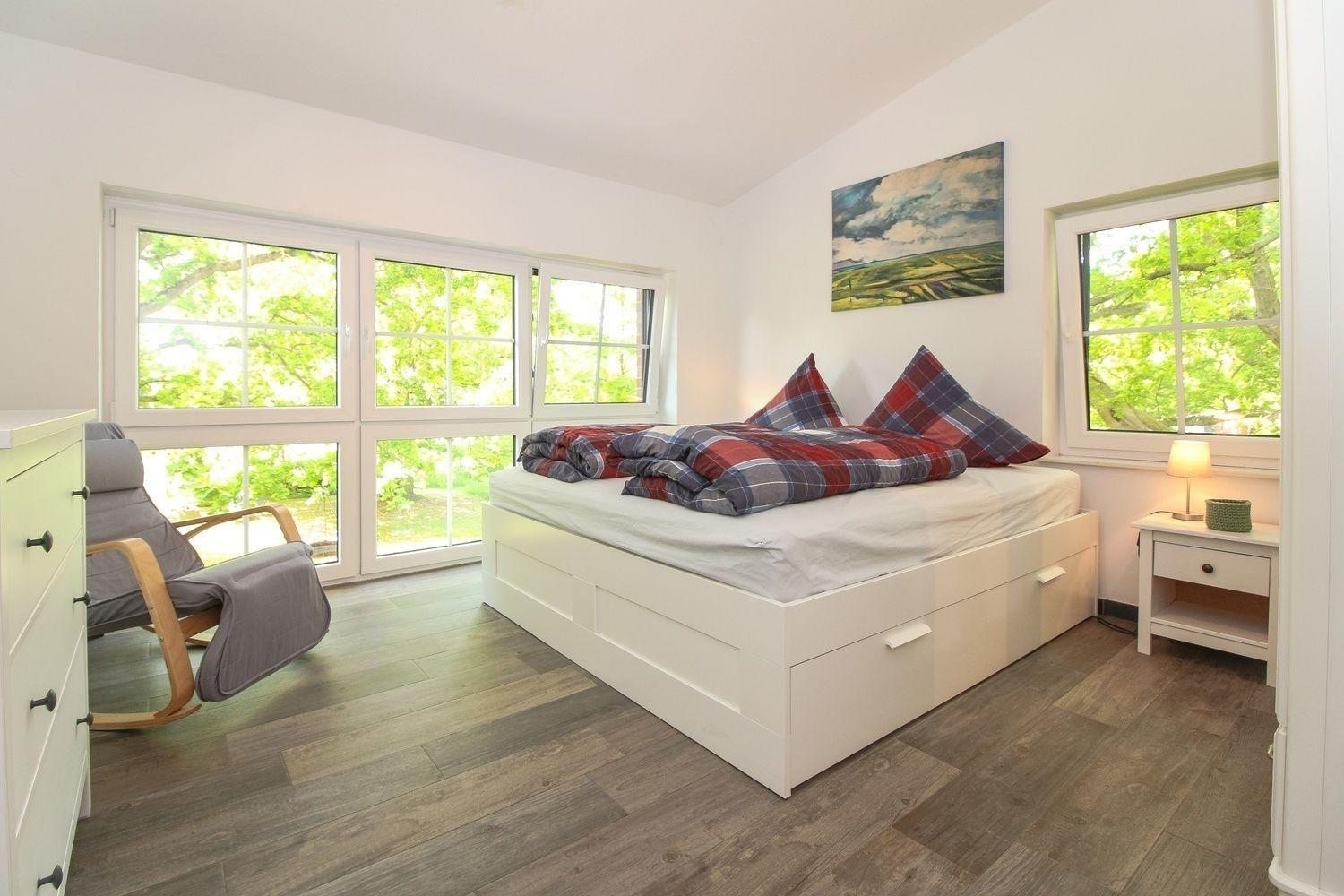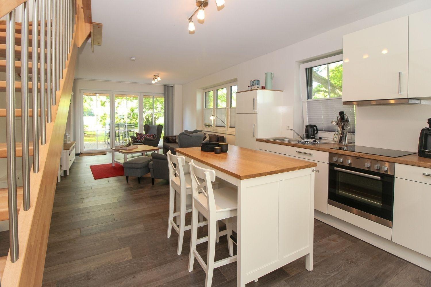 Die Ferienwohnung Zum Stall befindet sich in einem Gebäudekomplex mit 3 Wohnungen und wurde im Februar 2020 fertig gestellt. Das sehr hochwertig eingerichtete Ferienobjekt läßt keine Wünsche offen. Große Fensterfronten am Eingang und an der Terrassenseite sorgen für ein helles und freundliches Ambiente. Im Paterre haben Sie eine offene moderne vollausgestattete Küche. Hier lassen sich leckere Speisen zubereiten, die dann am Esstisch nebenan verspeist werden können. Im Wohnbereich befindet sich eine moderne Couchgarnitur, die zu gemütlichen Abenden/Fernsehabenden mit Flachbild TV einlädt. Von hier aus haben Sie einen freien Blick in den Garten mit einer Liegewiese. Die Schlafräume befinden sich im Obergeschoss, ein Schlafzimmer mit Doppelbett (180 x 2 m, großes Laken erforderlich), Kleiderschrank und Flachbild TV und ein Schlafzimmer mit zwei Einzelbetten. Die Fenster lassen sich per elektrischer Jalousien verdunkeln. Der Blick aus dem Fenster ist traumhaft. Auch auf der möblierten Terrasse genießen Sie die frische Luft und die Sonnenstrahlen. Der weite Blick über die Felder komplettieren Ihren Erholungsurlaub. Ihr Hund ist hier herzlich willkommen und wird mit einem Leckerli begrüßt! Das neu erbaute Gebäude stammt wurde in etwa nach der alten historischen Dorfschmiede Prahst gebaut. Zum Gebäude gehört ein 1000 qm großes Grundstück. Im angrenzenden Fahrradschuppen können mitgebrachte Fahrräder untergebracht werden. WLAN ist verfügbar!