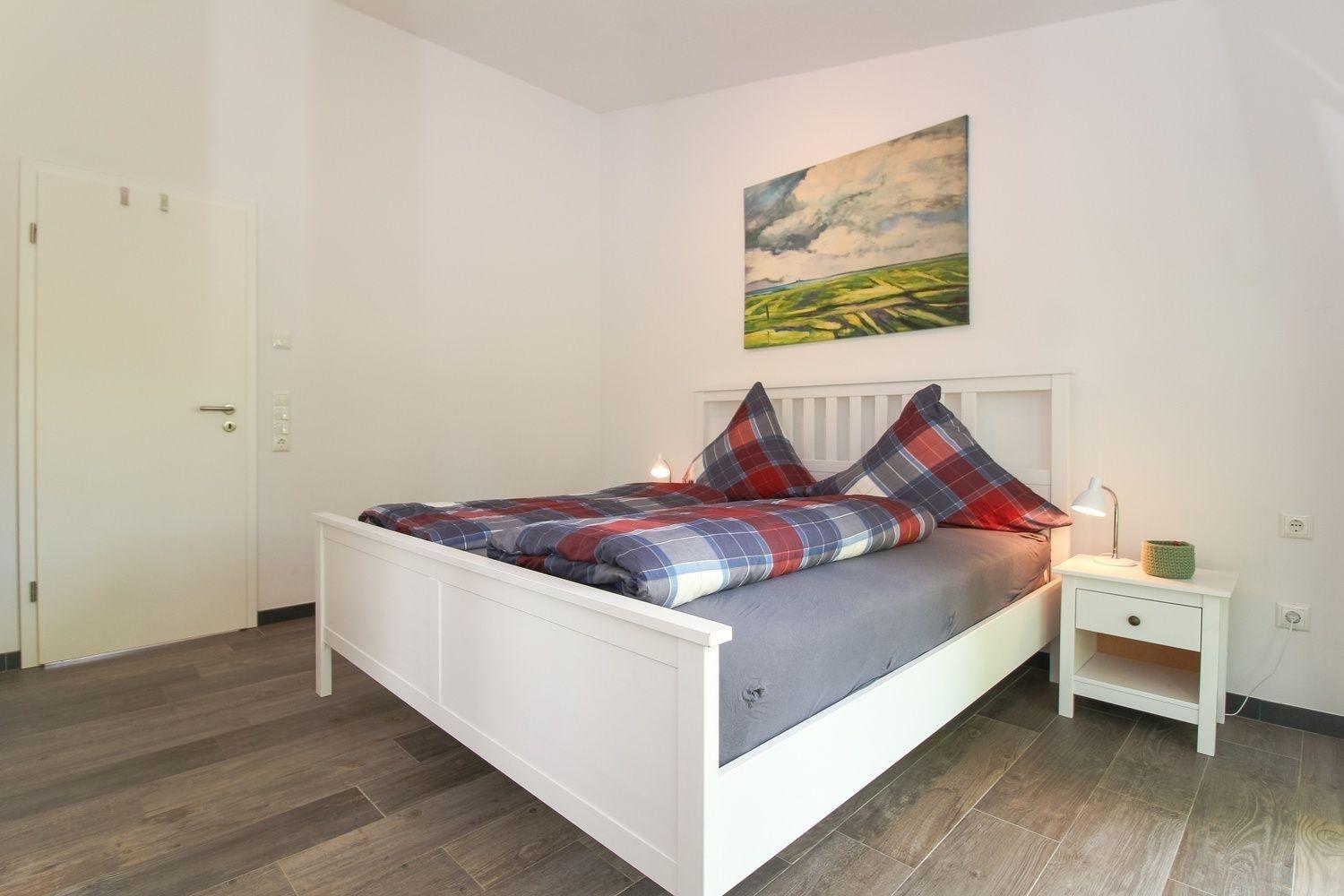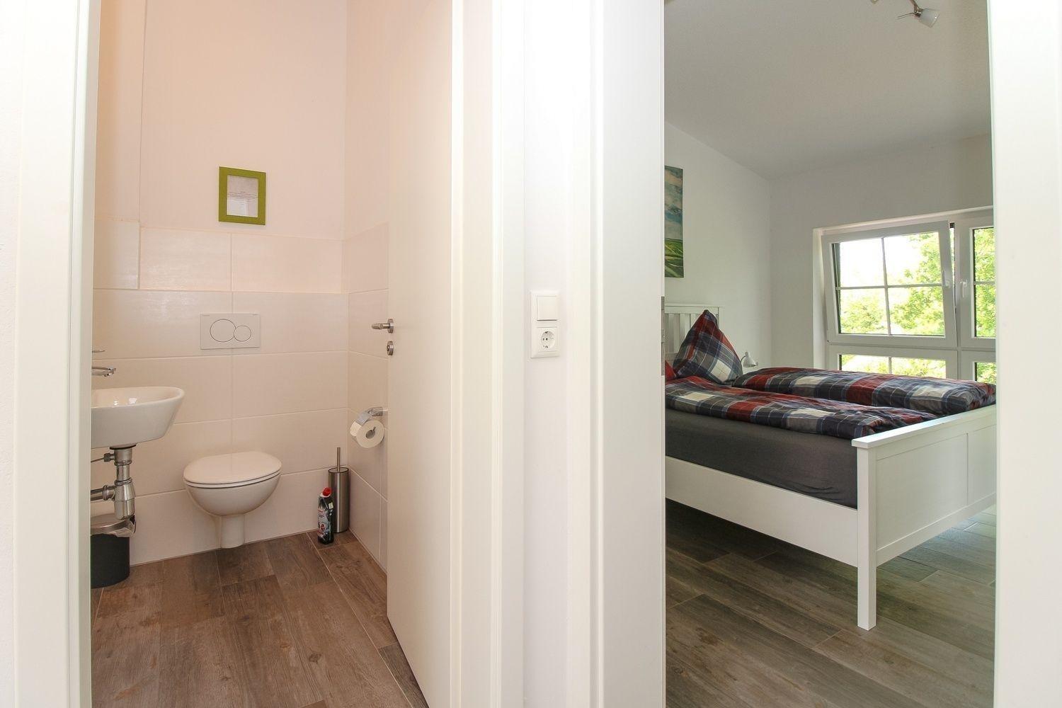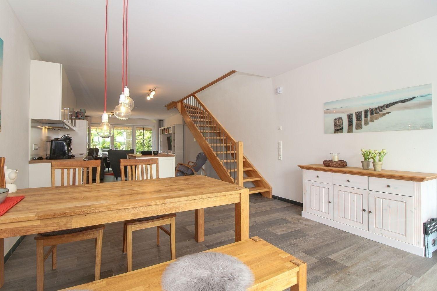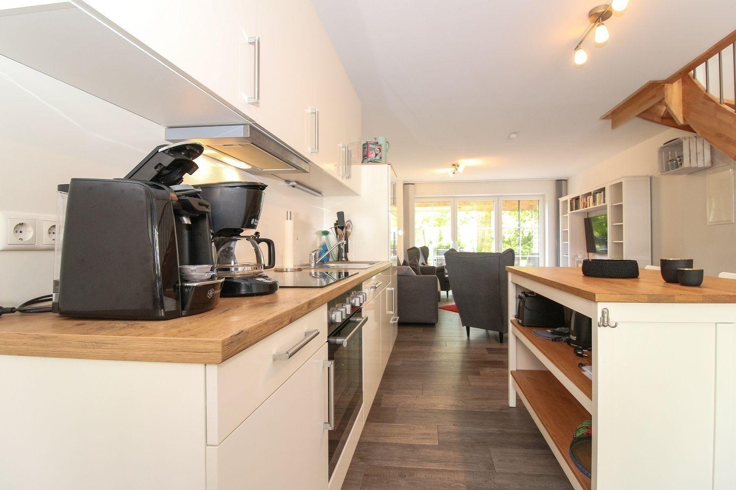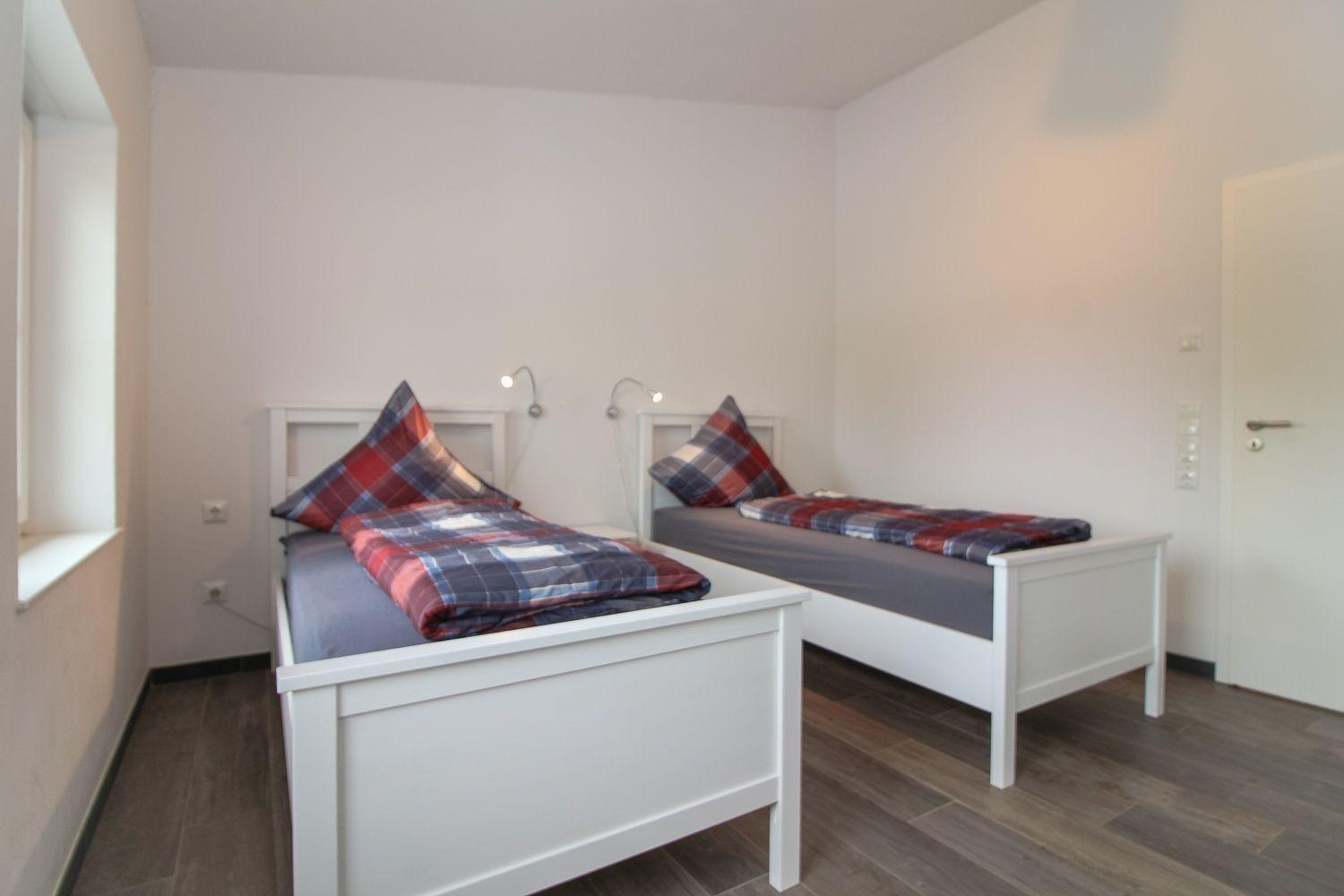 Die Ferienwohnung Zur Werkstatt wurde im Februar 2020 fertig gestellt. Die sehr hochwertig eingerichtete Ferienwohnung lässt keine Wünsche offen. Große Fensterfronten am Eingang und an der Terrassenseite sorgen für ein helles und freundliches Ambiente. Im Parterre haben Sie eine offene Küche mit großem Essbereich. Der helle Wohnbereich mit einer modernen Couchgarnitur lädt zu gemütlichen kuscheligen Abenden/Fernsehabende mit Flachbild TV ein. Von hier aus haben Sie einen freien Blick auf den Garten mit einer Liegewiese. Die Schlafräume sind im Obergeschoss, ein Schlafzimmer mit Doppelbett (180 x 2 m, großes Laken erforderlich), Kleiderschrank und Flachbild TV und ein Schlafraum mit zwei Einzelbetten. Die Fenster lassen sich per elektrischer Jalousien verdunkeln. Der Name der Ferienwohnung hat einen historischen Hintergrund: das neu erbaute Gebäude mit insgesamt drei Ferienwohnungen stammt aus der alten Dorfschmiede Prahst. Zum Gebäude gehört außerdem ein 1.000 qm großes Grundstück mit altem Baumbestand. Im angrenzender Fahrradschuppen können mitgebrachte Fahrräder untergebracht werden. WLAN ist verfügbar!