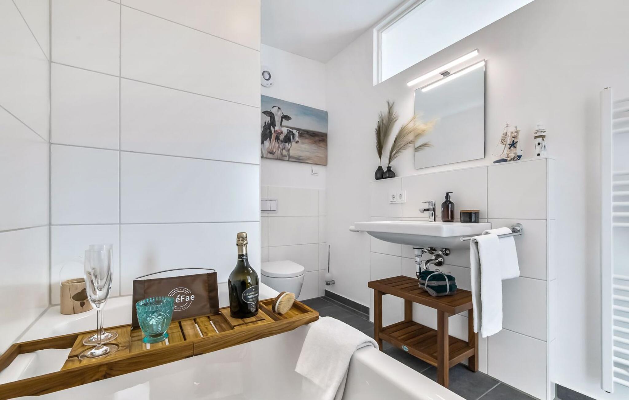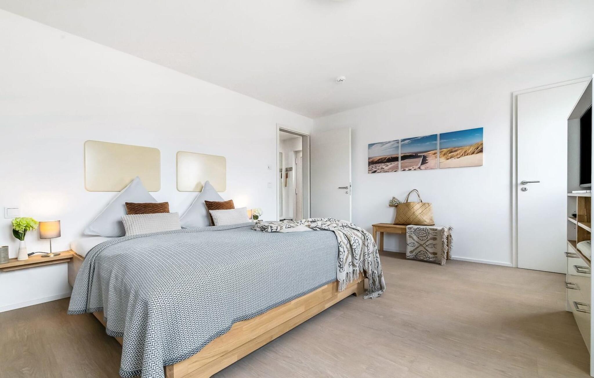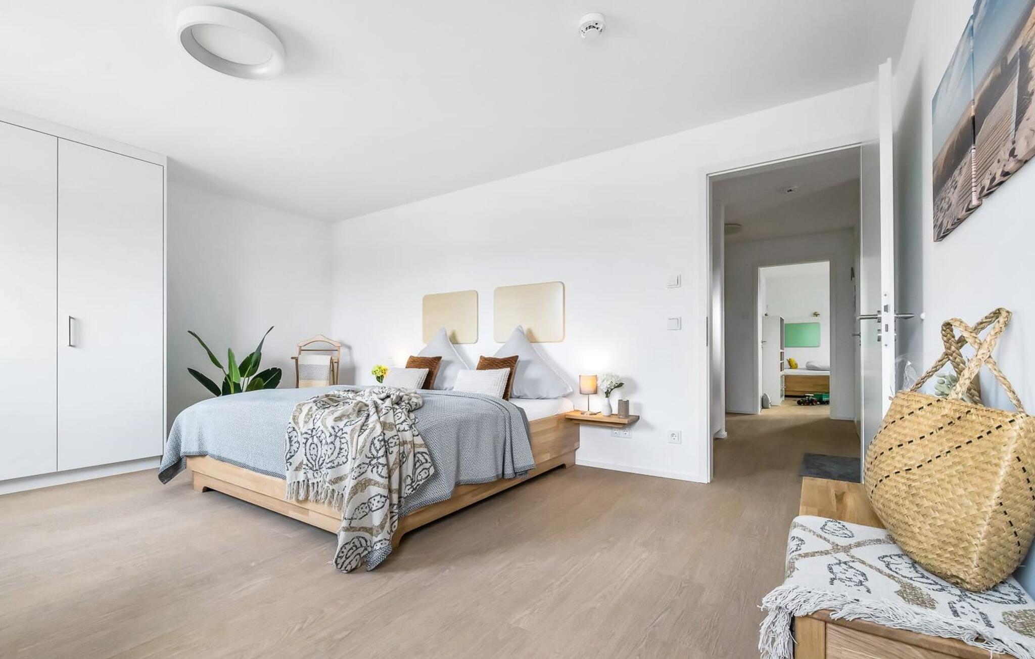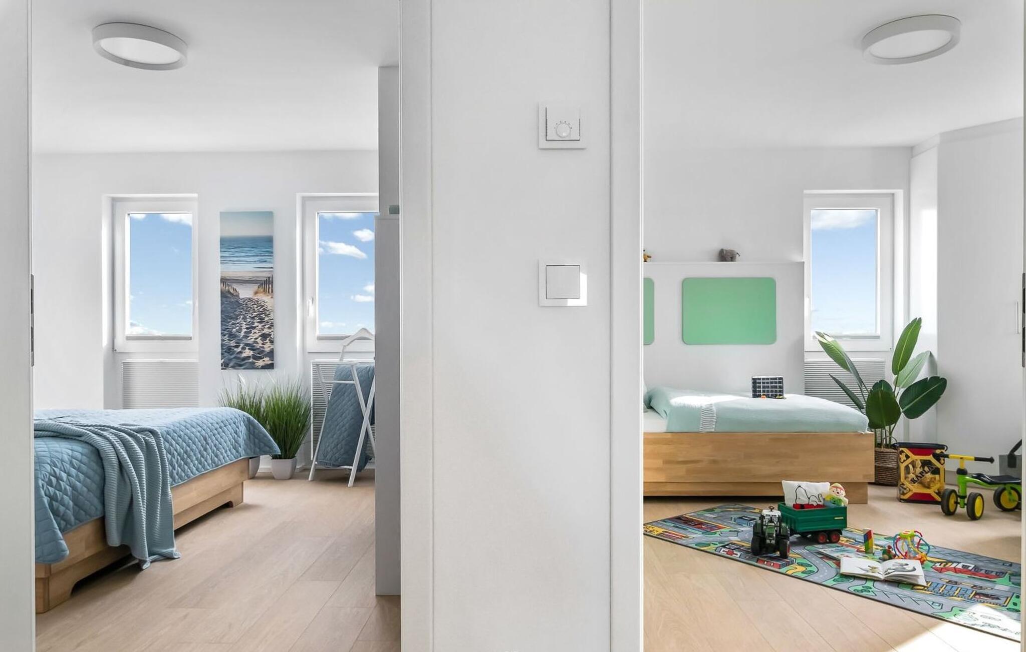 LICHTBLICK er en højkvalitets og stilfuldt indrettet maisonette ferielejlighed på 1. og 2. sal med direkte udsigt til de naturbeskyttede strandenge og marker. Et sandt paradis for hele familien. Sandstranden Weidefelder med kiosk, restaurant og strandstole ligger i gåafstand og er et attraktivt rejsemål på alle tider af året. Minigolfbanen med maritimt tema ligger også i umiddelbar nærhed og nydes af både unge og gamle. Når I træder ind i ferielejligheden på første sal, begynder jeres ferie fra allerførste øjeblik! I befinder jer direkte i lejlighedens afslapningsområde med i alt tre soveværelser. Her er noget for unge og gamle. Der er en rummelig dobbeltseng i det første og andet soveværelse. Det tredje soveværelse inviterer jer til at sove godt med to enkeltsenge. I dette rum vil selv de små gæster finde alt, hvad deres hjerter begærer. Fra børnebøger og legetøj til legemåtter. Så I kommer ikke til at kede jer selv i dårligt vejr! Der er også et fjernsyn i hvert soveværelse. Også på denne etage er det første af to badeværelser med bruser på gulvniveau og infrarød sauna. En oase af velvære, der sikrer afslapning i hver sæson. På anden sal finder I endnu et badeværelse med badekar, hvor I komfortabelt kan genoplade jeres batterier til den kommende dag. På denne etage lever LICHTBLICK op til sit navn. Her bliver I budt velkommen af vinduerne fra gulv til loft med den tilstødende terrasse og udsigt til de naturbeskyttede strandenge. Det lyse og indbydende opholdsområde gør en eller to hyggelige familieaftener mulige med hyggelig opholdsstue, fjernsyn og en fantastisk udsigt. Skulle vejret tage en drejning for den nordiske side, vil pejsen med sin knitrende ild give endnu mere komfort. Det åbne køkken er perfekt udstyret. At lave mad sammen er sjovt her! Så nyd de færdige lækkerier i en strandstol eller ved terrassebordet med et børnesæt eller start en hyggelig grillaften... Det er ren ferie. Den store terrasse vender mod sydvest og med udsigt til de naturfredede strandenge, marker og hav er solskinstimer uundgåelige. Foran ferielejligheden finder I jeres egen parkeringsplads. Vores yndlingssted: At nyde solen på terrassen med hele familien (og firbenede venner), en sand stråle af håb i en stresset hverdag. Bemærk venligst: OstseeResort Olpenitz er meget populært, og der bygges fortsat i parken. Ikke desto mindre kan I se frem til en 5-stjernet standard og et førsteklasses ophold. Byggeaktiviteterne kommer ikke til at forstyrre jer på ferien, og derfor gives der ikke yderligere afslag i prisen.